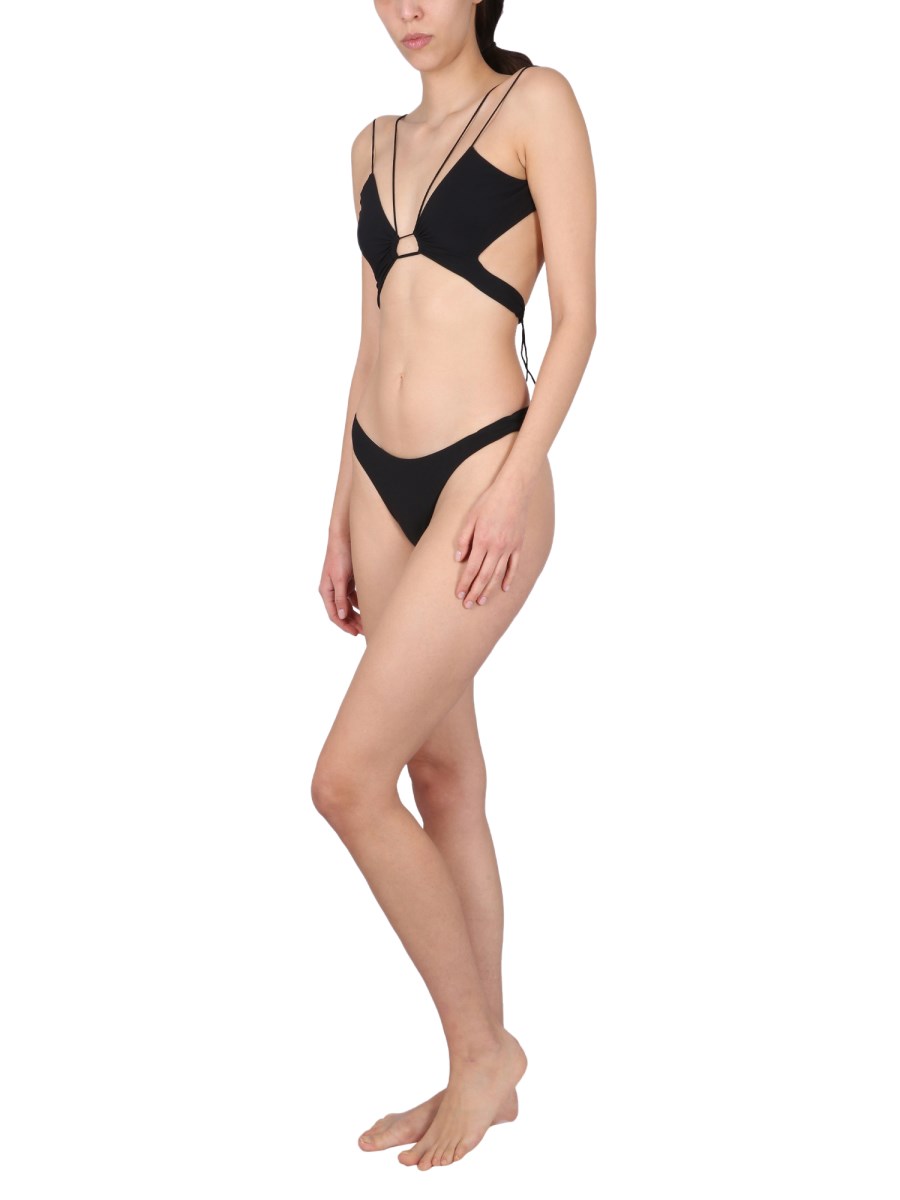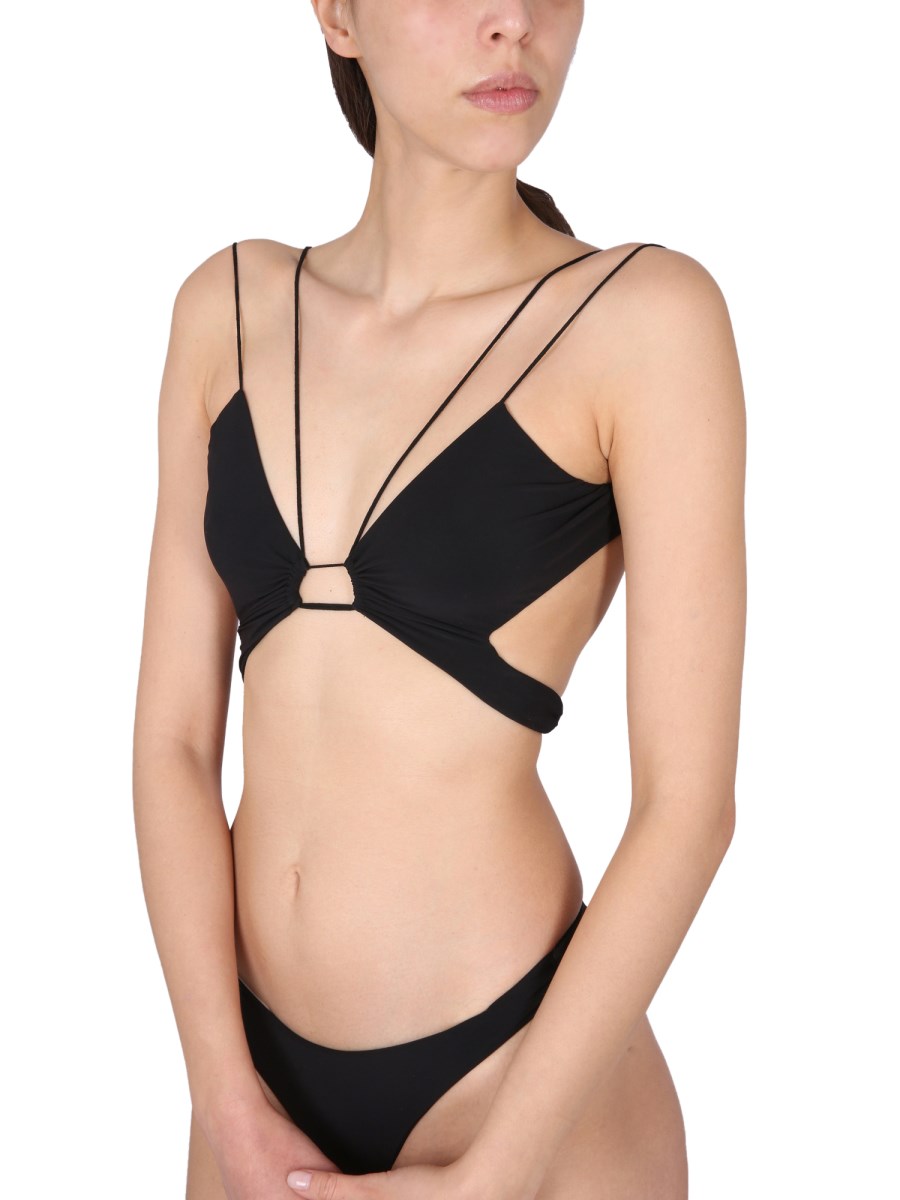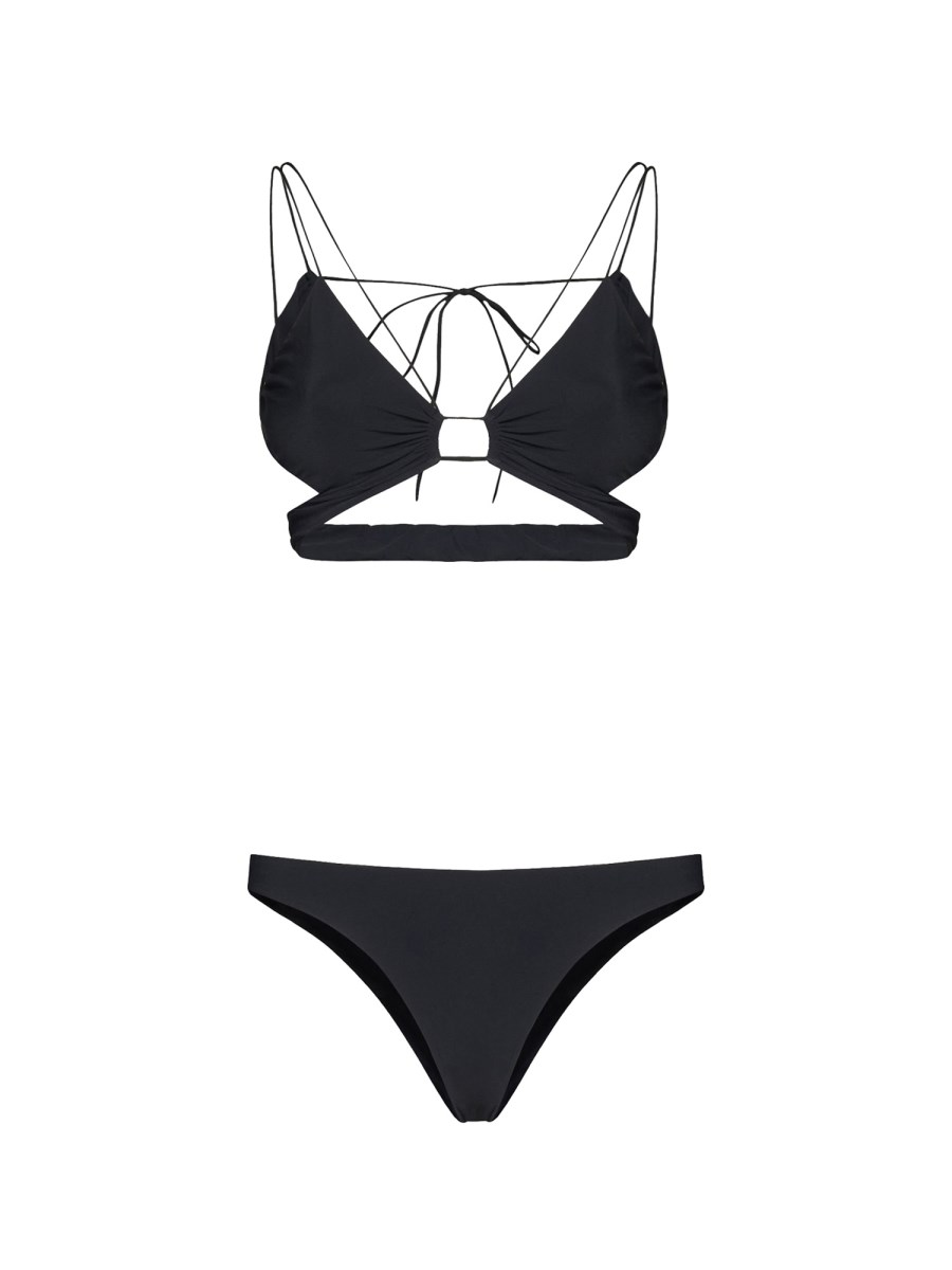JANY. Un nuovo costume da bagno a due pezzi caratterizzato da dettagli di ritaglio laterale sul reggiseno. Lacci regolabili per personalizzare la vestibilità.