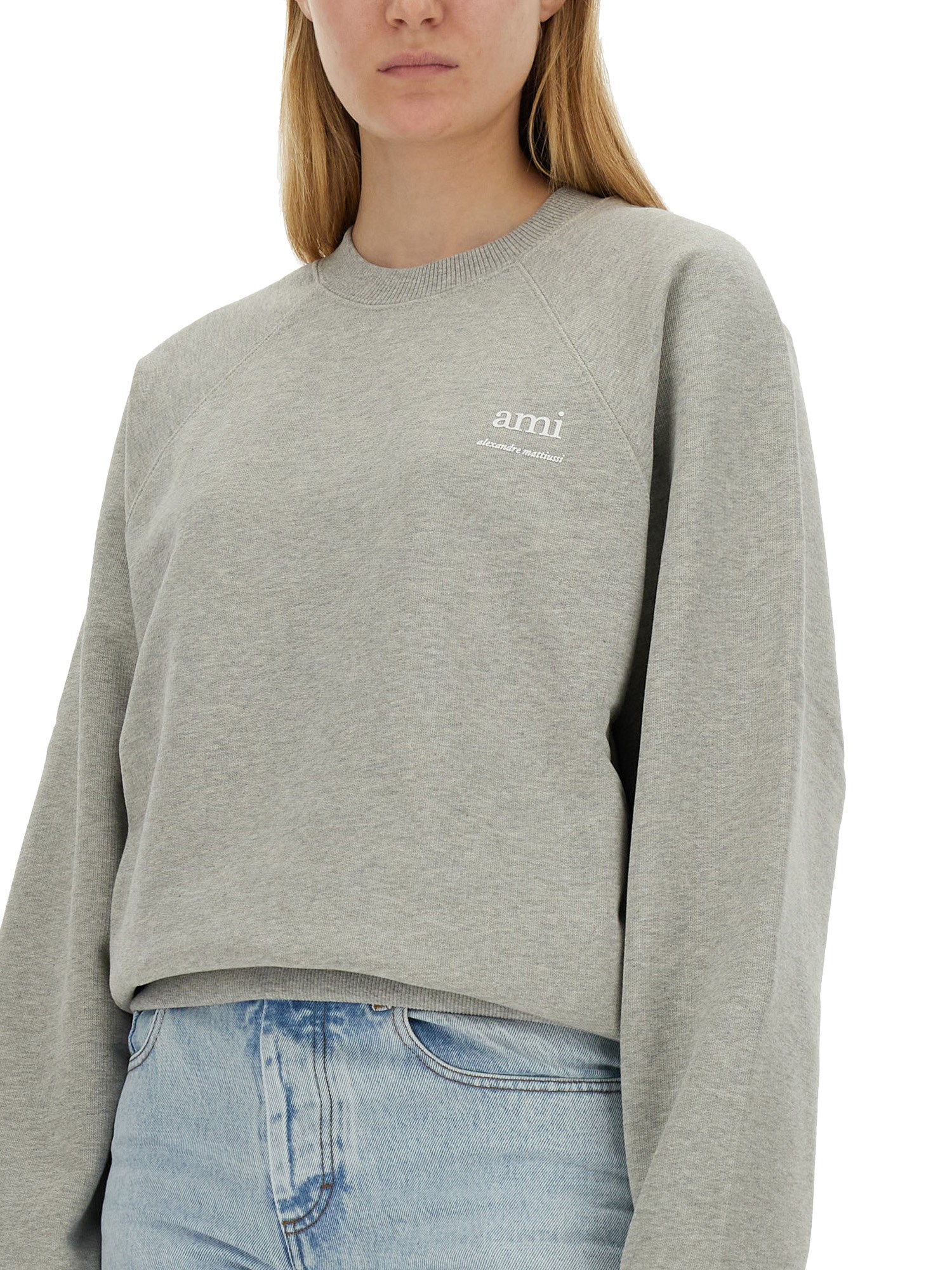 Questa felpa in cotone grigio a girocollo di Ami Paris presenta un logo frontale che aggiunge un tocco di stile a un capo classico del guardaroba. Realizzata in morbido e confortevole materiale di cotone, questa felpa è perfetta per essere indossata ogni giorno. Il versatile colore grigio la rende facilmente abbinabile a qualsiasi outfit, mentre il logo aggiunge un dettaglio sottile ma di tendenza al look complessivo. Ideale per essere sempre al riparo e alla moda durante i mesi più freddi, questa felpa è un'aggiunta irrinunciabile a qualsiasi armadio.