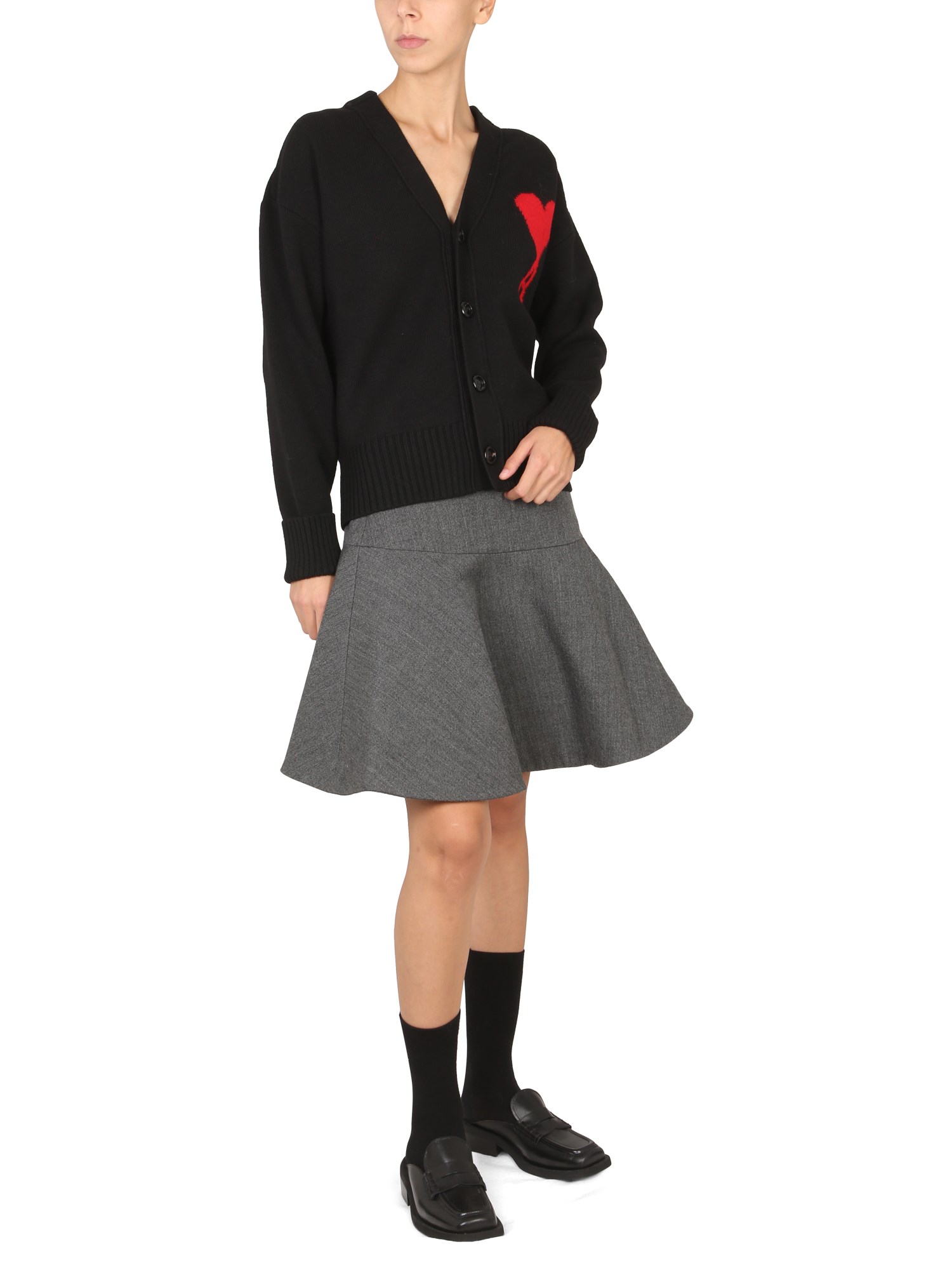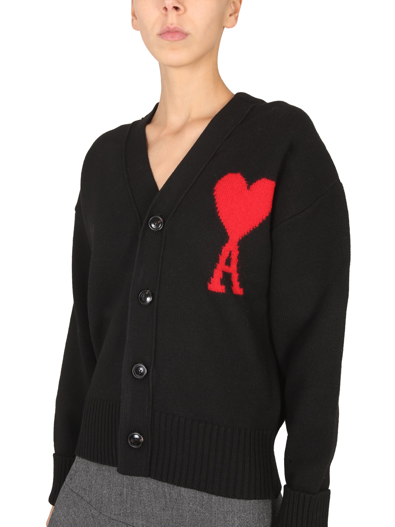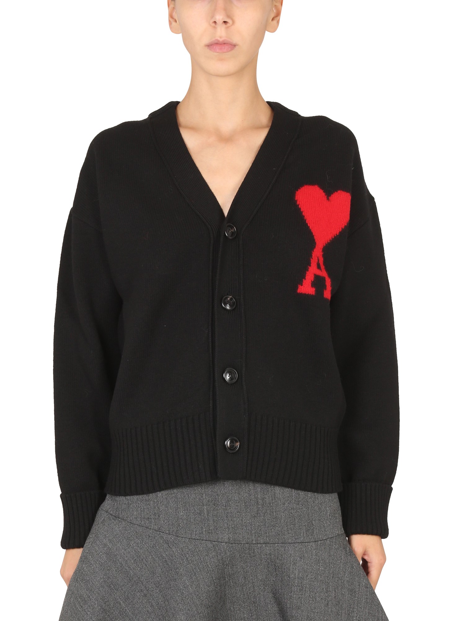 - CHIUSURA FRONTALE CON BOTTONI - SCOLLO A V - RICAMO LOGO AL PETTO - REGULAR FIT - 100% LANA - LA MODELLA É ALTA 180 CM E INDOSSA LA TAGLIA S