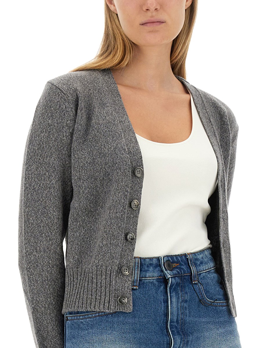 La stagione fredda richiede questo lussuoso cardigan in cashmere e lana di Ami Paris. Lo scollo a V è un dettaglio femminile, mentre i bottoni sul davanti sono un cenno di raffinatezza. Il cardigan può essere indossato sia in inverno che in primavera ed estate.