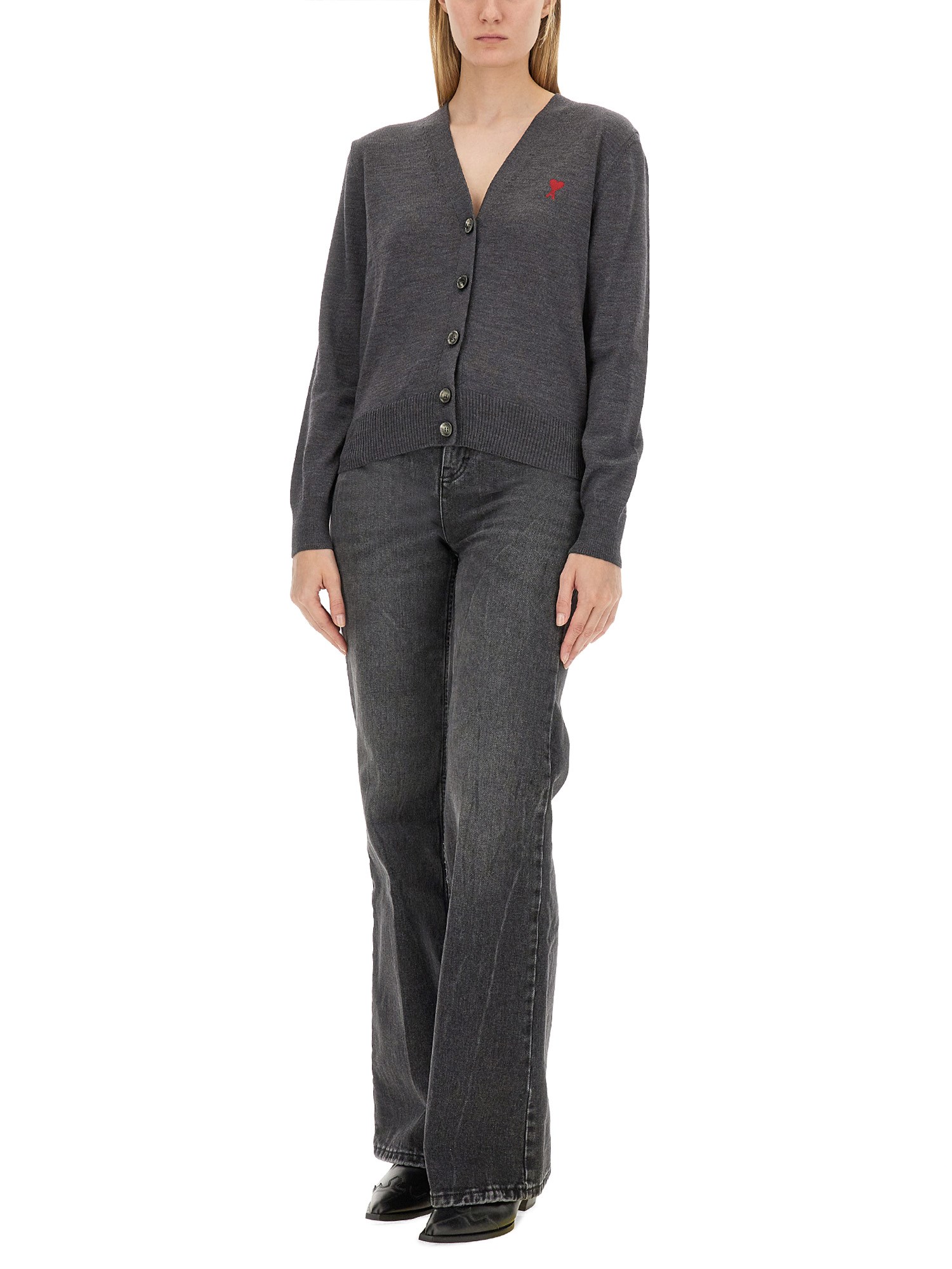 Il cardigan AMI Paris è caratterizzato da un logo distintivo, che incarna un mix di stile contemporaneo e comfort classico. Realizzato con materiali di alta qualità, questo cardigan offre una texture morbida e una vestibilità rilassata, che lo rendono un capo ideale da indossare in diverse occasioni. Il suo design versatile permette di abbinarlo facilmente sia a un abbigliamento casual che formale, mentre il logo aggiunge un tocco di raffinatezza. Elevate il vostro guardaroba con questo capo essenziale che riflette la moderna eleganza di AMI Paris.