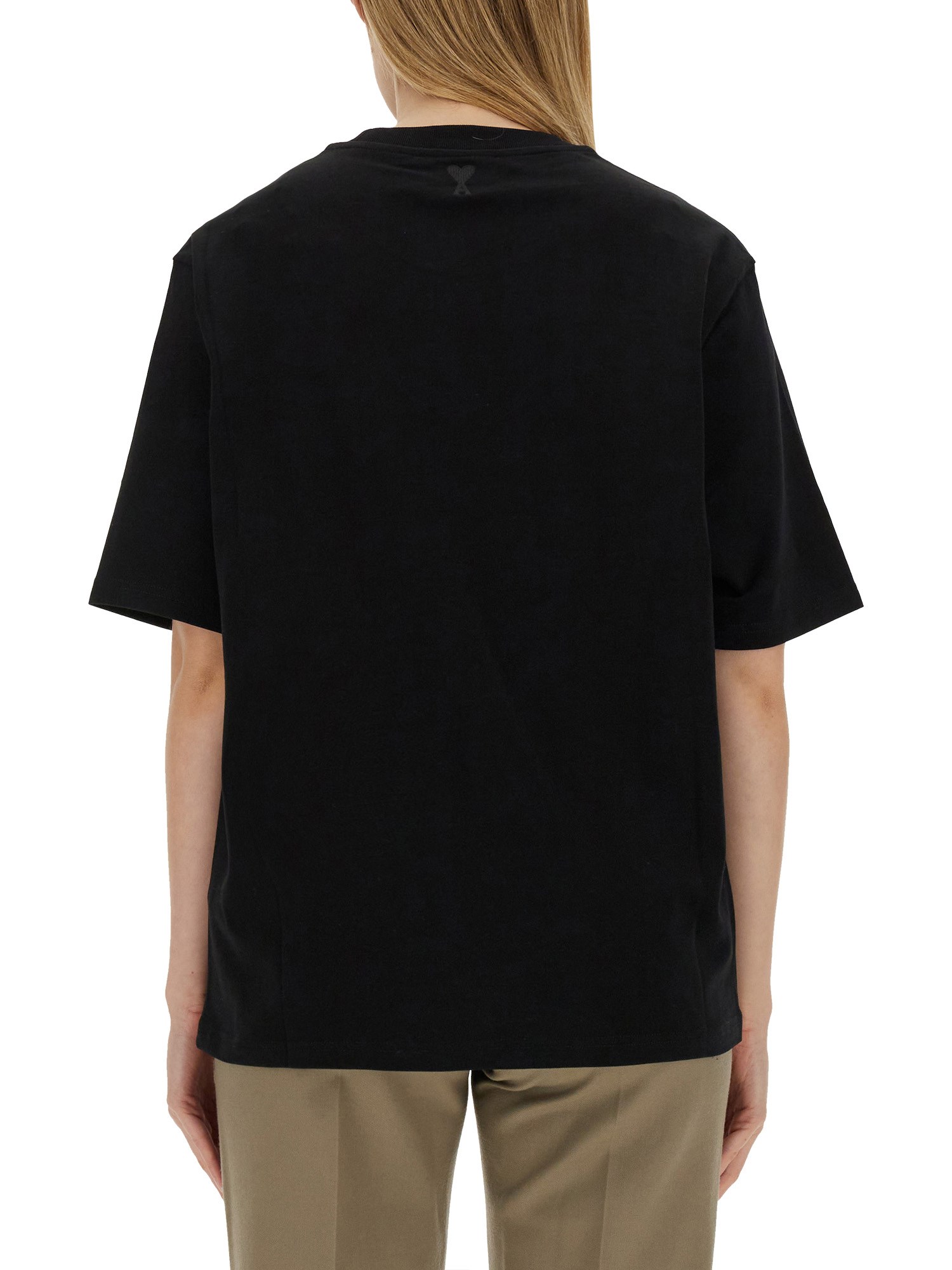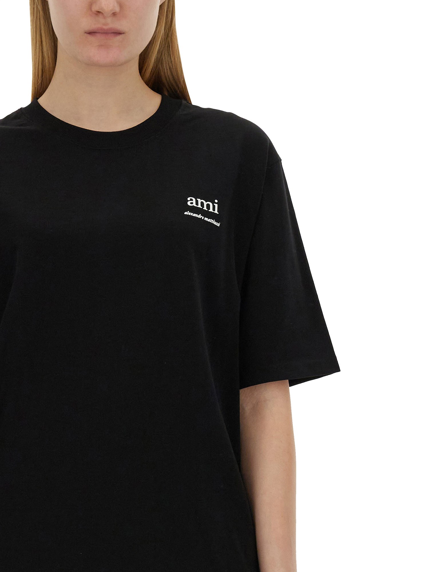 Elevate il vostro guardaroba casual con questa elegante T-shirt in cotone nero con l'iconico logo di Ami Paris. Realizzata con materiali di alta qualità, questa T-shirt offre stile e comfort per l'uso quotidiano. Sia che la si vesta con un blazer o che la si tenga casual con i jeans, questo capo versatile è un must-have per ogni individuo alla moda.