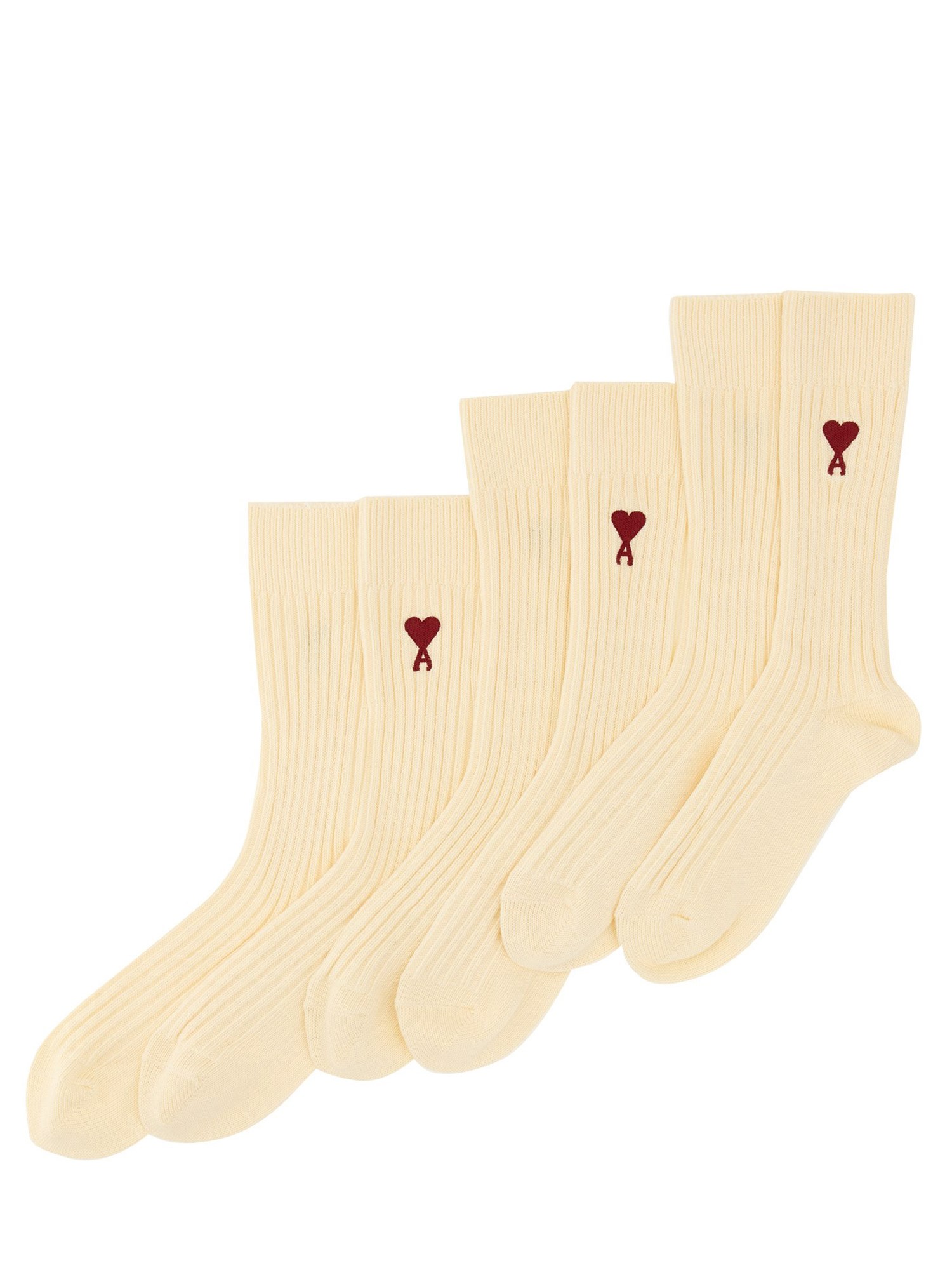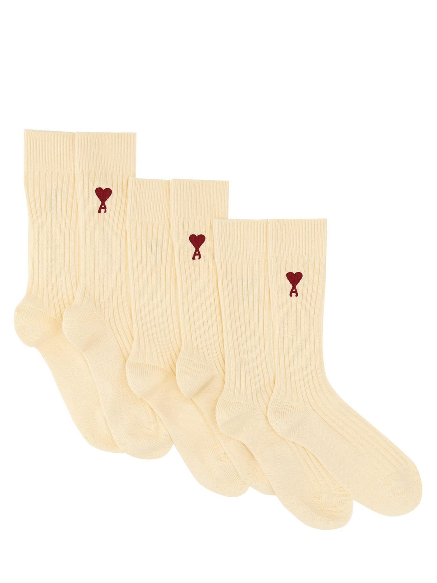 Vi presentiamo il set di tre calzini in misto cotone con logo di Ami Paris, l'aggiunta perfetta alla vostra collezione di calzature quotidiane. Realizzati in un morbido e confortevole tessuto di misto cotone, questi calzini sono progettati per offrire il massimo comfort e la massima durata per tutto il giorno. Che siate diretti al lavoro, in palestra o semplicemente a casa, questi calzini vi garantiranno una sensazione di comfort e stile.