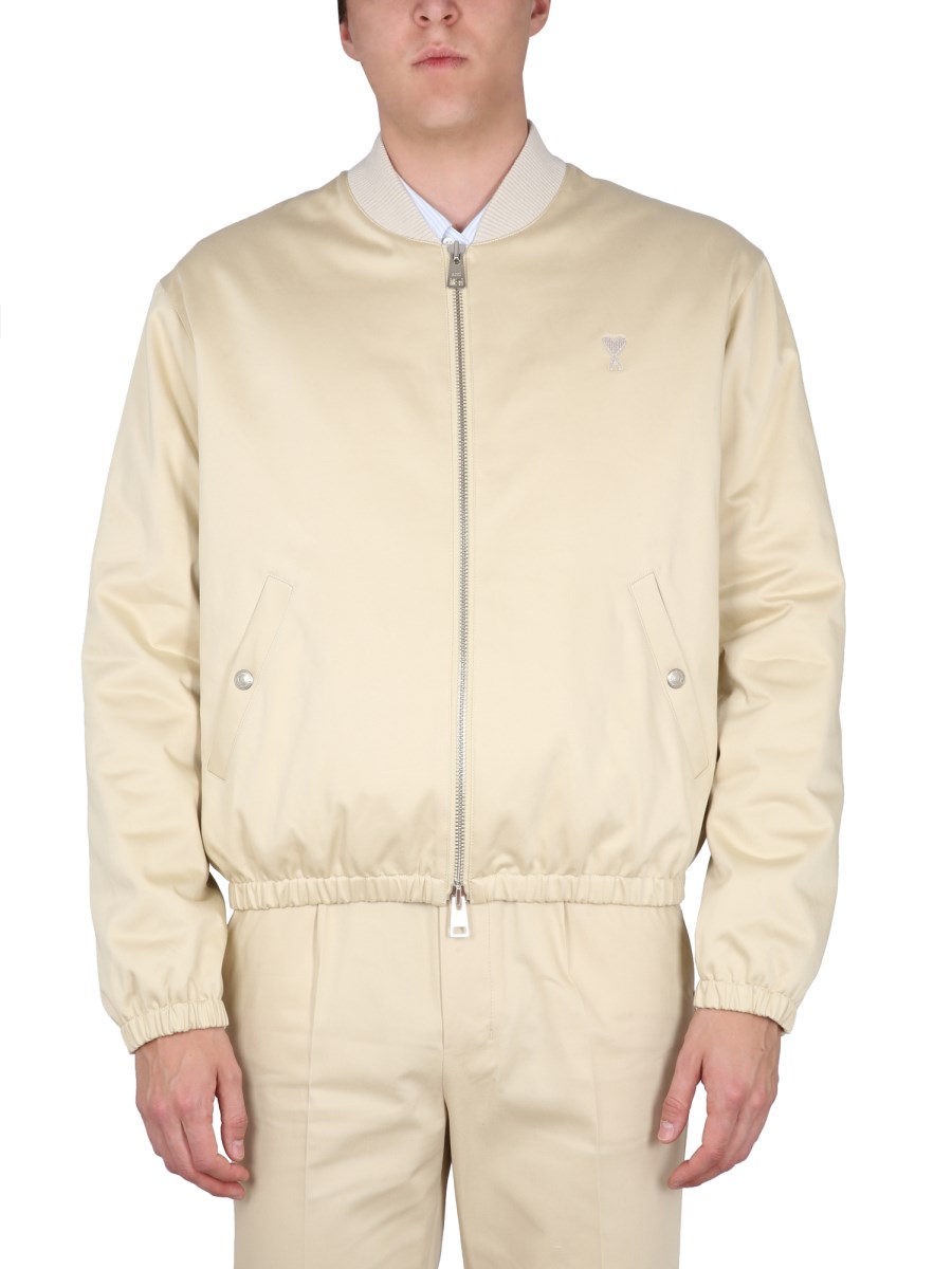 Il capo ideale per l'autunno è questo bomber di Ami Paris. Presenta una struttura in misto cotone, colletto varsity, chiusura frontale con cerniera, ricamo frontale del logo tono su tono e... La giacca è realizzata in misto cotone, morbido e accogliente. Il bomber è una necessità per l'armadio di ogni fashionista perché è un classico del guardaroba.
