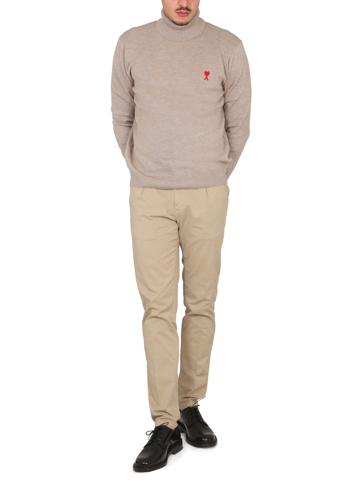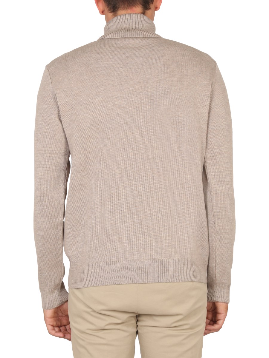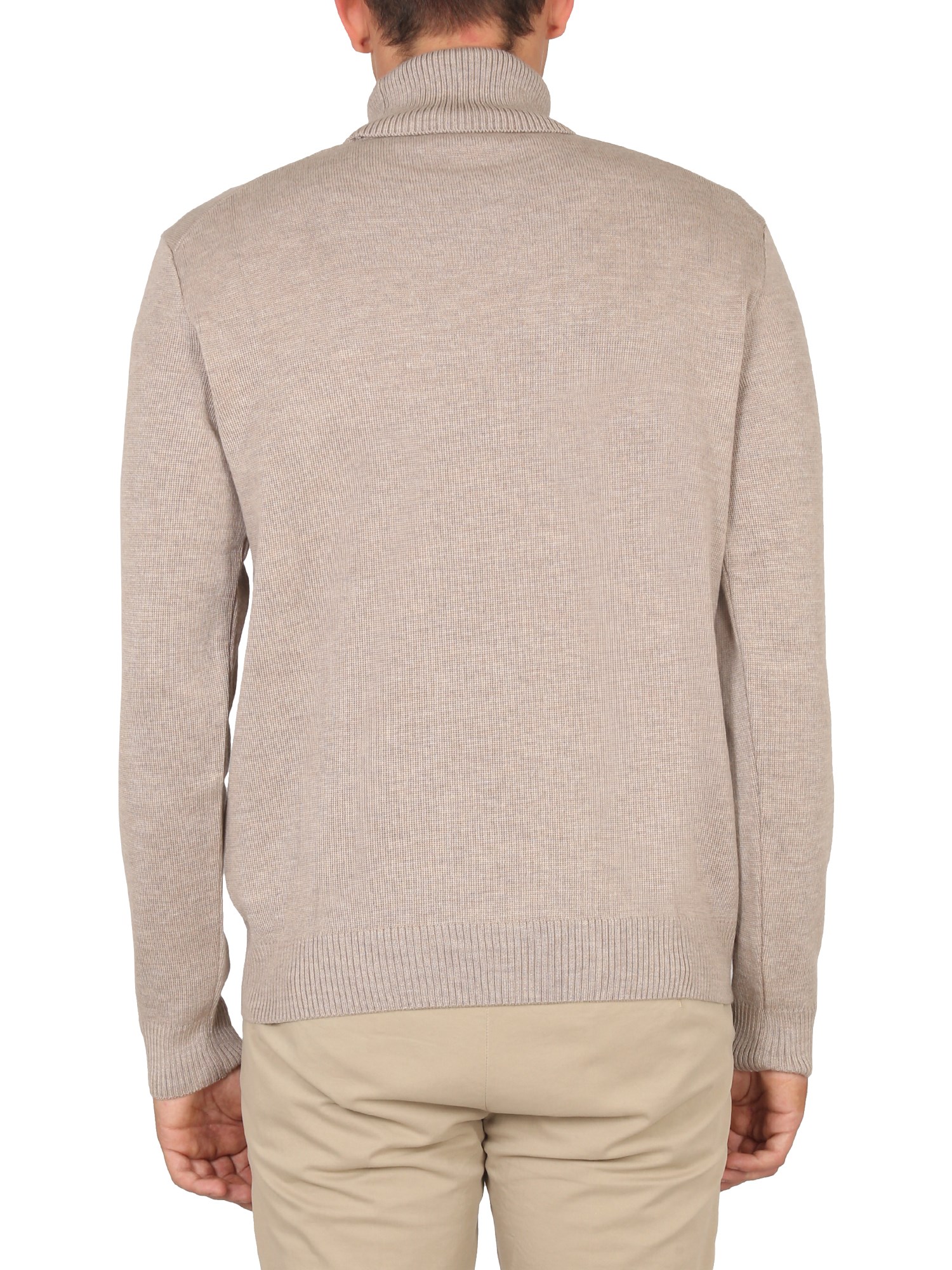 - COLLO ALTO- PATCH LOGO SUL PETTO- PUNTO MAGLIA INTRECCIATO- REGULAR FIT- 100% LANA- IL MODELLO È ALTO 190 CM E INDOSSA LA TAGLIA L