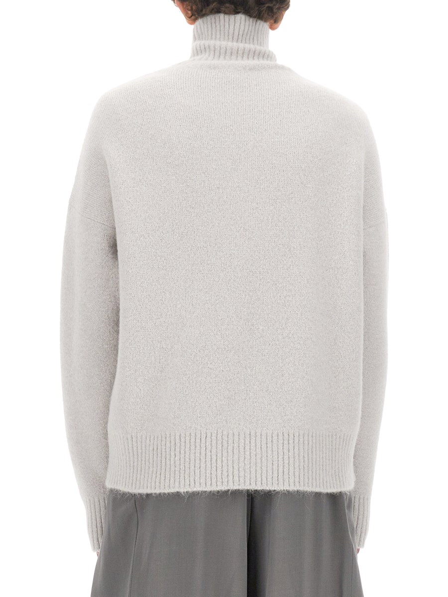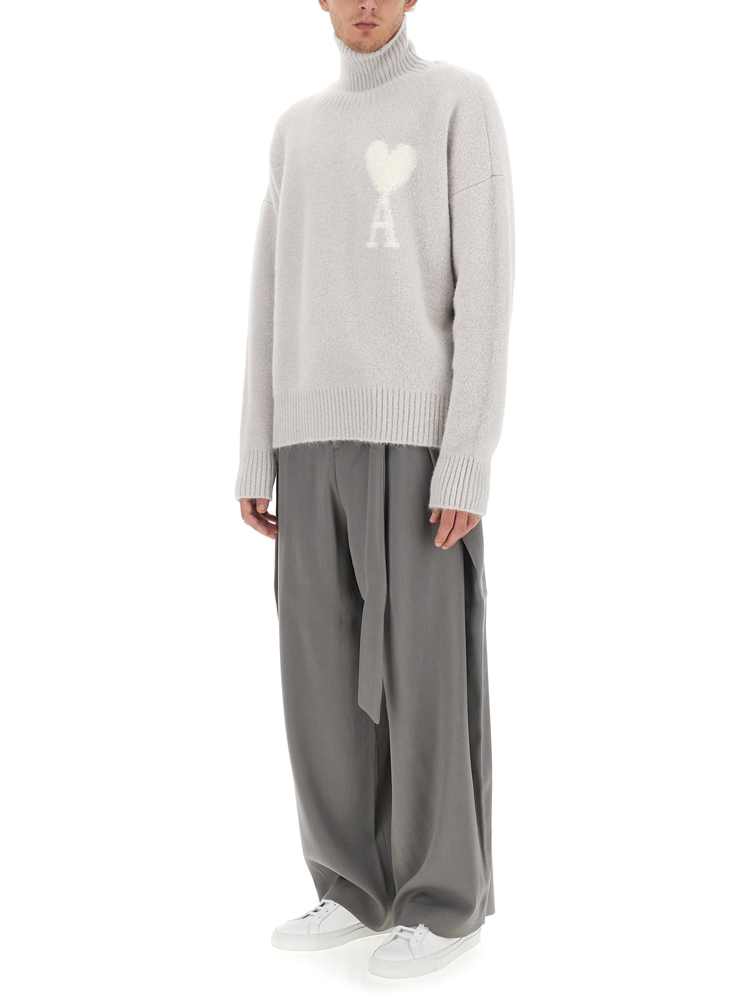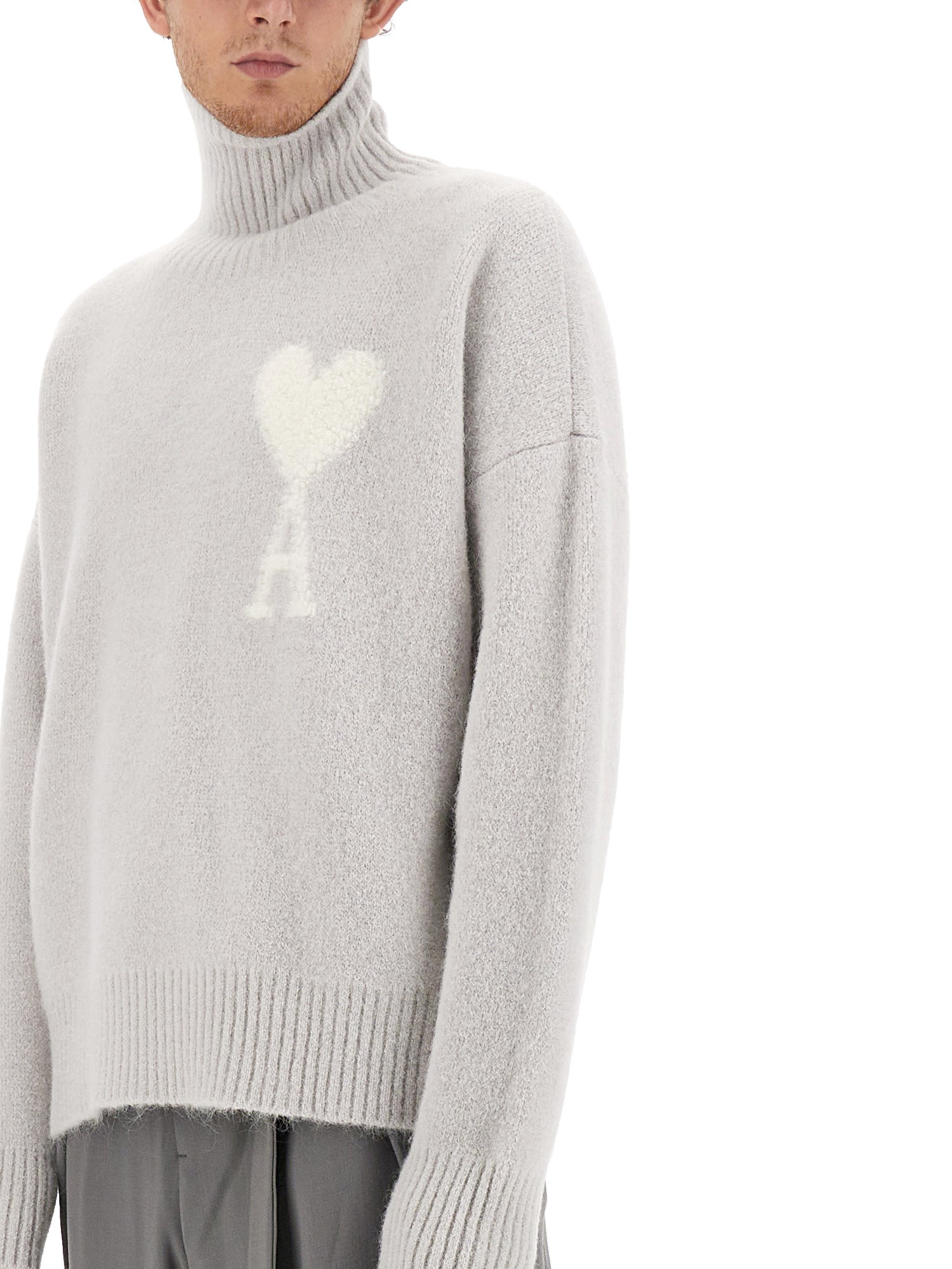 Siete alla ricerca di un capo chic e accogliente per il vostro guardaroba? Non cercate oltre il nostro maglione in lana con ricamo logo di Ami Paris! Progettato con una scollatura a tartaruga di tendenza, questo maglione è perfetto per tenervi al caldo durante le giornate fredde. Le maniche lunghe offrono un comfort extra e una grande versatilità, rendendolo un'ottima scelta per la sovrapposizione o per essere indossato da solo. L'orlo dritto aggiunge un tocco di raffinatezza al look complessivo.