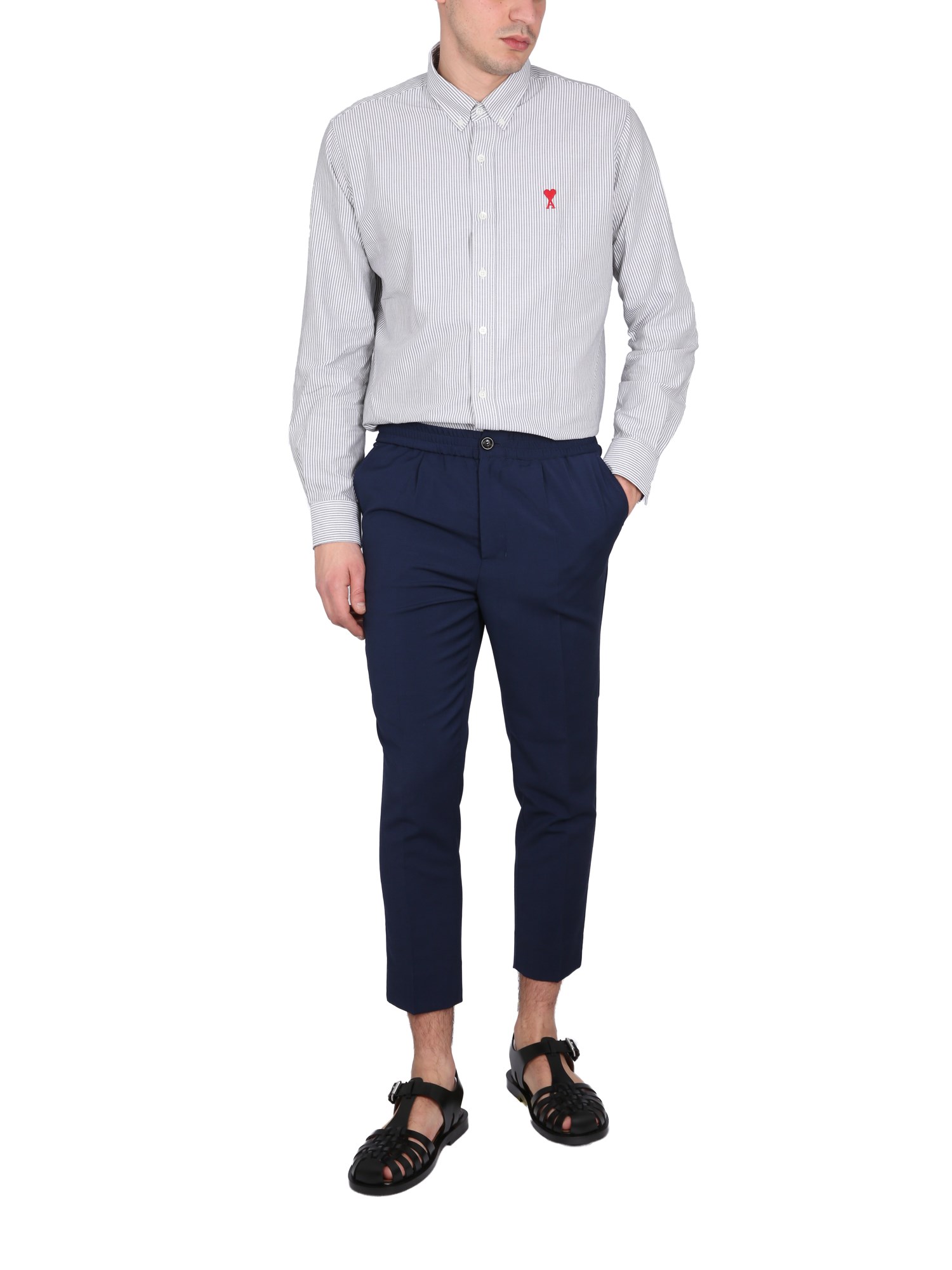 Se siete alla ricerca del paio di jeans perfetto, siete fortunati. I pantaloni cropped in lana di Ami Paris hanno una chiusura frontale con bottoni e un'ampia fascia elastica in vita. Il tessuto morbido e flessibile di questi pantaloni di lana li rende ideali per essere sovrapposti ad altri capi invernali.