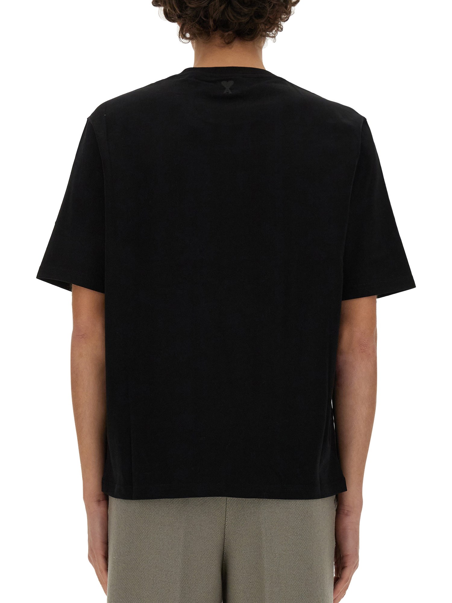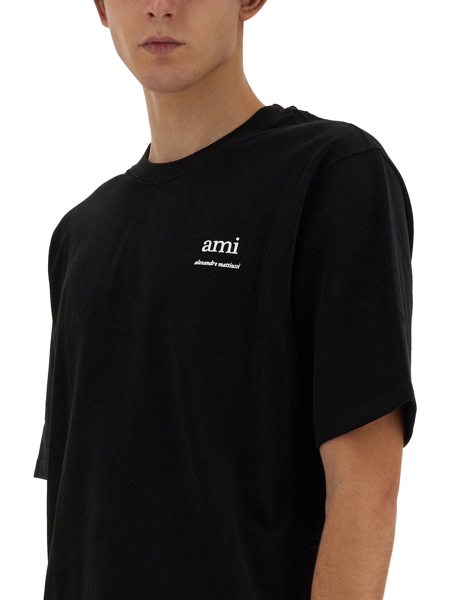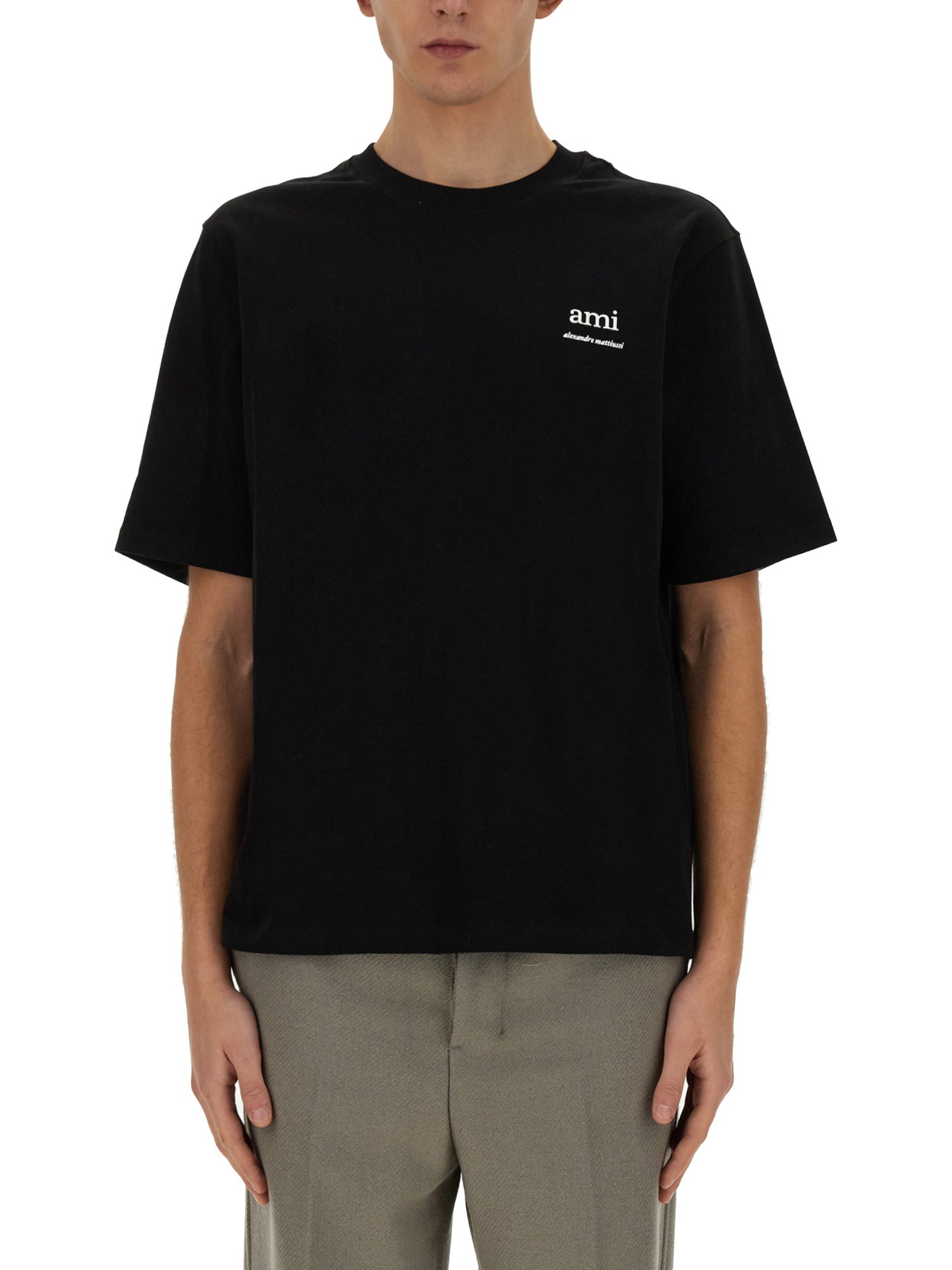 Elevate il vostro guardaroba casual con questa elegante T-shirt in cotone nero con l'iconico logo di Ami Paris. Realizzata con materiali di alta qualità, questa T-shirt offre stile e comfort per l'uso quotidiano. Sia che la si vesta con un blazer o che la si tenga casual con i jeans, questo capo versatile è un must-have per ogni individuo alla moda.
