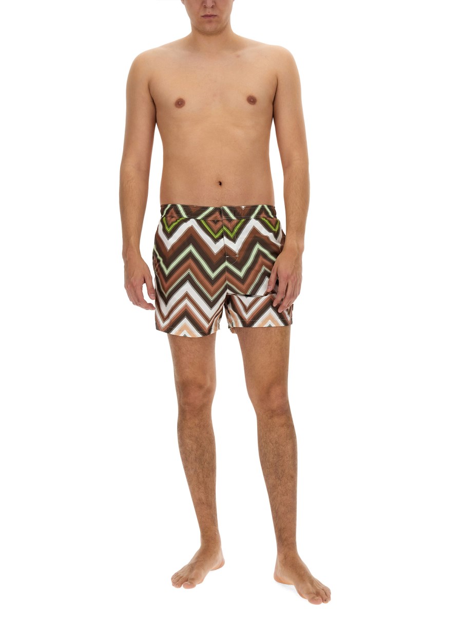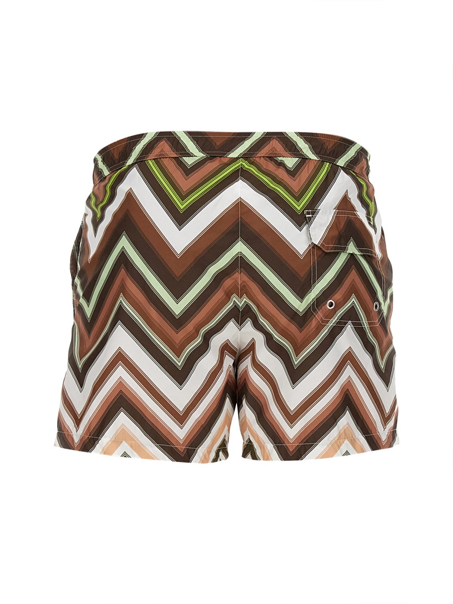 Elevate il vostro gioco di costumi da bagno con il costume da bagno in nylon Missoni. Questo costume da bagno chic vanta una vestibilità slim e un elastico in vita per una silhouette perfetta. Il sorprendente design allover aggiunge un tocco giocoso al vostro look da spiaggia o da piscina.