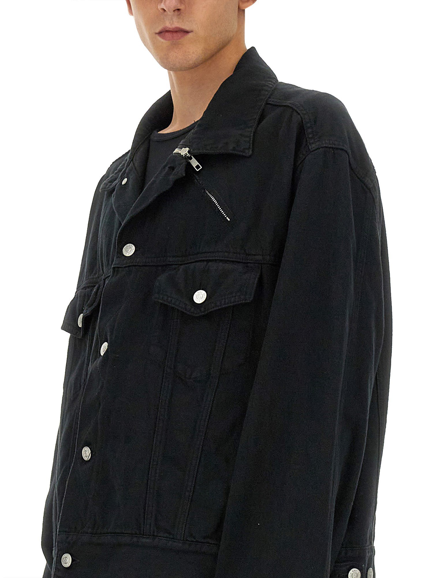 Questa giacca di jeans di MM6 Maison Margiela è un esempio di stile contemporaneo con un tocco classico. Realizzata in denim di alta qualità, presenta una vestibilità sartoriale che esalta la silhouette e assicura il comfort. La giacca è progettata con dettagli distintivi, tra cui cuciture uniche e un taglio moderno, che la rendono un'aggiunta versatile a qualsiasi guardaroba. Ideale per occasioni casual e semi-formali, questo capo incarna l'approccio innovativo del marchio alla moda, fondendo elementi senza tempo con un'estetica d'avanguardia.