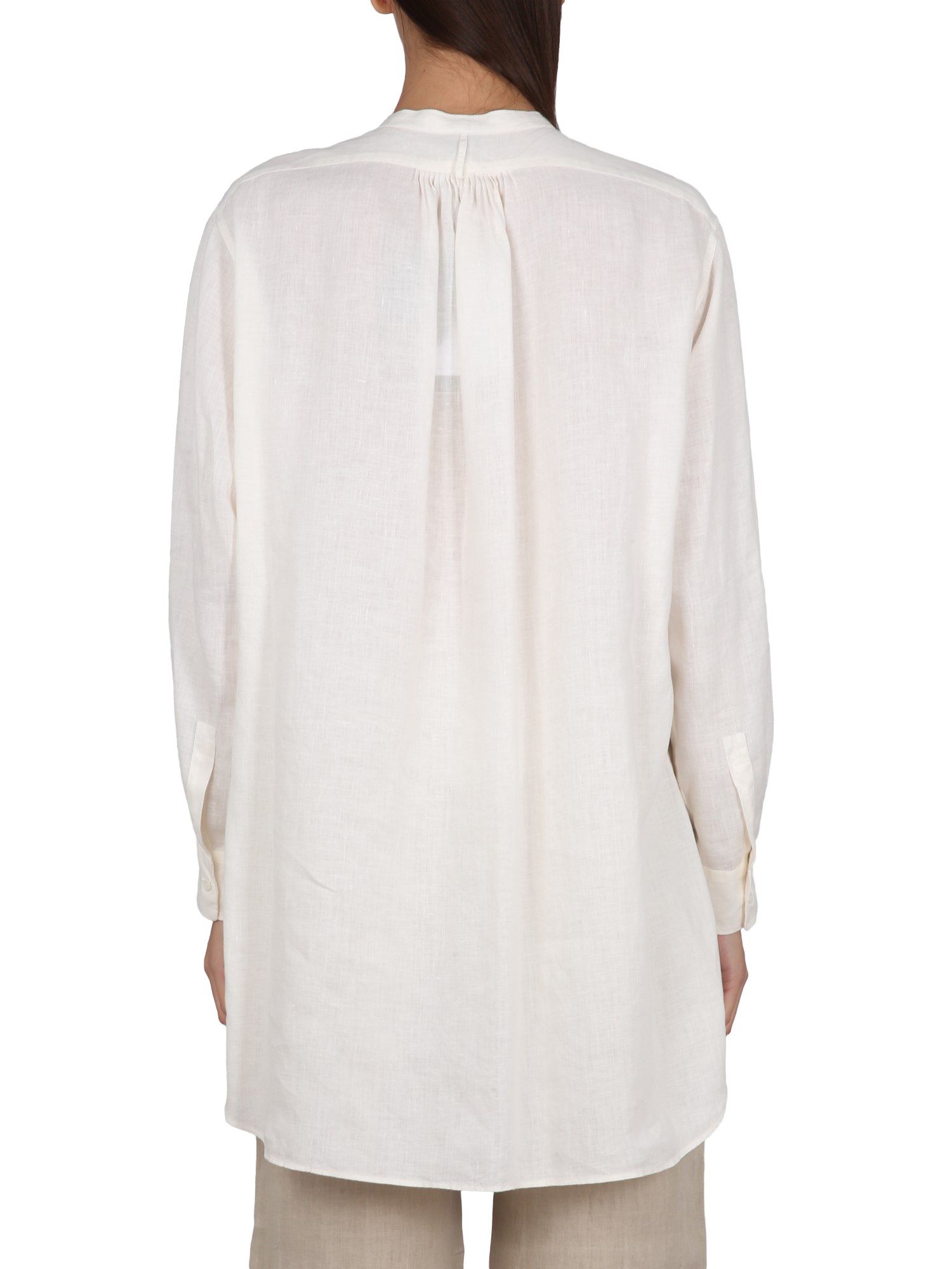 Realizzata al 100% in lino, questa camicia di Aspesi è leggera, traspirante e confortevole. È disegnata con un orlo dritto, dall'aspetto moderno e sofisticato. Con le sue maniche lunghe e il colletto alla mandarina, questa camicia è perfetta per chi cerca un capo versatile da indossare in qualsiasi ambiente.