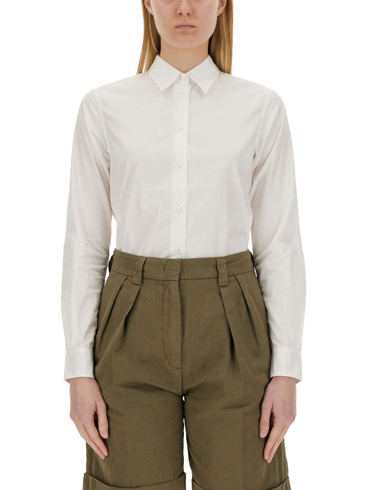 Questa camicia da donna in cotone bianco con collo classico di Aspesi è un capo intramontabile del guardaroba che emana eleganza e raffinatezza. Con il suo design pulito e minimalista, questa camicia può essere abbinata senza sforzo a pantaloni, gonne o jeans, consentendo infinite possibilità di stile. Da indossare in ufficio, a un incontro mondano o a un'uscita nel weekend, questa camicia in cotone bianco è un'aggiunta irrinunciabile al guardaroba di ogni donna, che unisce stile e comfort senza sforzo.