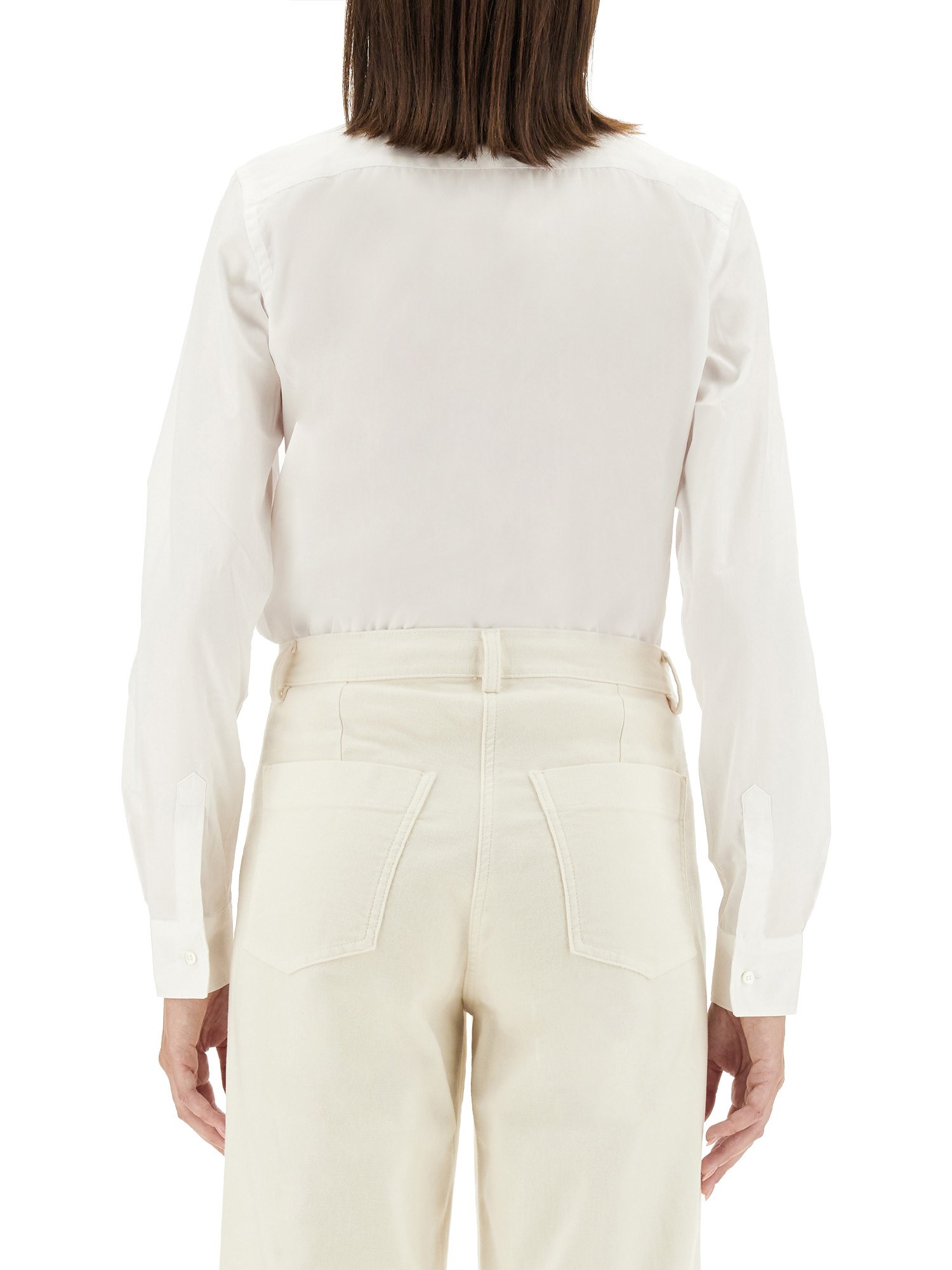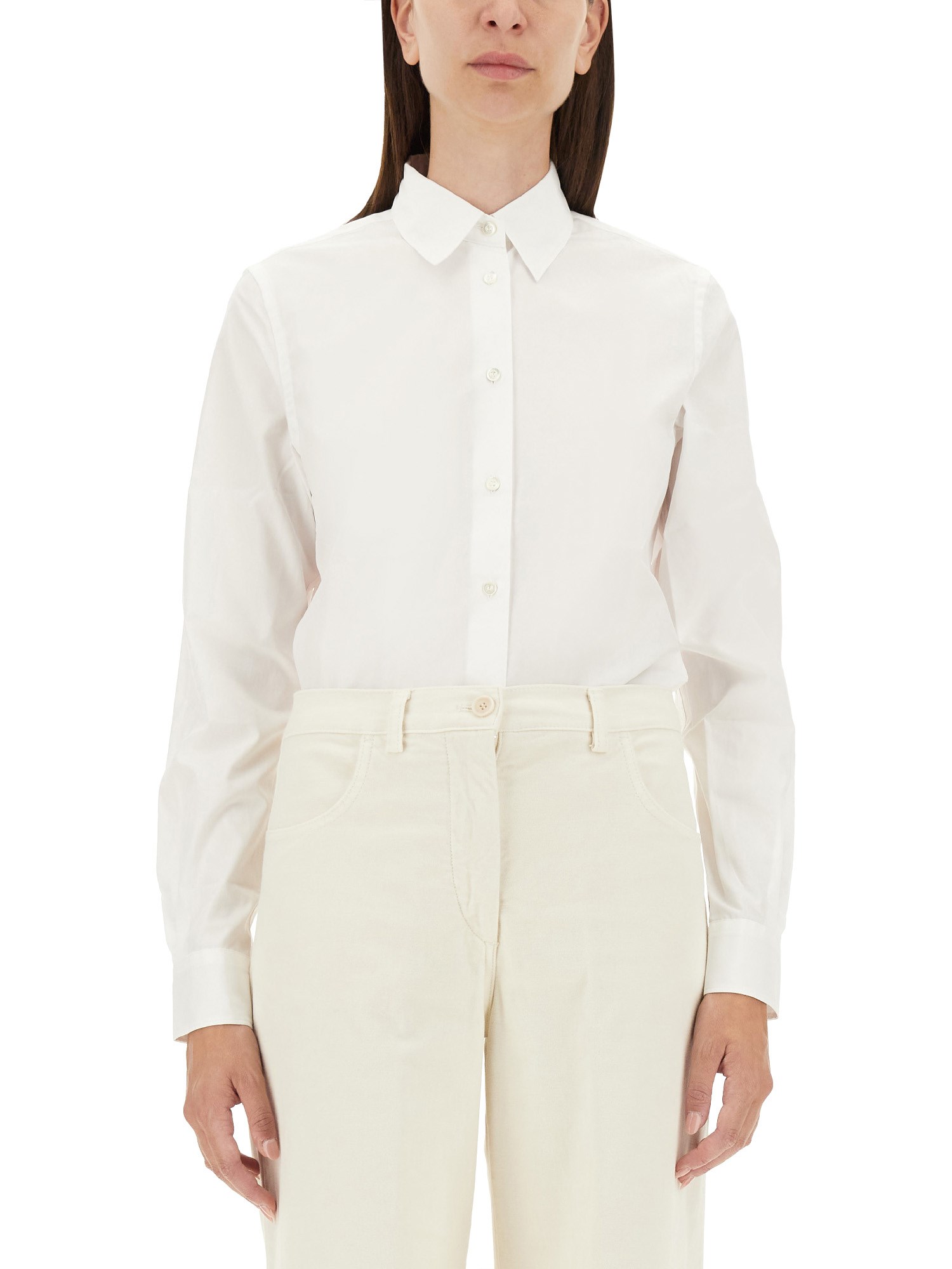 Questa camicia da donna in cotone bianco con collo classico di Aspesi è un capo intramontabile del guardaroba che emana eleganza e raffinatezza. Con il suo design pulito e minimalista, questa camicia può essere abbinata senza sforzo a pantaloni, gonne o jeans, consentendo infinite possibilità di stile. Da indossare in ufficio, a un incontro mondano o a un'uscita nel weekend, questa camicia in cotone bianco è un'aggiunta irrinunciabile al guardaroba di ogni donna, che unisce stile e comfort senza sforzo.