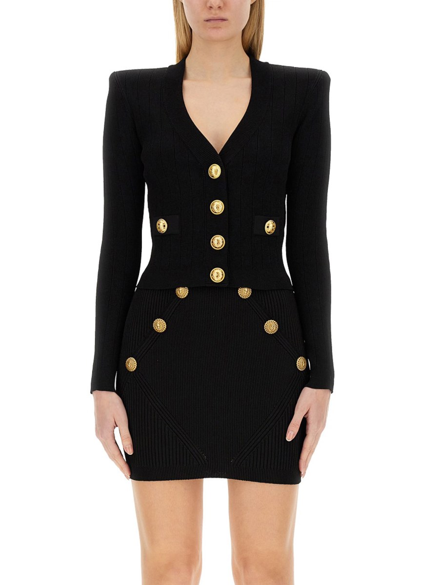 Questo cardigan di Balmain è l'epitome del comfort e della raffinatezza e rappresenta un'aggiunta indispensabile al vostro guardaroba. Realizzato in maglia di viscosa di alta qualità, questo cardigan offre una sensazione morbida e lussuosa sulla pelle. La leggerezza e la traspirabilità del materiale lo rendono perfetto per essere indossato tutto l'anno, consentendovi di stare al caldo nei mesi più freddi e di essere comodamente alla moda quando la temperatura sale. Lo scollo a V aggiunge un tocco di femminilità al design, mentre il dettaglio dei bottoni dorati eleva l'estetica generale.