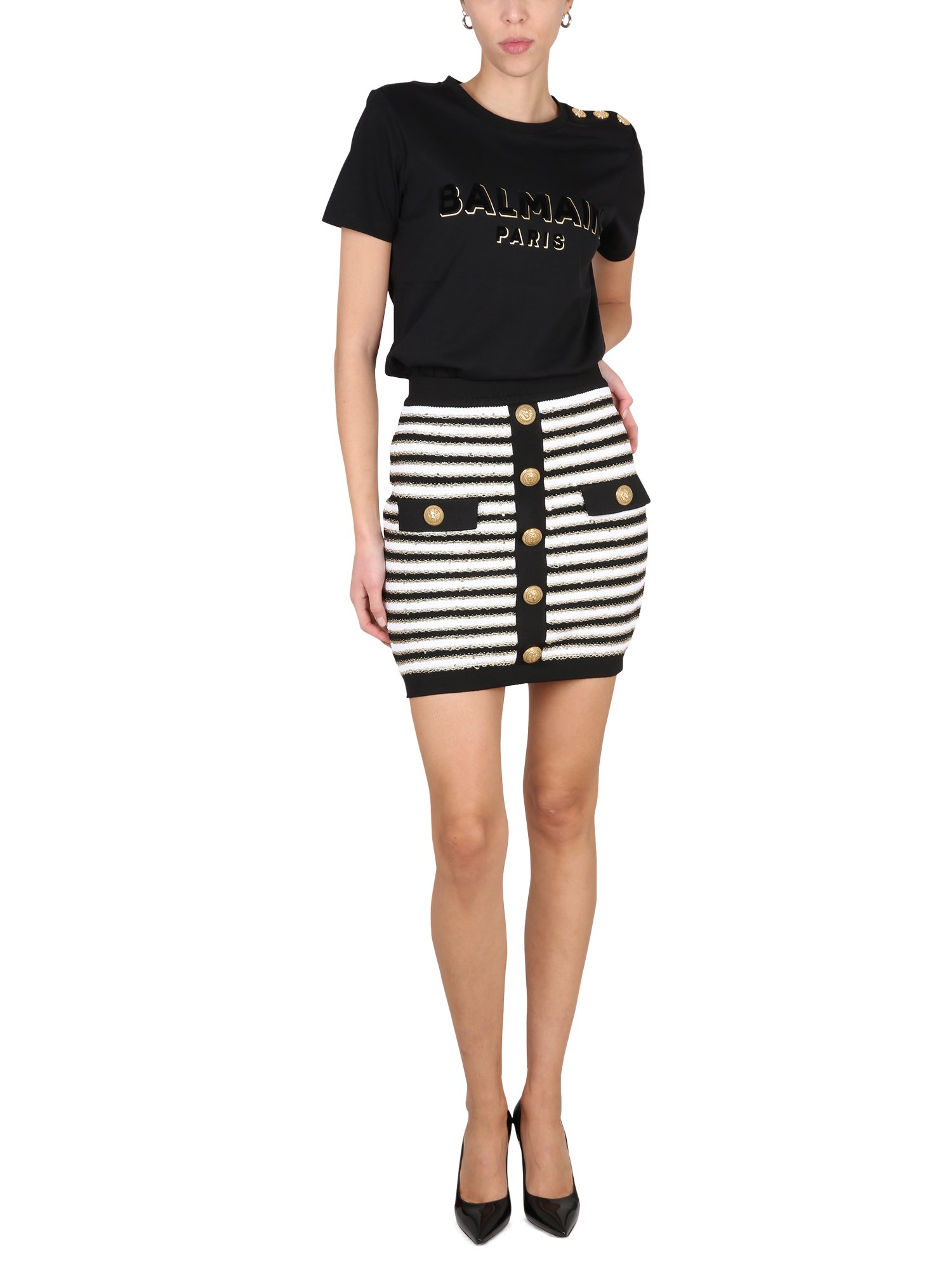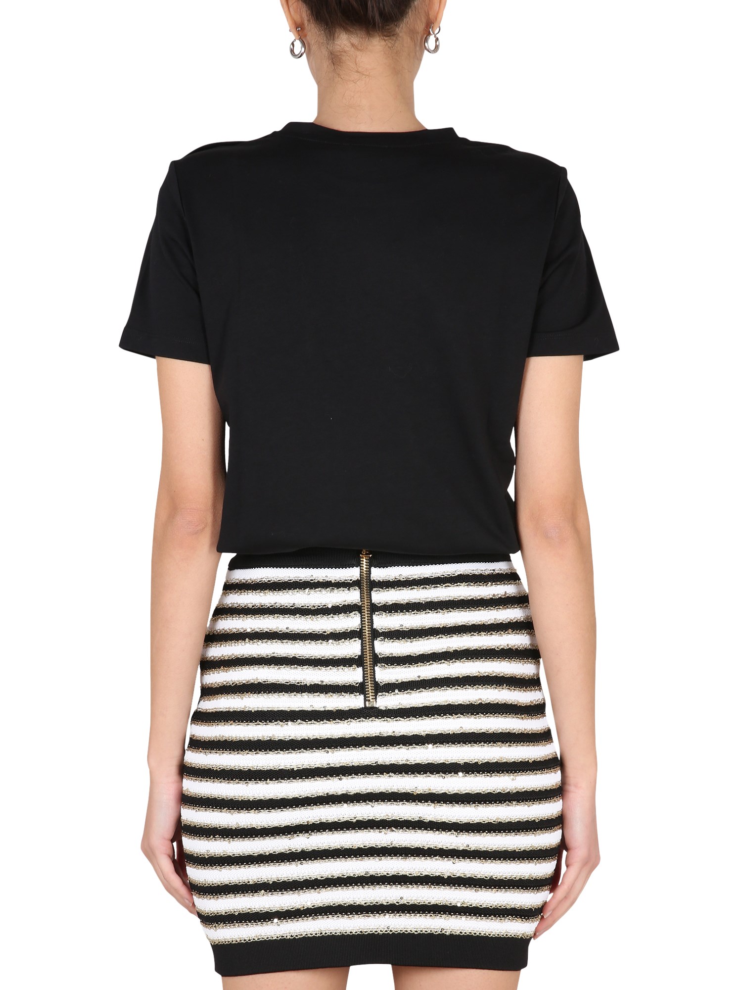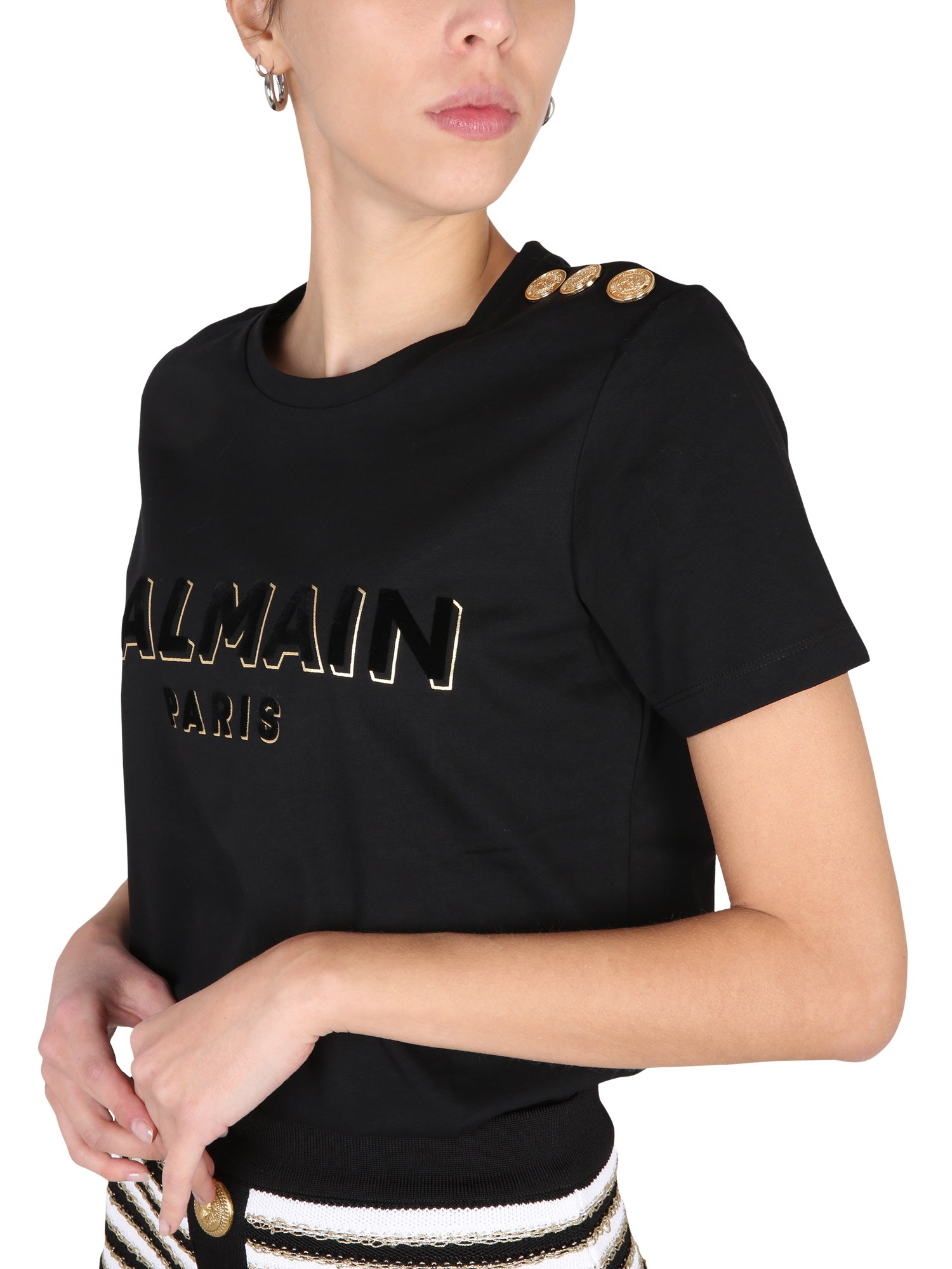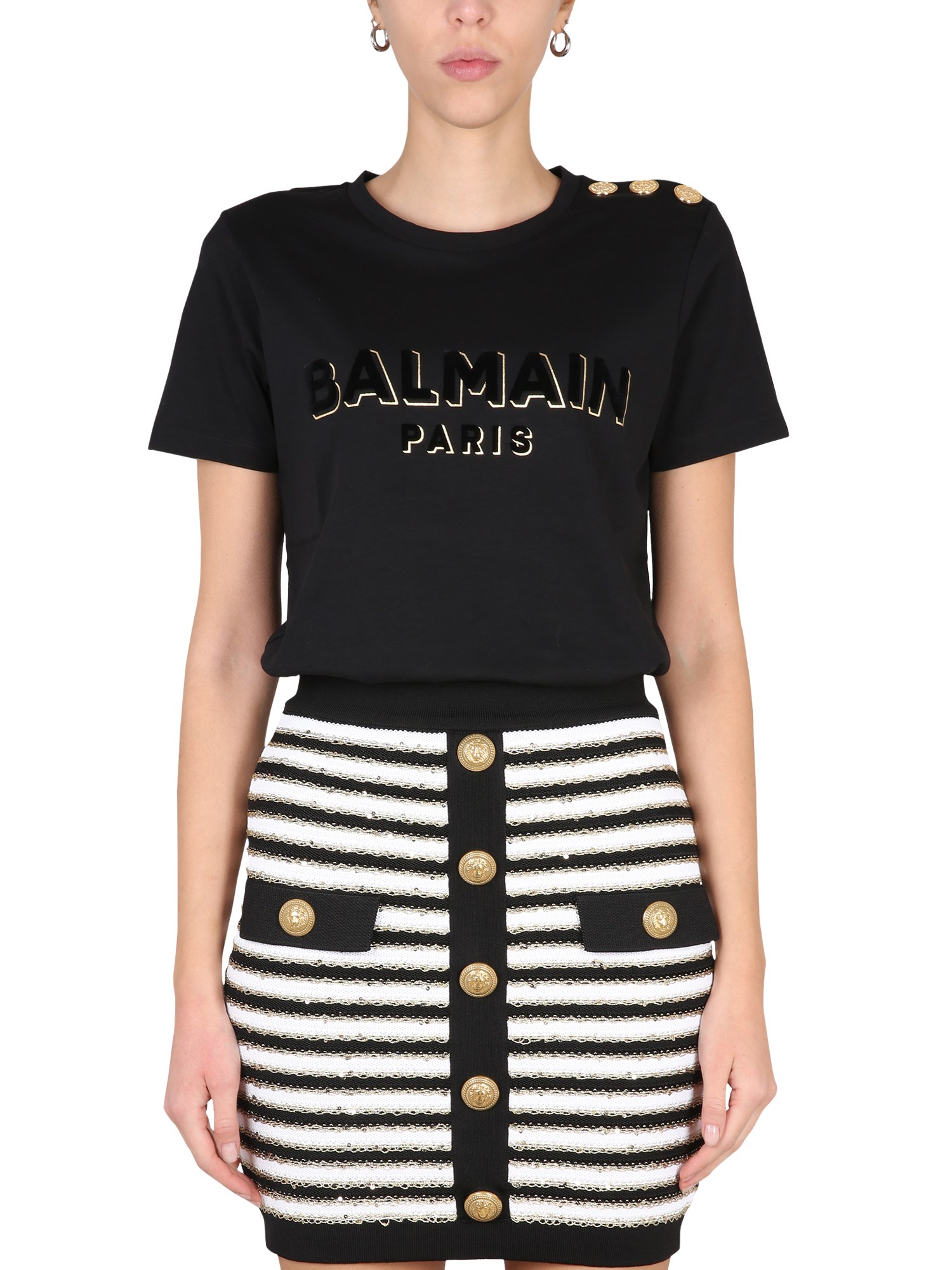 La T-shirt in cotone con logo frontale girocollo e vestibilità regolare di Balmain è un classico del guardaroba. È un capo perfetto per l'armadio. Ha una vestibilità classica e uno stile che non passerà mai di moda. Questa t-shirt è un must per ogni armadio. È una maglietta classica e semplice, con un materiale di cotone morbido e confortevole.