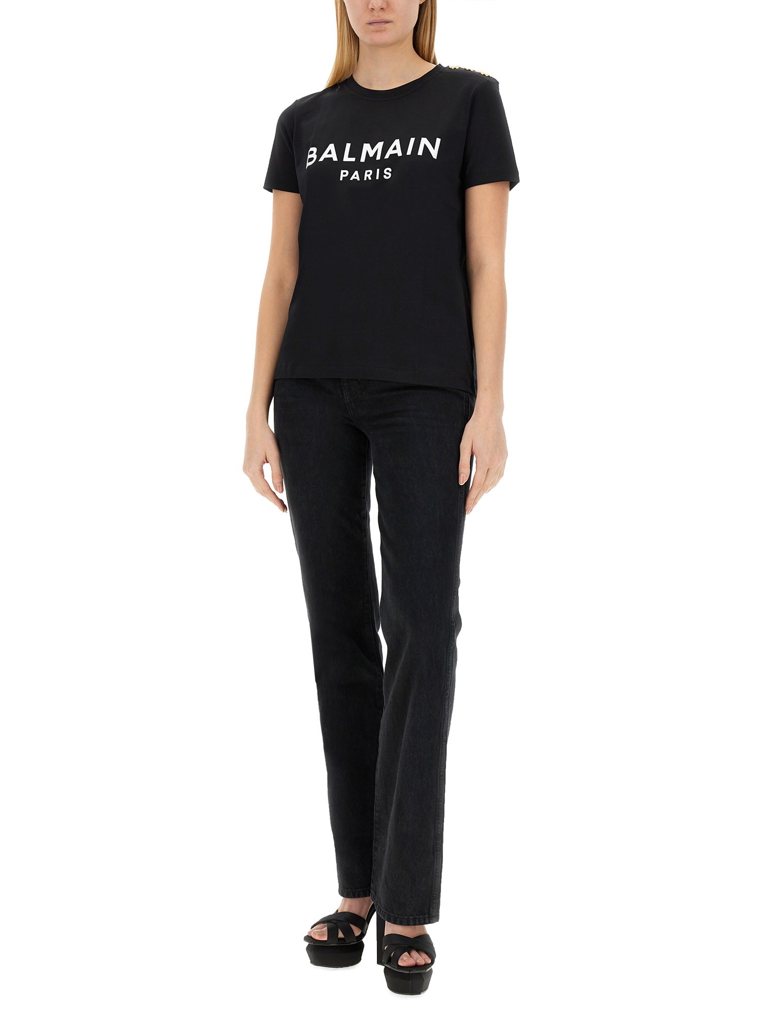 Questa T-shirt Balmain presenta un caratteristico design con logo, che incarna lo stile e il lusso tipici del marchio. Realizzata con materiali di alta qualità, garantisce comfort e durata, rendendola un'aggiunta versatile a qualsiasi guardaroba. Il logo in evidenza aggiunge un tocco di raffinatezza, perfetto sia per le occasioni casual che per quelle più raffinate. Elevate il vostro stile con questo pezzo essenziale che riflette un'eleganza contemporanea e un fascino senza tempo.