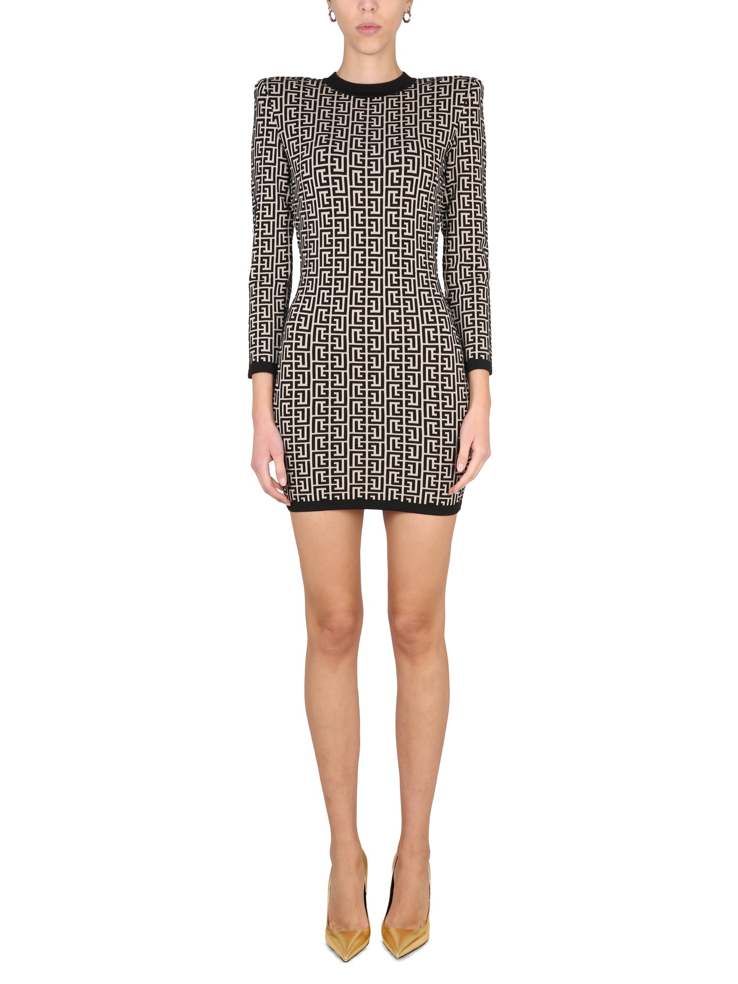 L'abito logo in misto lana di Balmain è una rivisitazione elegante e moderna dell'abito classico. L'abito presenta una chiusura posteriore con cerniera incrociata e spalle imbottite. È realizzato in un misto lana morbido e leggero, perfetto per essere indossato durante le stagioni più fredde. Questo abito in lana elasticizzata è realizzato in un materiale confortevole e morbidissimo al tatto.