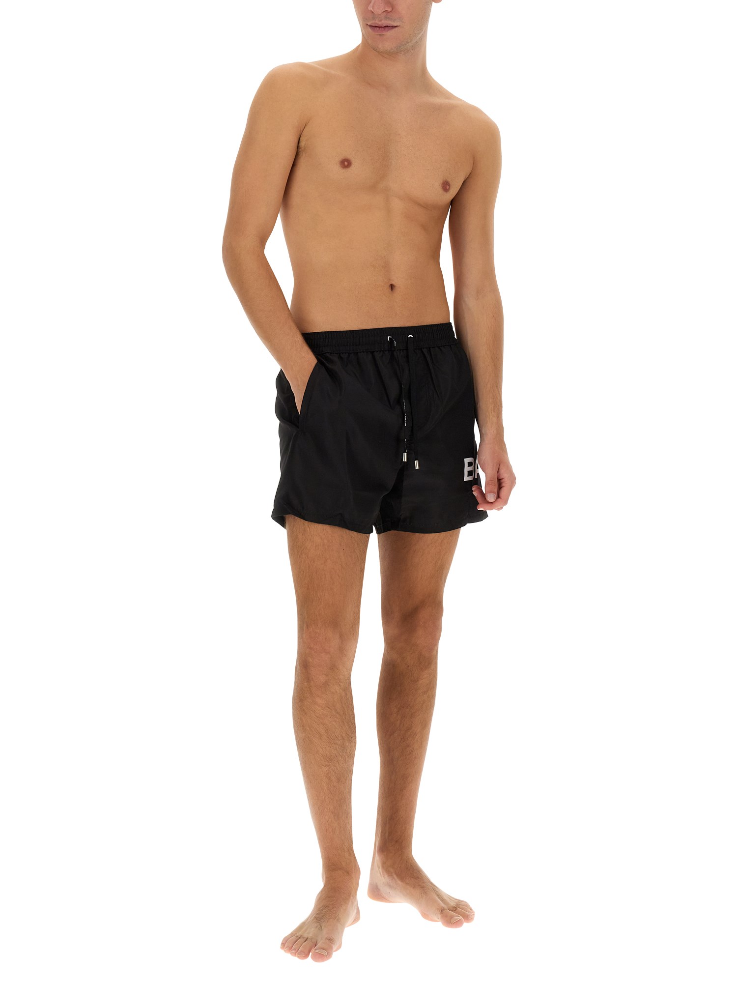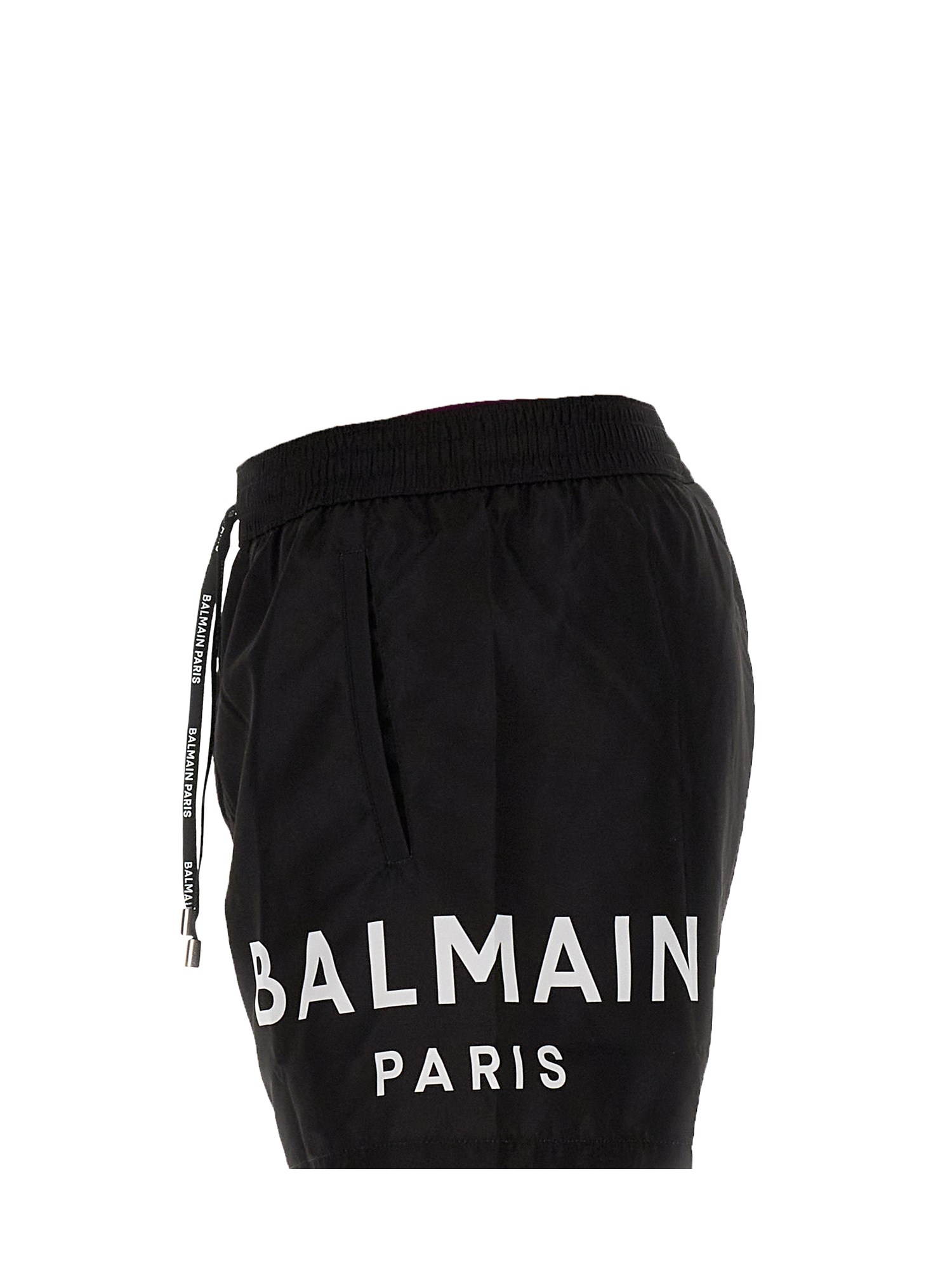 Il costume da bagno boxer con logo di Balmain è un must-have per chiunque voglia stare al fresco in estate. Questo costume da bagno boxer presenta un paio di fasce regolabili in vita e un logo elastico sul retro del top.