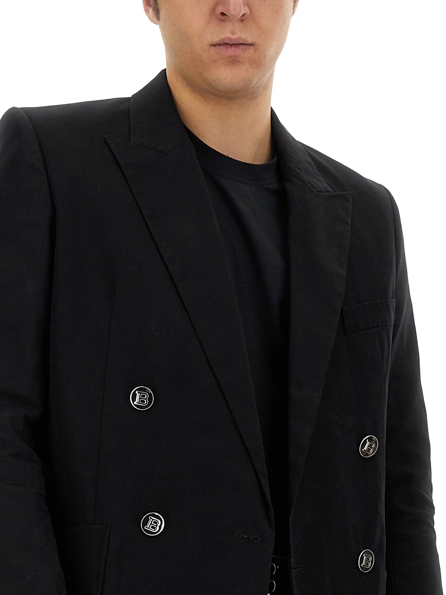 Questa giacca di Balmain è un aggiornamento moderno di uno stile classico a doppio petto. La chiusura a bottoni è perfetta per qualsiasi occasione casual o formale, mentre i revers a lancia sono realizzati su misura per accentuare il look. Questa giacca elegante è realizzata in misto cotone, che la rende comoda e resistente.