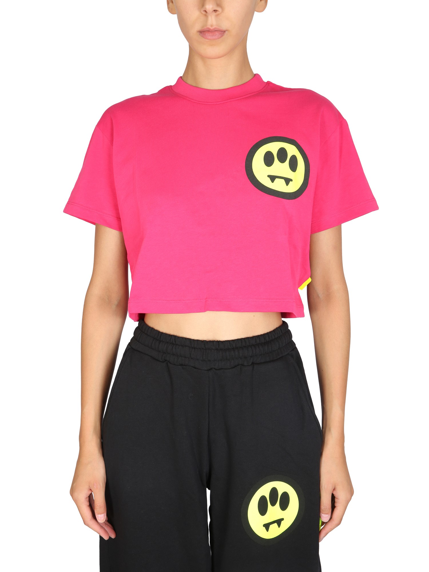 Elegante e raffinata, questa T-shirt cropped in cotone di Barrow sarà il vostro capo preferito. Presenta una scollatura a girocollo, maniche corte e orlo dritto. Presenta una stampa olografica sul retro e un logo sul davanti. Abbinate la t-shirt a pantaloncini o jeans per un perfetto look casual.