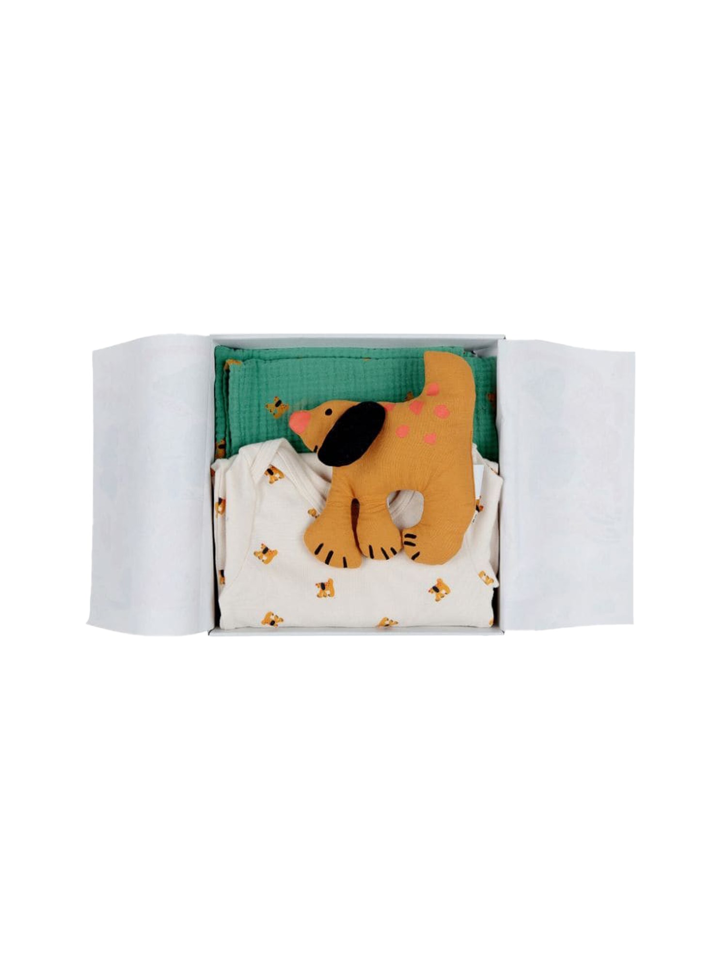 Il set regalo Baby Fairy Dog di Bobo Choses è un'affascinante collezione pensata per deliziare sia i neonati che i genitori. Questo incantevole set è composto da un peluche a forma di cane fatato, realizzato con materiali morbidi e di alta qualità, che garantiscono il comfort e la sicurezza dei più piccoli. Accompagnato da un libro di fiabe splendidamente illustrato, incoraggia il gioco immaginativo e favorisce l'amore per la lettura fin dalla più tenera età. Perfetto come regalo per la festa del bebè o per il compleanno, questo set incarna lo spirito giocoso di Bobo Choses e rappresenta una deliziosa aggiunta a qualsiasi cameretta.