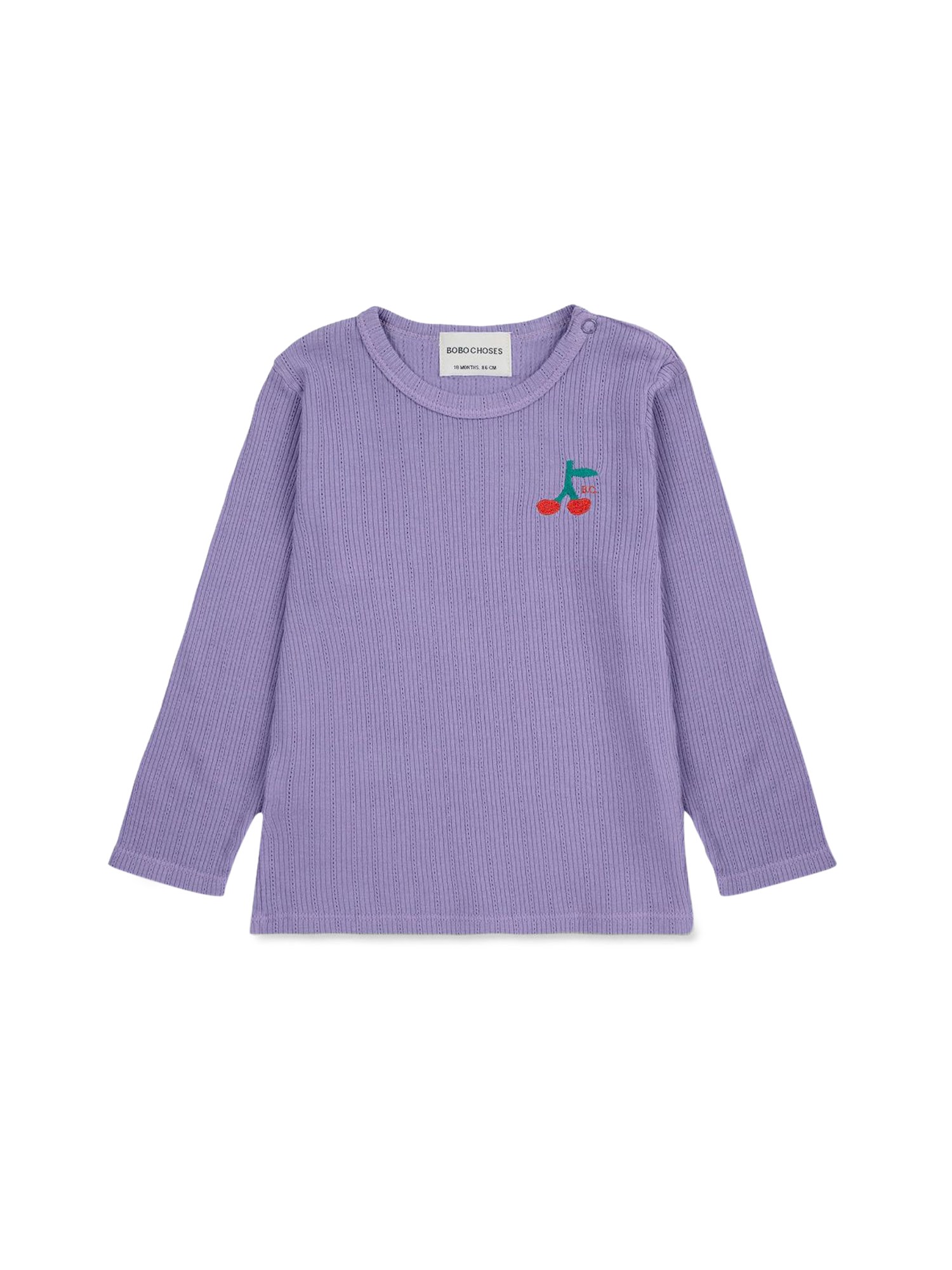 Vi presentiamo l'adorabile T-shirt a maniche lunghe Baby Cherry di Bobo Choses! Realizzata in cotone biologico, questa maglietta con scollo a girocollo presenta maniche lunghe e orlo dritto per una vestibilità comoda ed elegante. Perfetta per gli incontri di gioco o per le giornate in casa, il vostro piccolo amerà la sensazione di morbidezza di questa maglietta leggera.