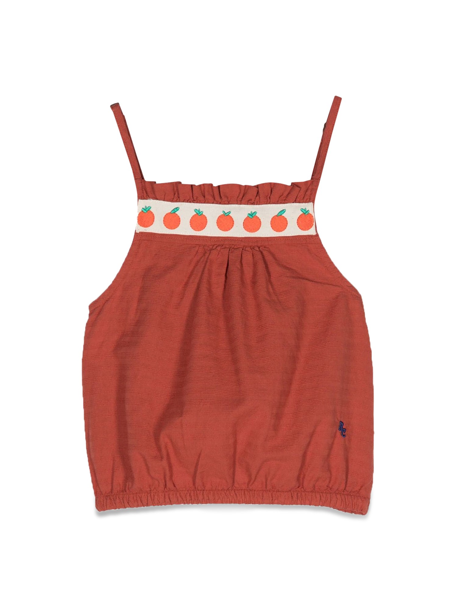 Vi presentiamo il top da bambino senza maniche in cotone misto pomodoro di Bobo Choses, un'aggiunta elegante e confortevole al guardaroba di ogni bambino. Realizzato in un tessuto di misto cotone morbido e traspirante, questo top è perfetto per la stagione calda e per il gioco attivo. Il design senza maniche consente libertà di movimento, mentre la trama intrecciata aggiunge un tocco di raffinatezza. Il vivace colore pomodoro aggiunge un tocco di allegria e può essere facilmente abbinato a pantaloncini, gonne o jeans.