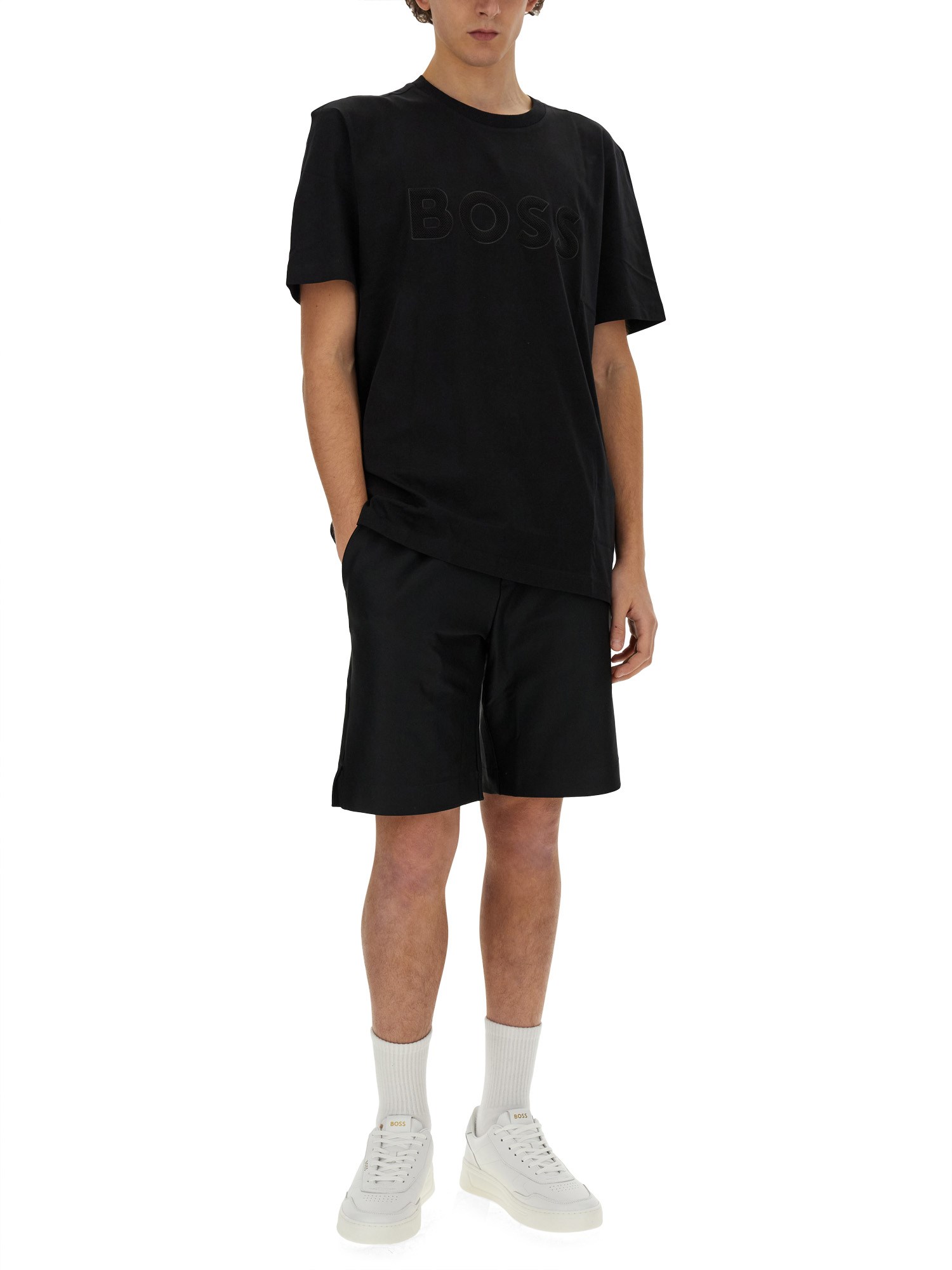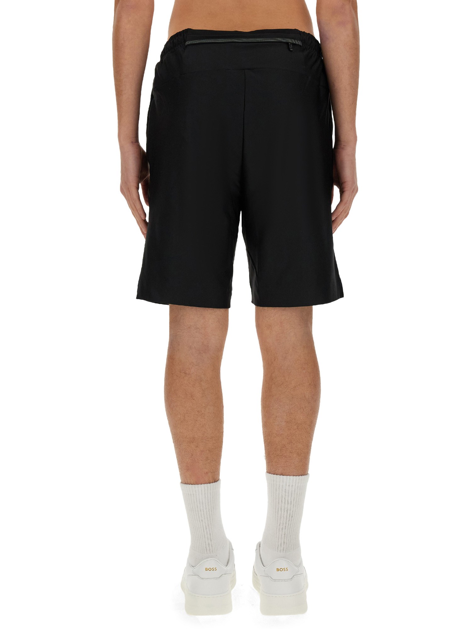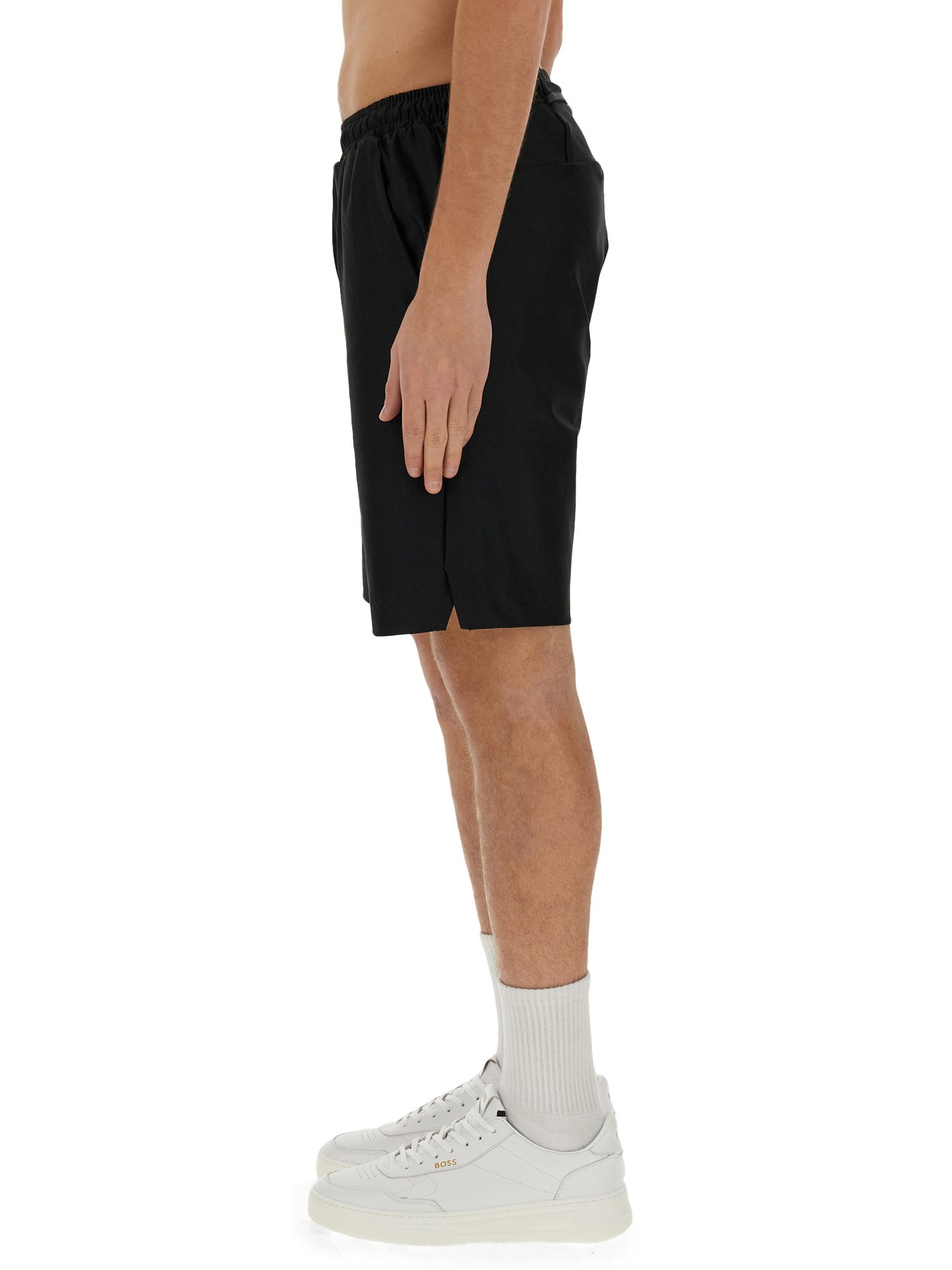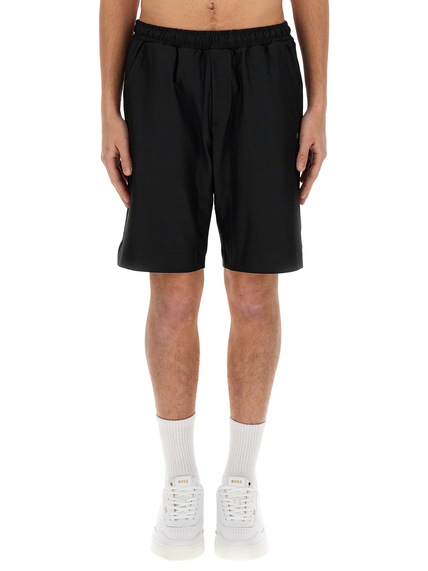 Elevate il vostro guardaroba casual con questi bermuda neri in elastan RPL di Boss. Realizzati con una miscela di materiali di alta qualità, questi pantaloncini offrono stile e comfort per l'uso quotidiano. L'elegante colore nero aggiunge un tocco di raffinatezza e li rende versatili per diverse occasioni.