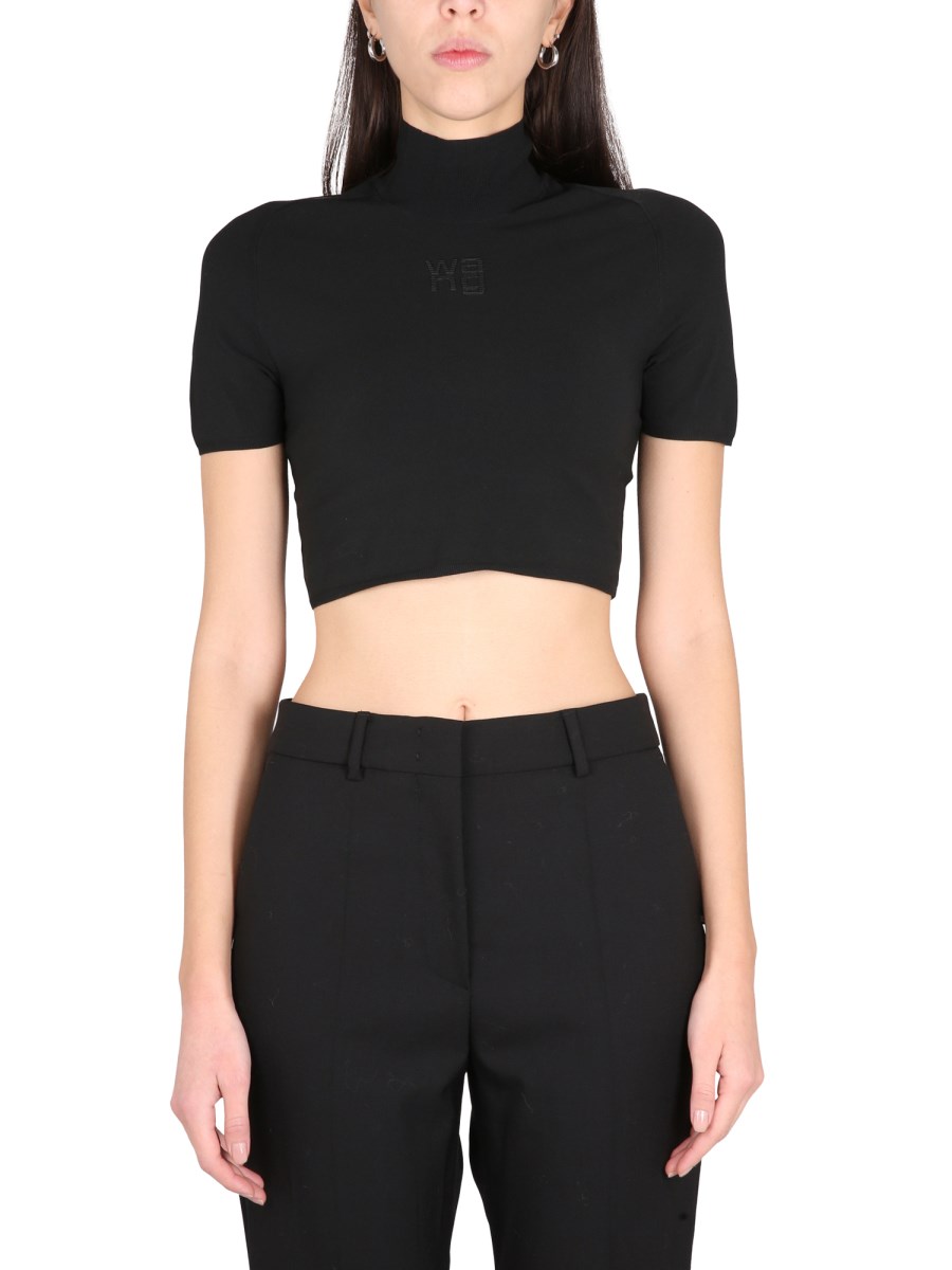 Questo top di Alexanderwang T. è molto semplice ed elegante, con un'ottima lunghezza. La camicia ha un dettaglio frontale a collo alto ed è molto leggera e confortevole. Questo top a collo alto in cotone con dettaglio logo è il capo perfetto da indossare con i vostri jeans e le vostre scarpe preferite.