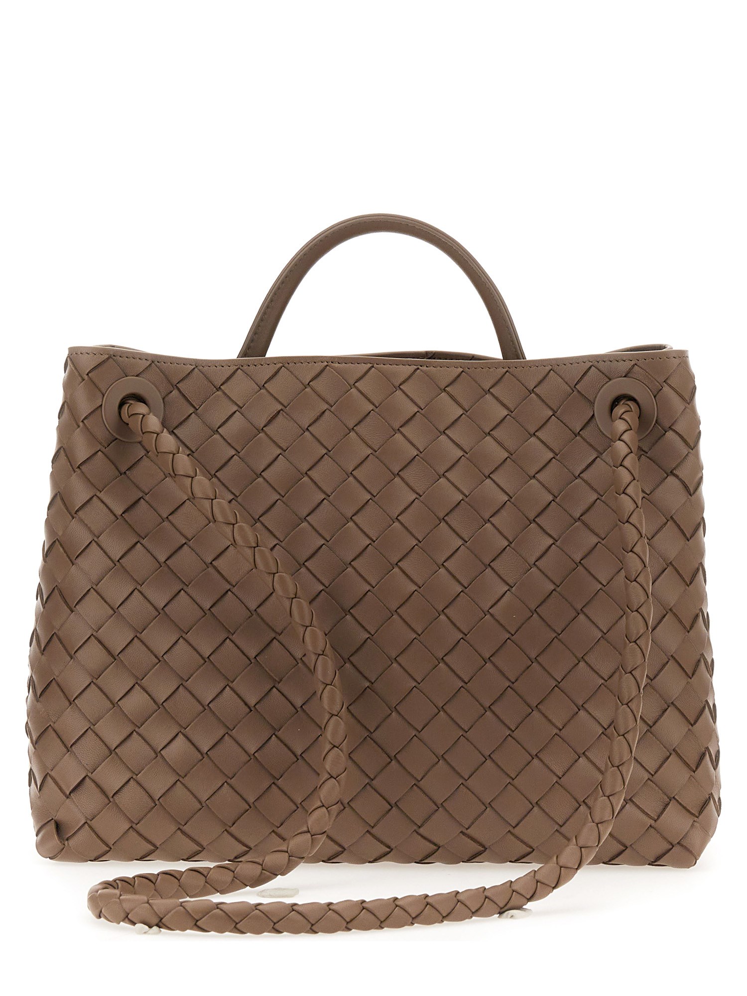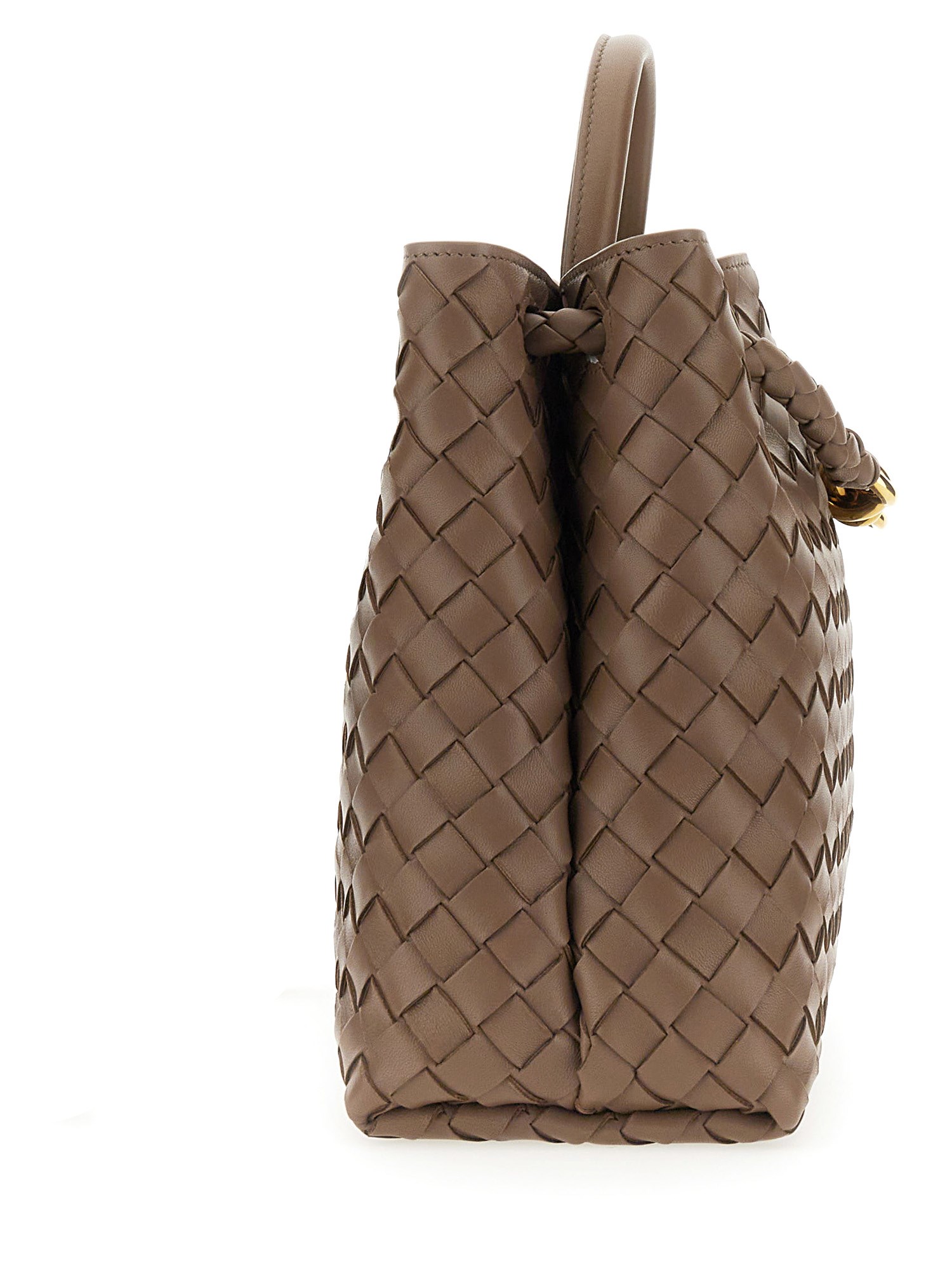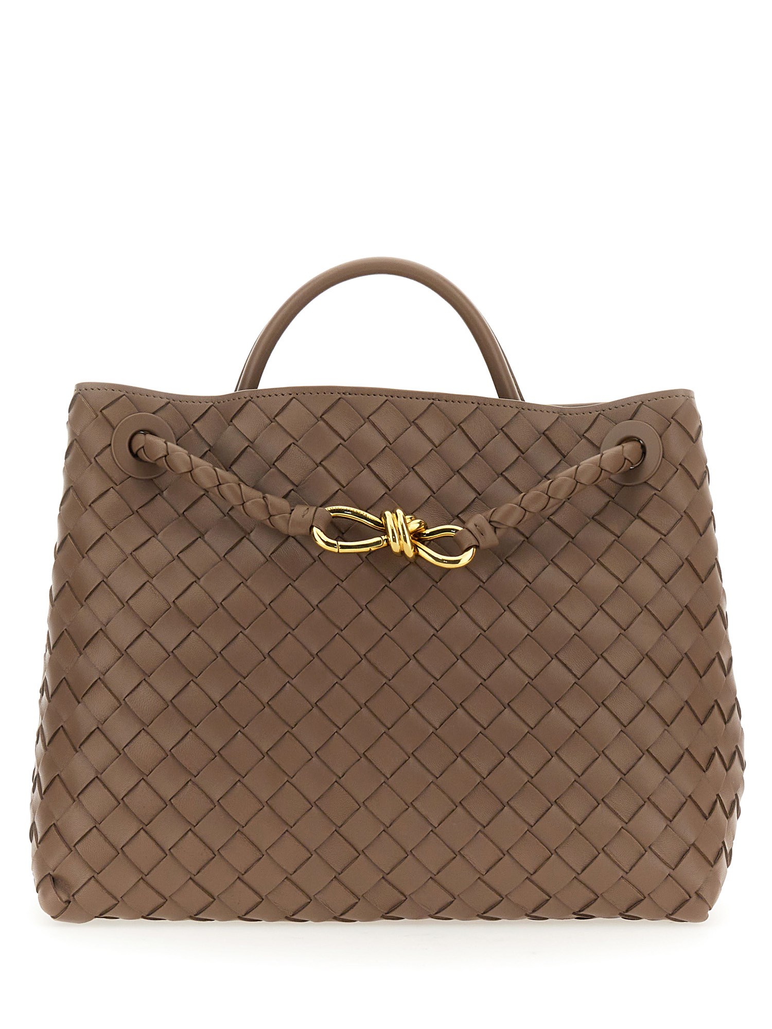Sperimentate il lusso con la borsa media "Andiamo" di Bottega Veneta. Realizzata meticolosamente in morbida nappa Intrecciato, presenta una tracolla scorrevole e il caratteristico dettaglio dei nodi. L'interno a scomparti, con tasche aperte e con cerniera, assicura praticità. La chiusura magnetica aggiunge praticità. Realizzata in 100% pelle d'agnello con fodera Intrecciato in pelle d'agnello, in un elegante grigio tortora con finiture in ottone. Elevate il vostro stile con questo capolavoro di design.