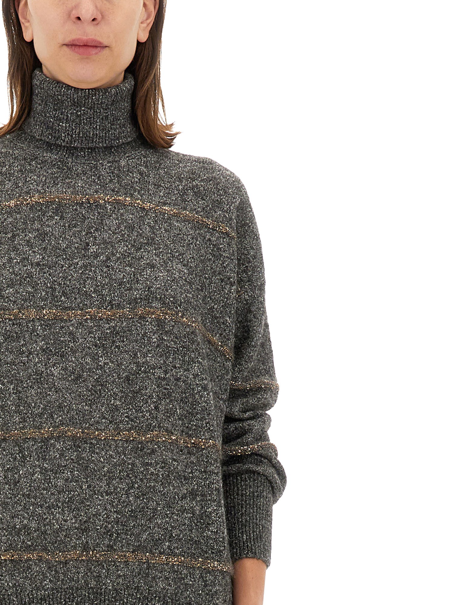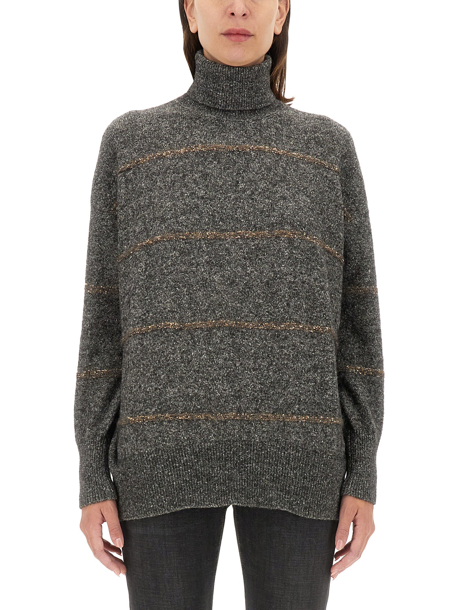 La camicia a collo alto di Brunello Cucinelli è un esempio di lusso e raffinatezza, realizzata con materiali pregiati per garantire comfort e stile. Il suo design elegante presenta una classica silhouette a collo alto, che la rende un'aggiunta versatile a qualsiasi guardaroba. Ideale da indossare a strati o da sola, questa camicia combina un'estetica senza tempo con una sartoria moderna, perfetta sia per le occasioni casual che per quelle formali.