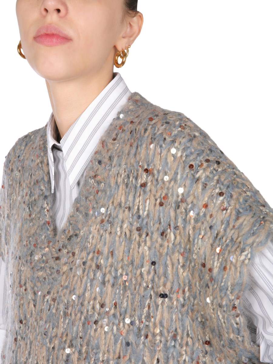 - SCOLLO A V - SCOLLO E FONDO A COSTE- 42% MOHAIR, 40% COTONE, 8% ACRILICO, 6% POLIAMMIDE, 4% LANA- MADE IN ITALY- LA MODELLA È ALTA 180 CM E INDOSSA LA TAGLIA S