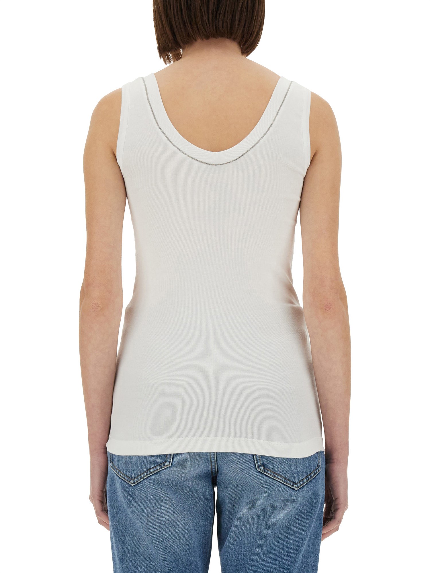 Aggiungete un tocco di lusso al vostro armadio con un top in cotone di Brunello Cucinelli. La classica scollatura a pallina e l'orlo dritto conferiscono a questo top un fascino senza tempo. Realizzato in cotone pregiato, offre comfort e stile. Il design facile da indossare lo rende una scelta comoda per le giornate più impegnative. Aggiornate il vostro guardaroba con questo capo essenziale.