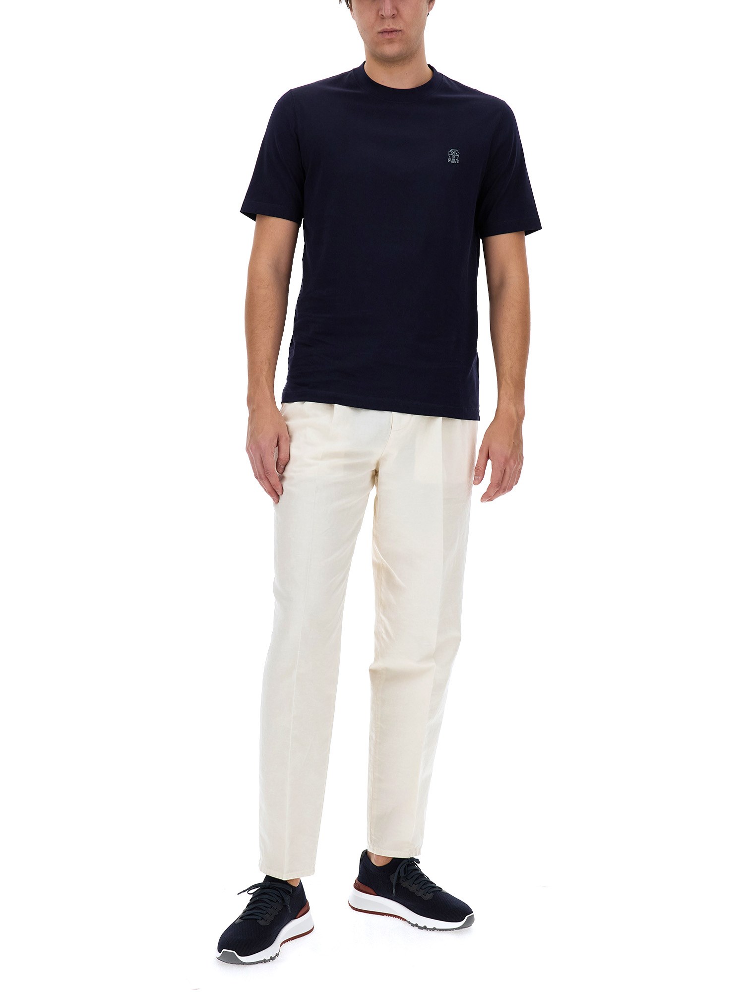 Questa T-shirt di Brunello Cucinelli offre un comfort e uno stile ineguagliabili. Realizzata in 100% cotone pregiato, garantisce una sensazione di morbidezza e traspirabilità sulla pelle. Classico design a girocollo che non passa mai di moda. Perfetta da indossare tutti i giorni o da mettere sotto il vostro abbigliamento esterno preferito.