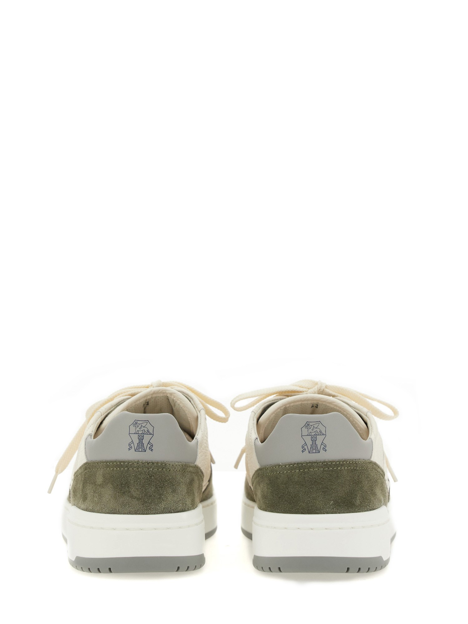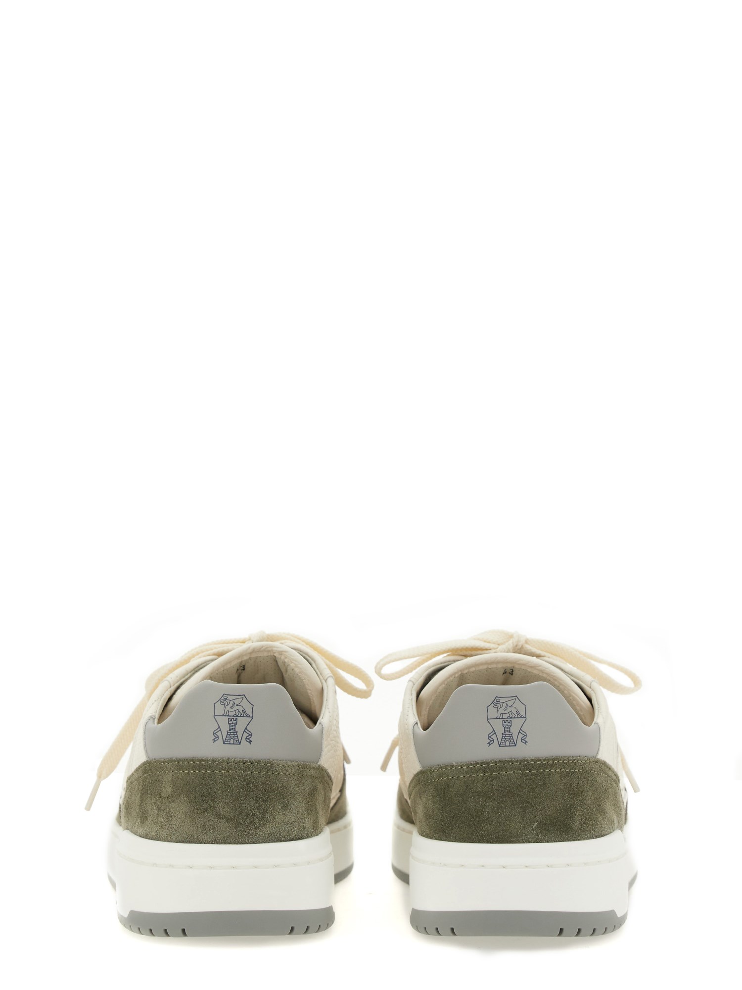 Migliorate il vostro gioco di scarpe da ginnastica con queste eleganti sneakers piatte con chiusura a lacci in pelle bianca di Brunello Cucinelli. Realizzate con materiali pregiati, queste sneakers offrono comfort e durata. Sia che vogliate vestirvi bene o male, queste scarpe versatili eleveranno il vostro look senza sforzo. Preparatevi a far girare la testa ovunque andiate!
