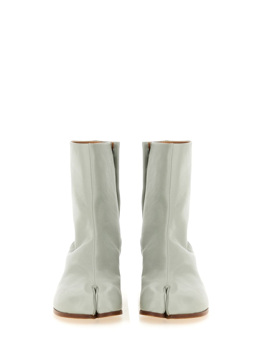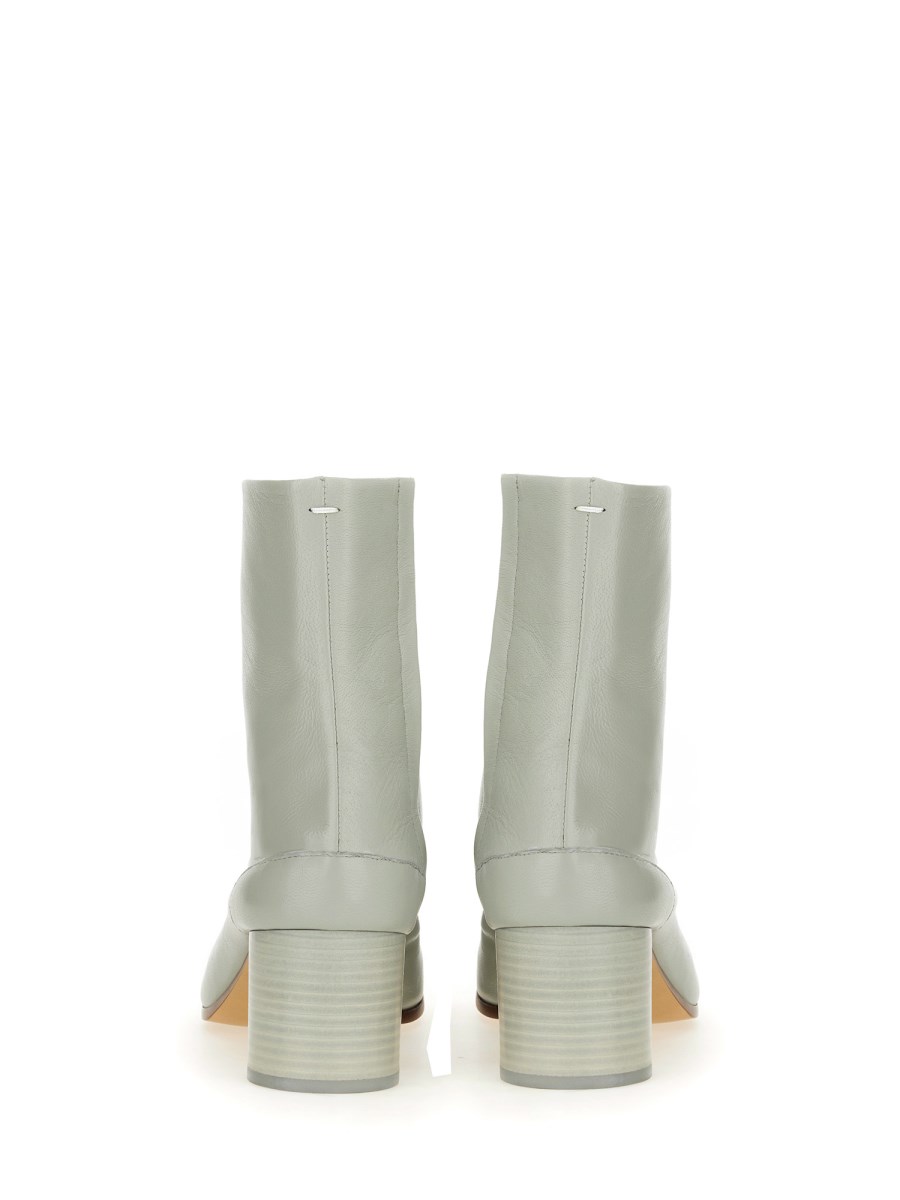 Questi stivaletti in pelle Maison Margiela sono un'aggiunta versatile e sofisticata a qualsiasi guardaroba. Realizzati in pelle di alta qualità, questi stivali presentano un design elegante con punta a punta e un comodo tacco a blocco, che li rende perfetti sia per le occasioni casual che per quelle formali. Il dettaglio del punto Maison Margiela sul tallone aggiunge un tocco di unicità a questi stivali senza tempo.