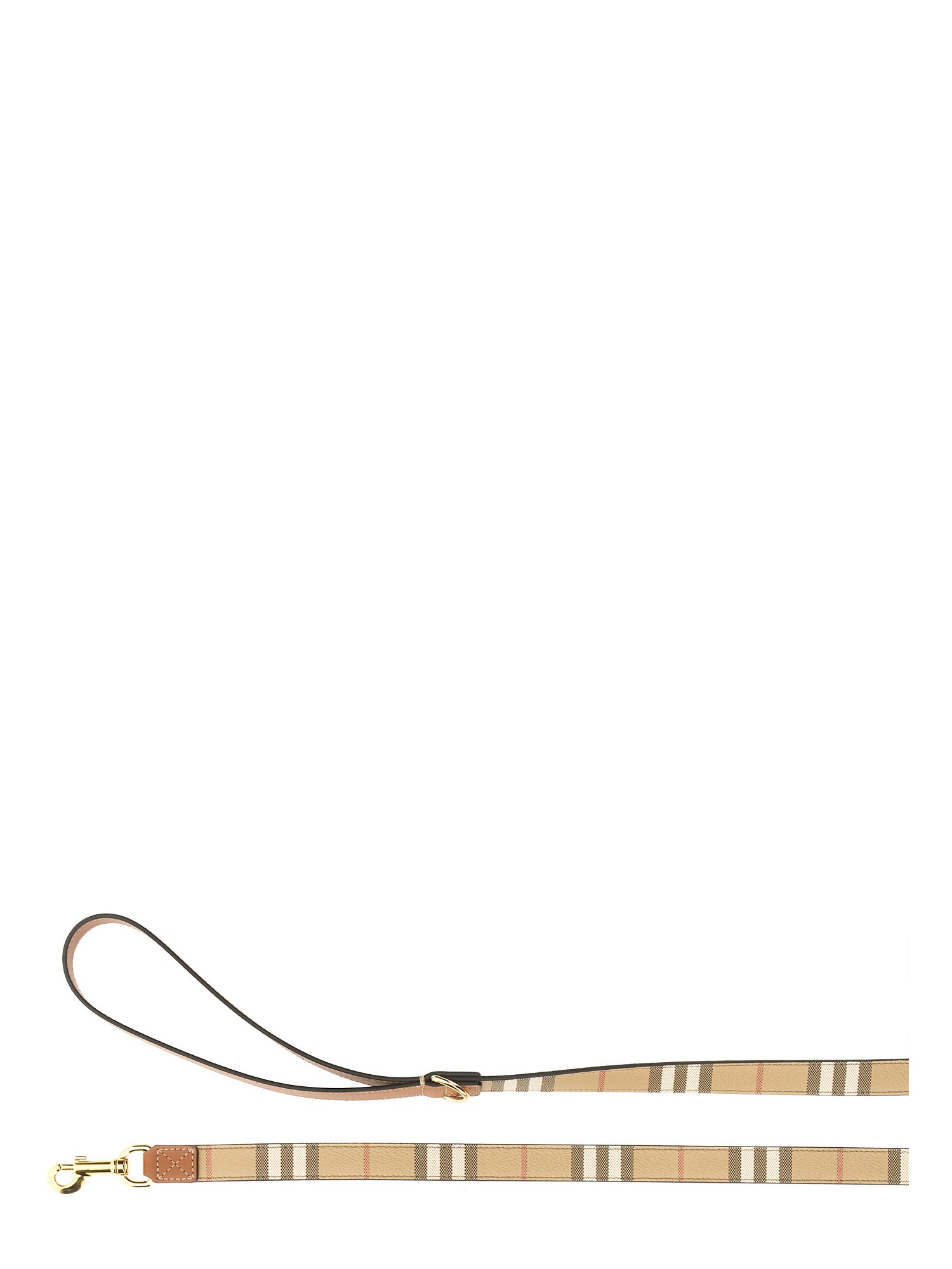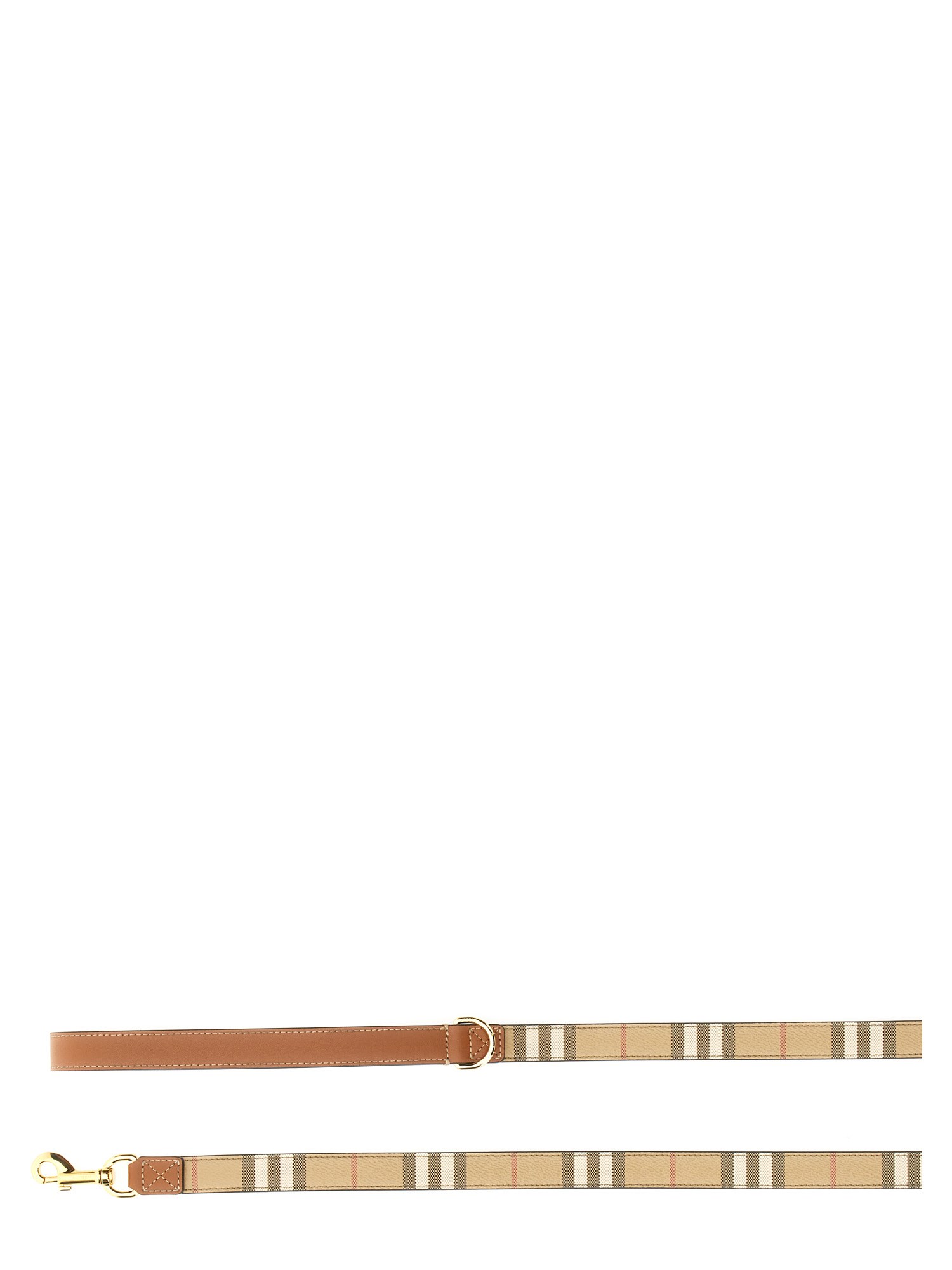 Il guinzaglio per cani Burberry check è realizzato in 100% pelle e presenta un design Burberry check. Il guinzaglio è dotato di una maniglia in pelle con un anello a D in metallo e un gancio in metallo ed è ornato da un'iconica stampa a quadri per un maggiore stile. Presenta inoltre bordi dipinti a mano per un look autentico.