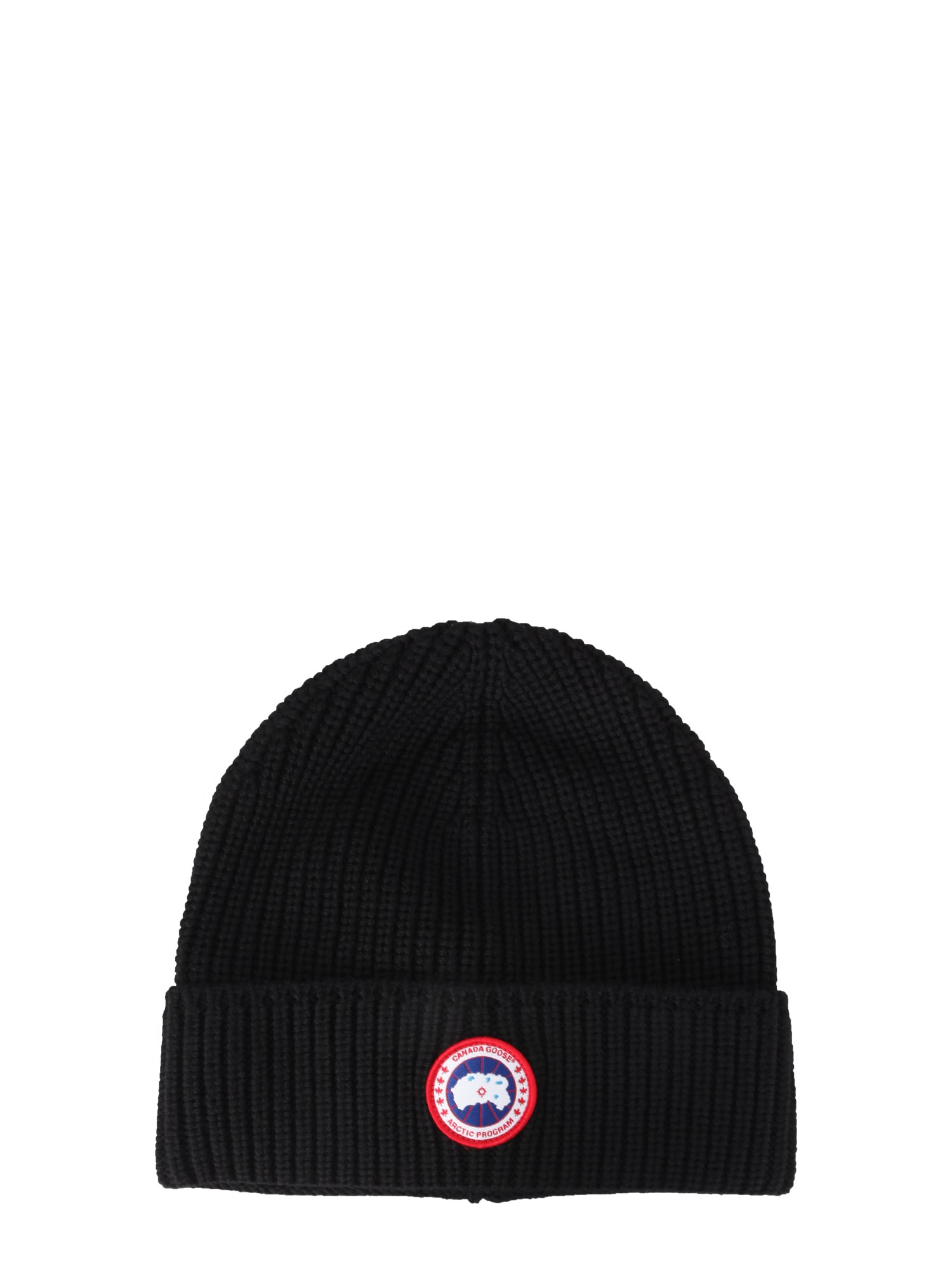 CAPPELLO IN MAGLIA DI LANA A COSTINE CON PATCH LOGO