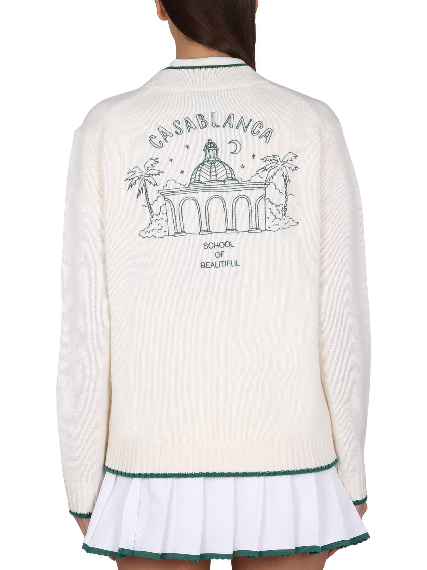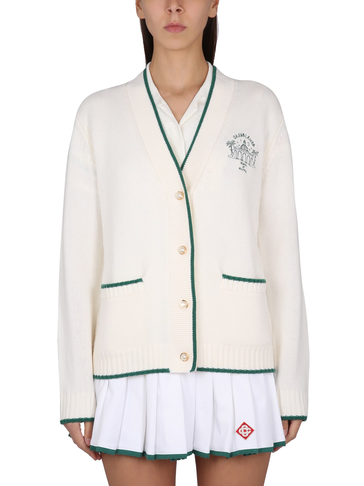 Questo cardigan di Casablanca è un capo lussuoso, morbido e pratico. Il tessuto è 100% lana merino e presenta uno scollo a V con chiusura a bottoni. Presenta inoltre polsini e orlo a coste. È un capo perfetto da indossare nelle fredde giornate invernali ed è anche molto morbido. Questo lussuoso maglione è l'accessorio invernale perfetto.