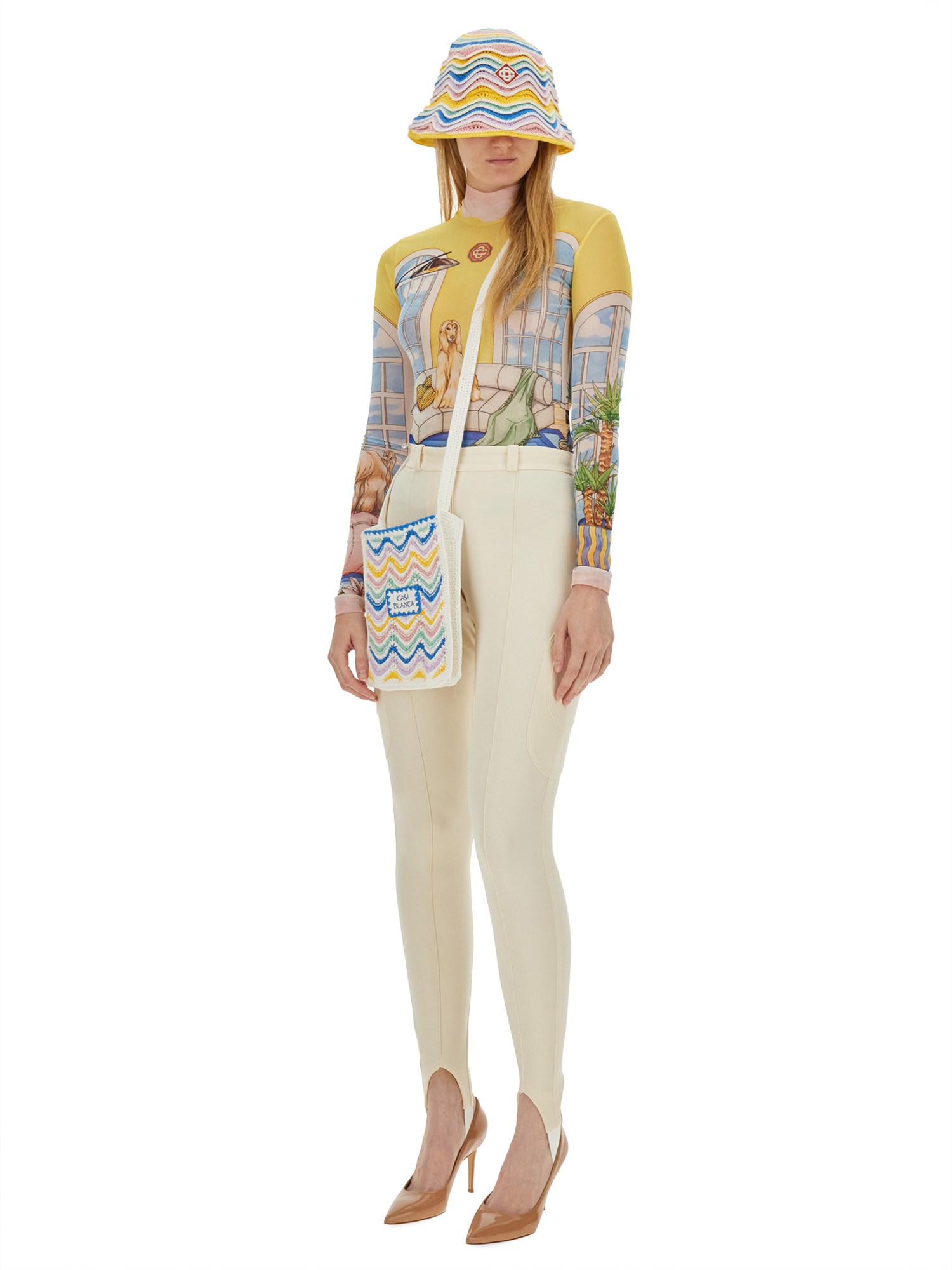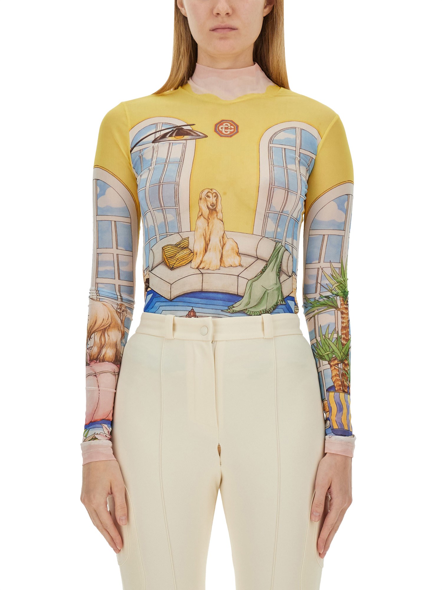 Il top stampato Casablanca è un esempio di armoniosa fusione tra design contemporaneo ed estetica vivace, che lo rende un'aggiunta versatile a qualsiasi guardaroba. Realizzato con materiali di alta qualità, questo top presenta una stampa accattivante che riflette l'impegno del marchio verso l'espressione artistica e l'ispirazione culturale. La sua vestibilità sartoriale garantisce il comfort mantenendo una silhouette elegante, adatta sia alle uscite casual che alle occasioni più formali. Gli elementi di design unici e l'attenzione ai dettagli fanno di questo capo una scelta di spicco per chi vuole elevare il proprio stile.