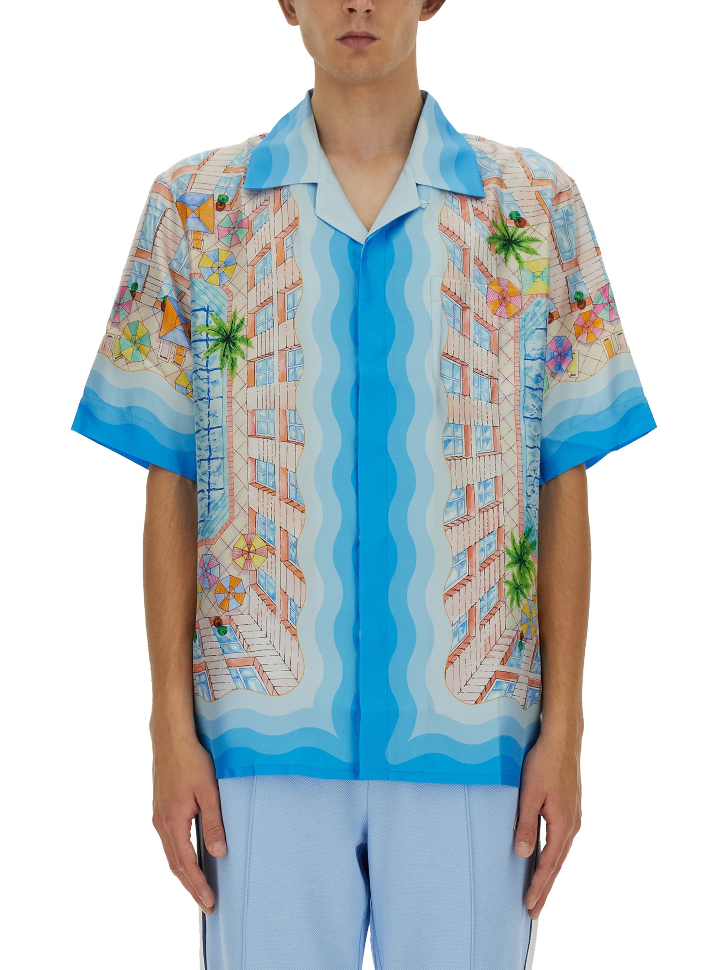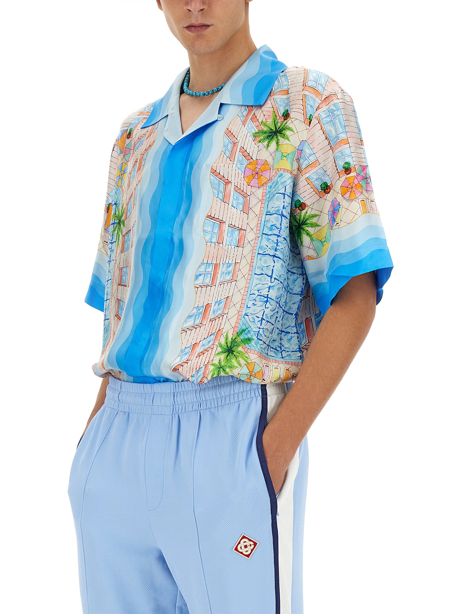 Abbracciate il lusso rilassato con la camicia in seta di Casablanca. Progettata con un colletto cubano e maniche corte, questa camicia è comoda ed elegante. La stampa allover aggiunge un tocco di colore, mentre l'orlo dritto e la chiusura frontale con bottoni la rendono raffinata. Perfetta per i brunch, le giornate in spiaggia o ovunque la vita vi porti.