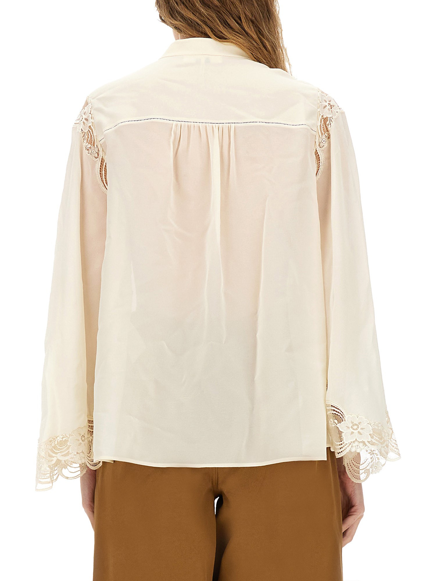 BLUSA FLUIDA IN GEORGETTE DI SETA E PIZZO
