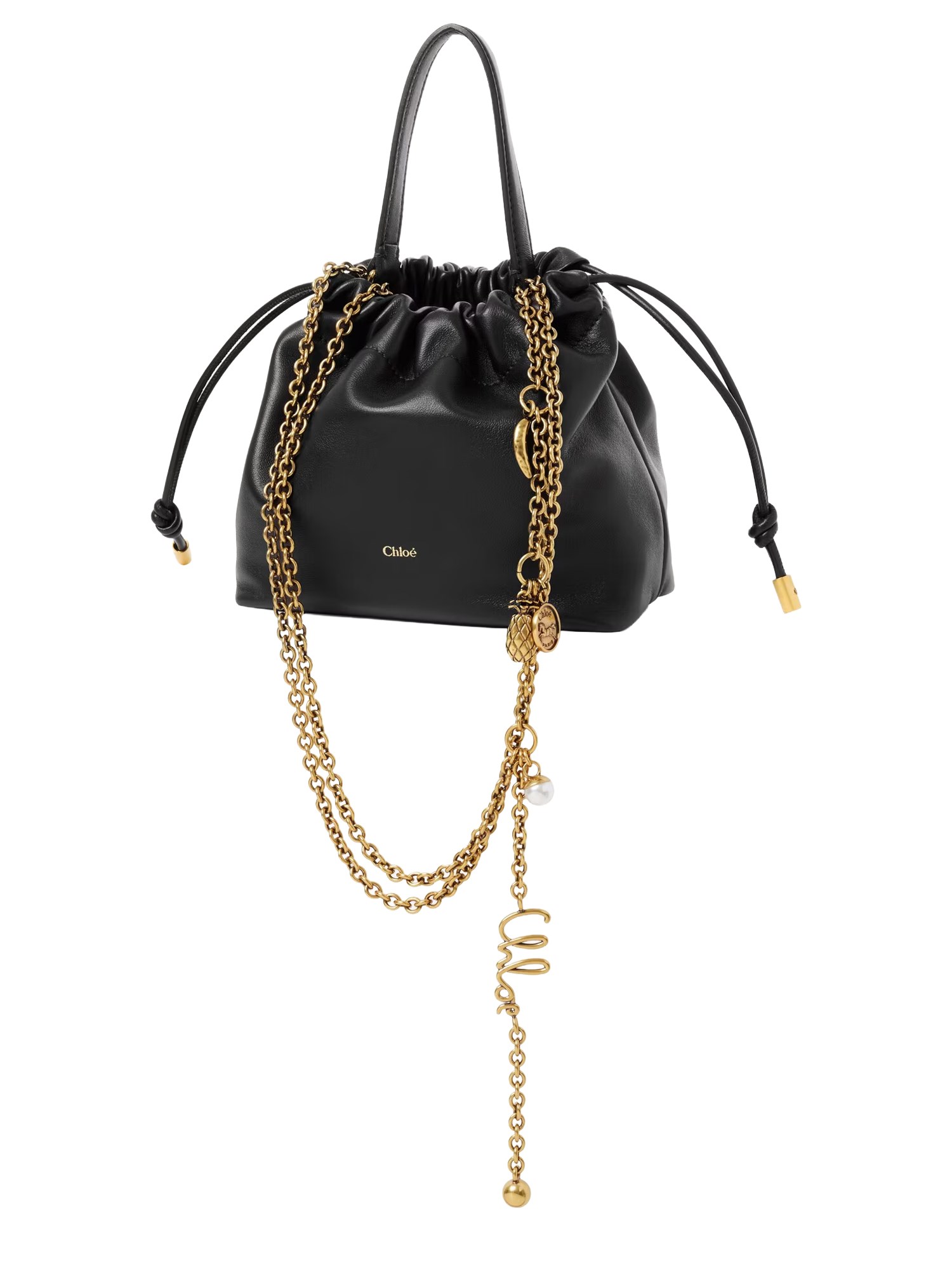 BORSA "ICONS" IN PELLE CON CIONDOLI E CATENA
