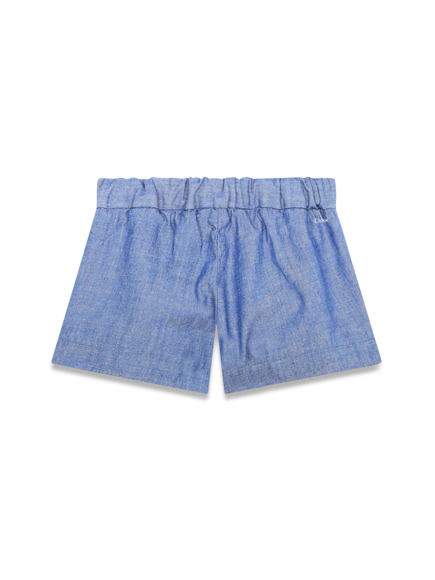 Questi pantaloncini blu in cotone di Chloe' sono caratterizzati da un elastico in vita che garantisce una vestibilità comoda e regolabile. Realizzati in tessuto di cotone di alta qualità, questi pantaloncini sono morbidi, traspiranti e perfetti per essere indossati tutti i giorni. L'elastico in vita assicura una facile vestibilità, consentendo al contempo flessibilità e libertà di movimento.