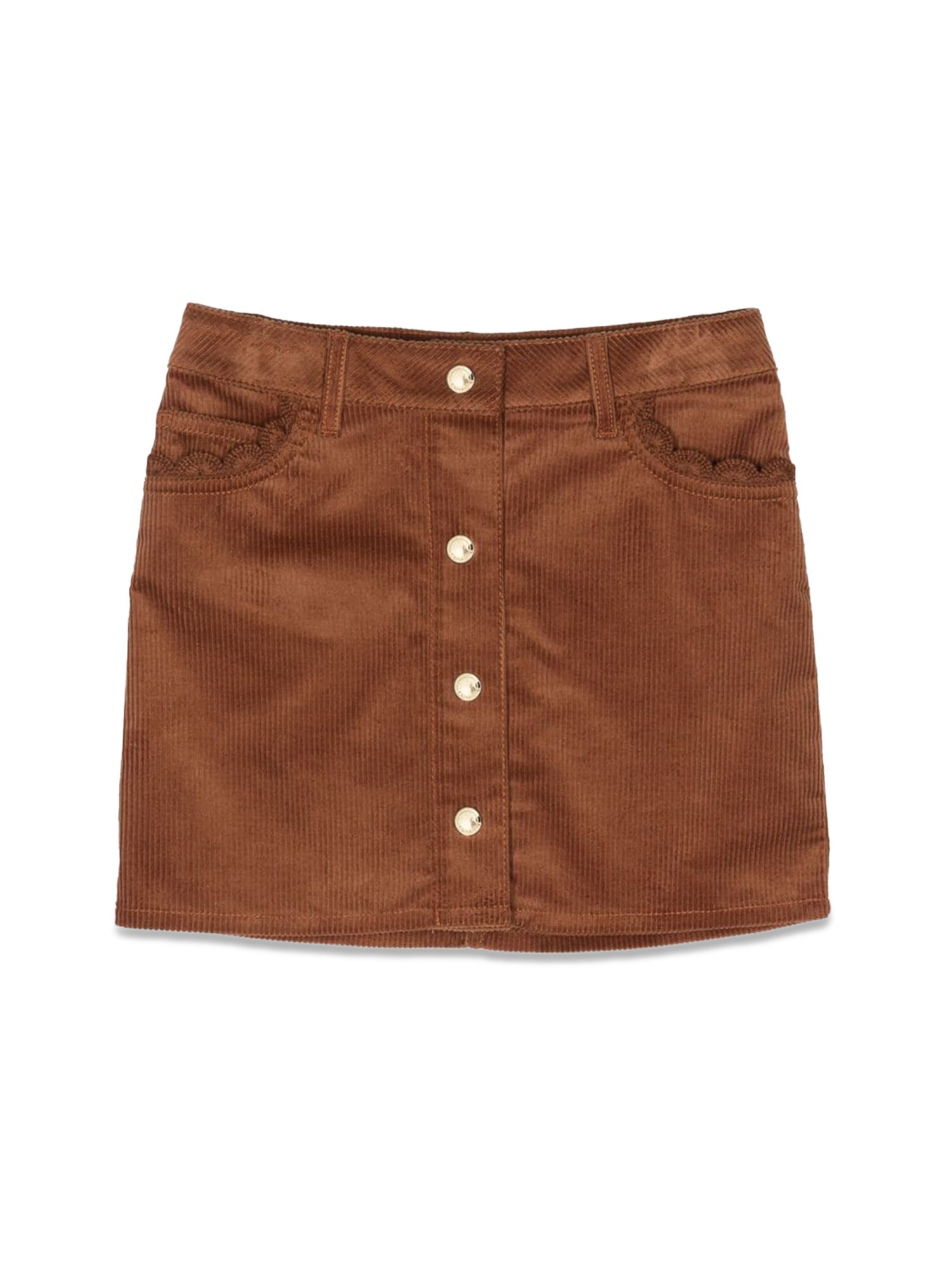 Questa è una nuovissima minigonna in velluto di Chloe' con chiusura frontale a bottoni. È realizzata in un leggero misto cotone, molto confortevole e facile da indossare. La fascia in vita è foderata con un materiale morbido e setoso che vi terrà a vostro agio per tutto il giorno. Questa gonna è perfetta per l'ufficio o per il vostro prossimo appuntamento!