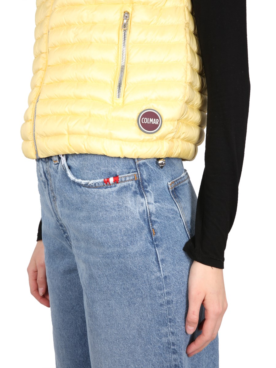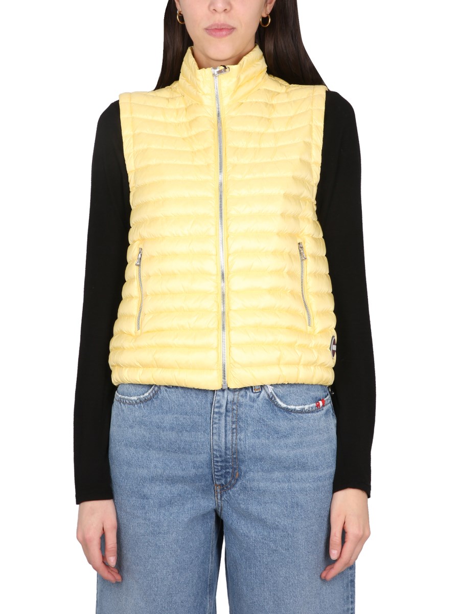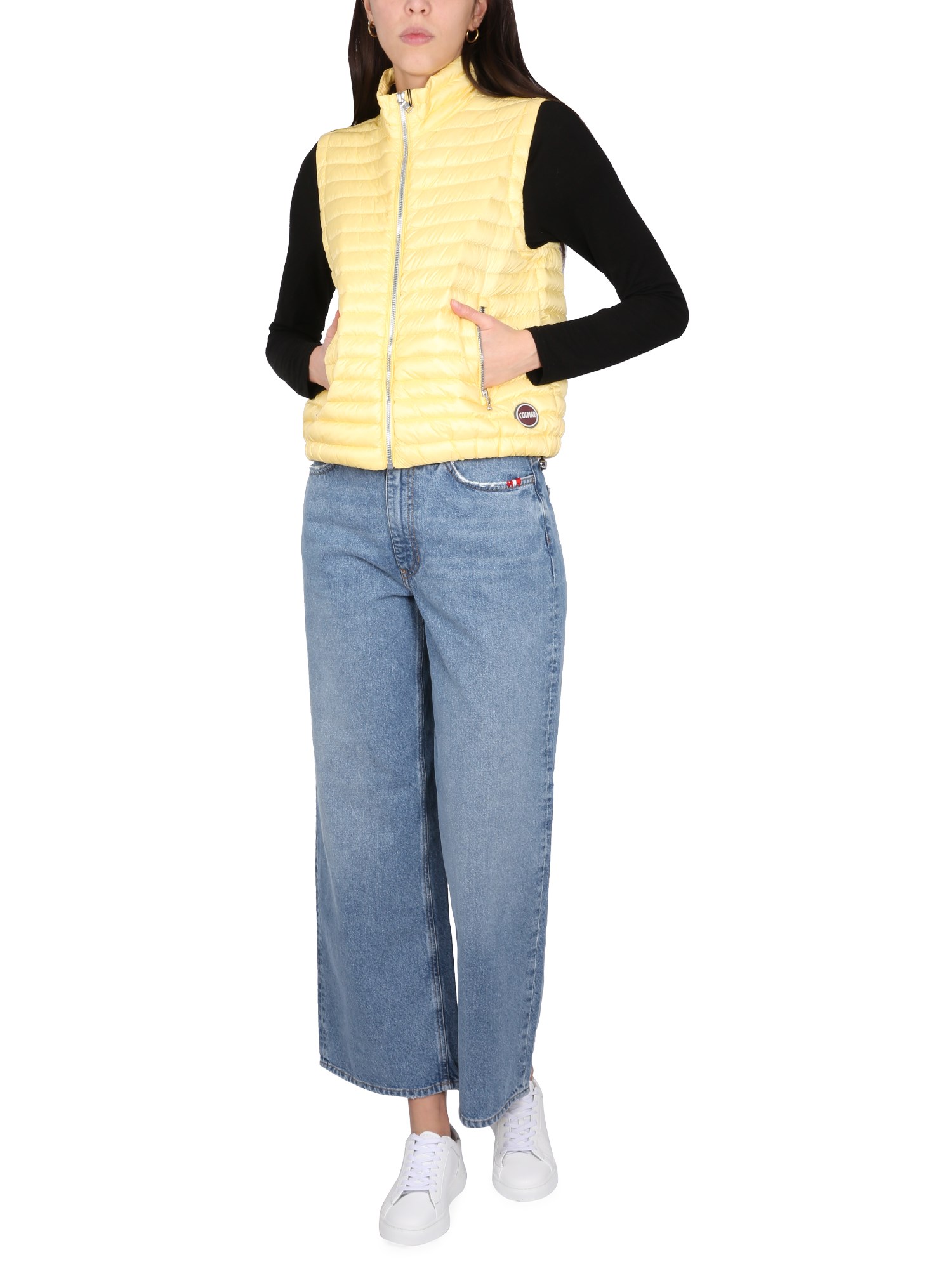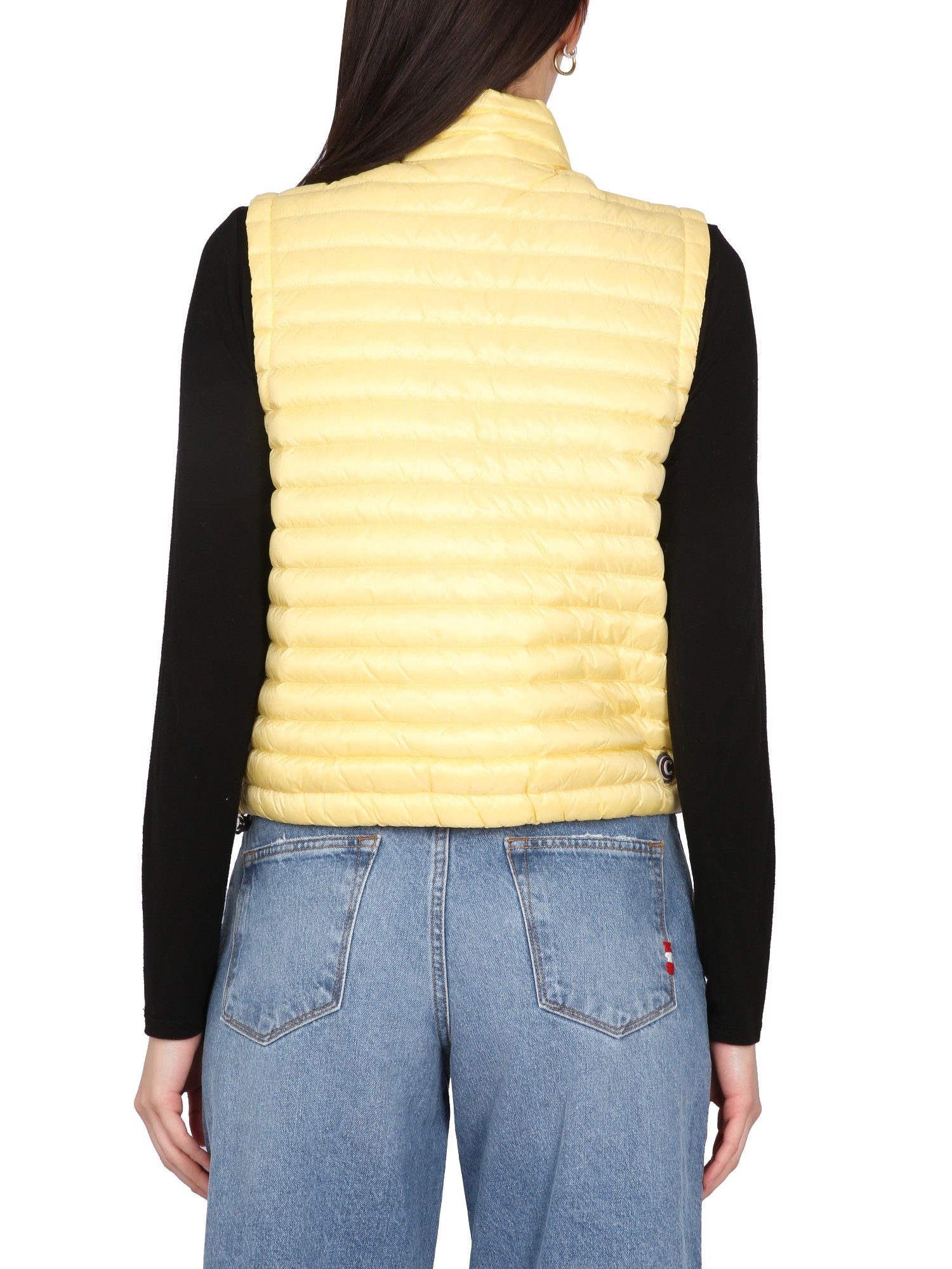 Gilet da donna in tessuto riciclato ultraleggero. Imbottito con leggera piuma naturale. Con una vestibilità ampia, questo modello presenta una trapuntatura regolare su tutto il corpo. La coulisse regolabile sul fondo permette di regolare la vestibilità e le pratiche tasche laterali lo rendono comodo e funzionale.