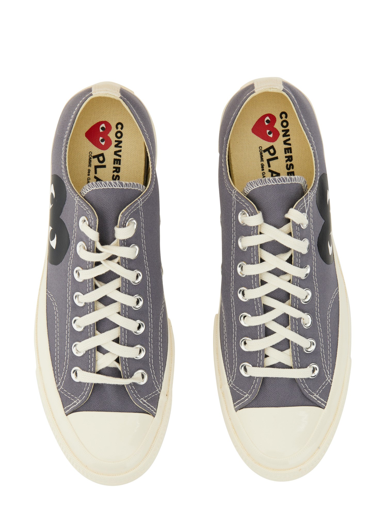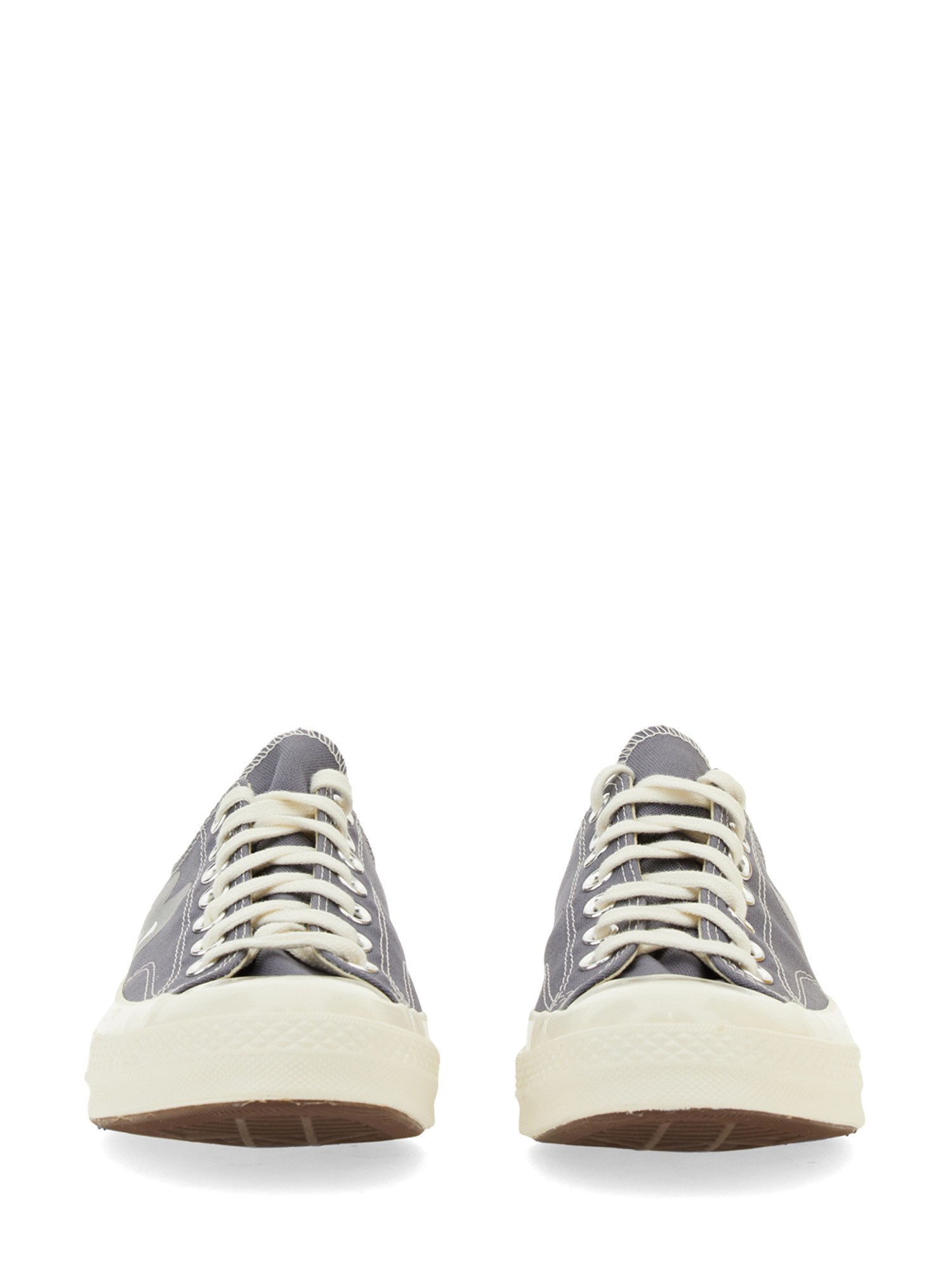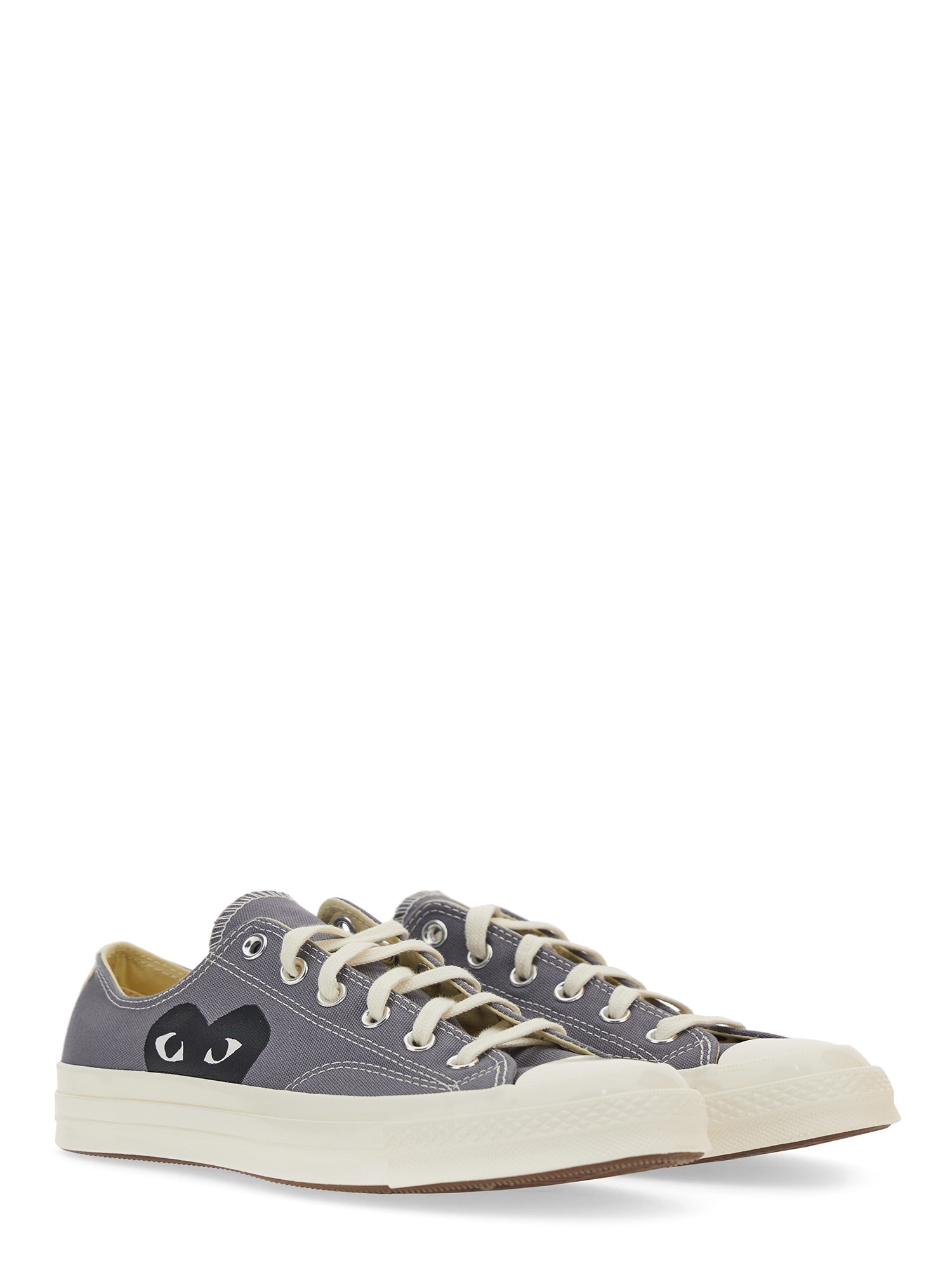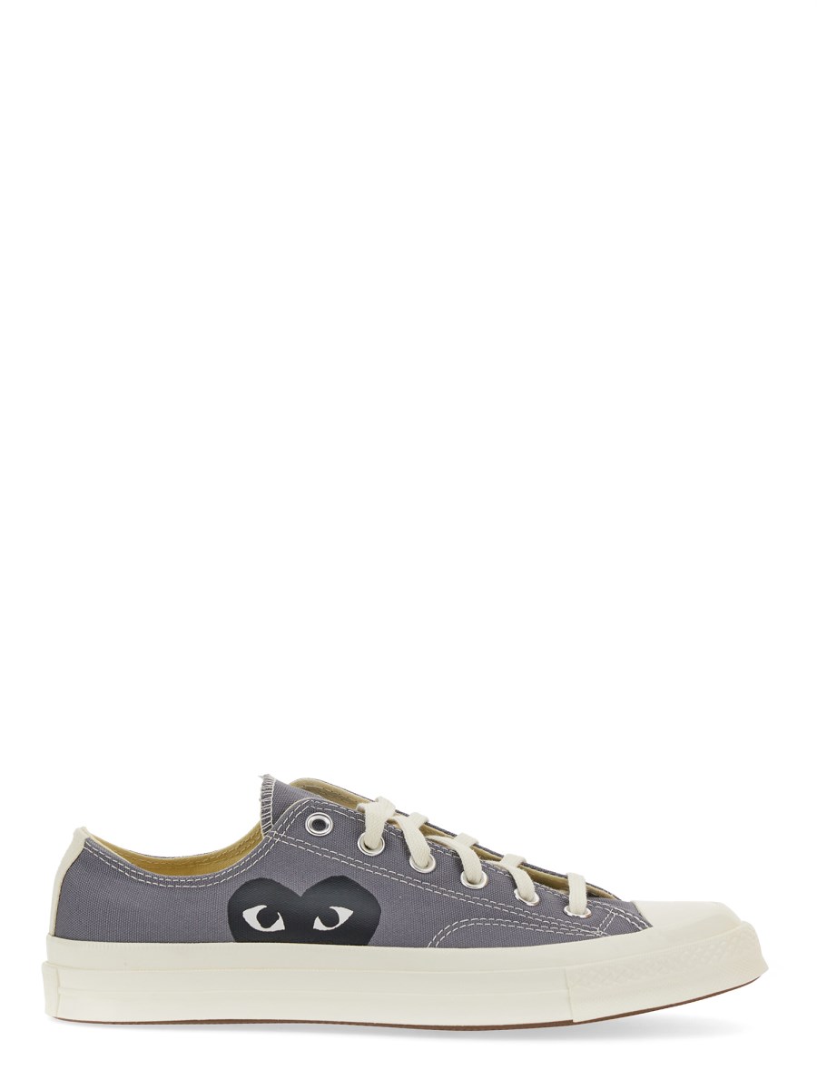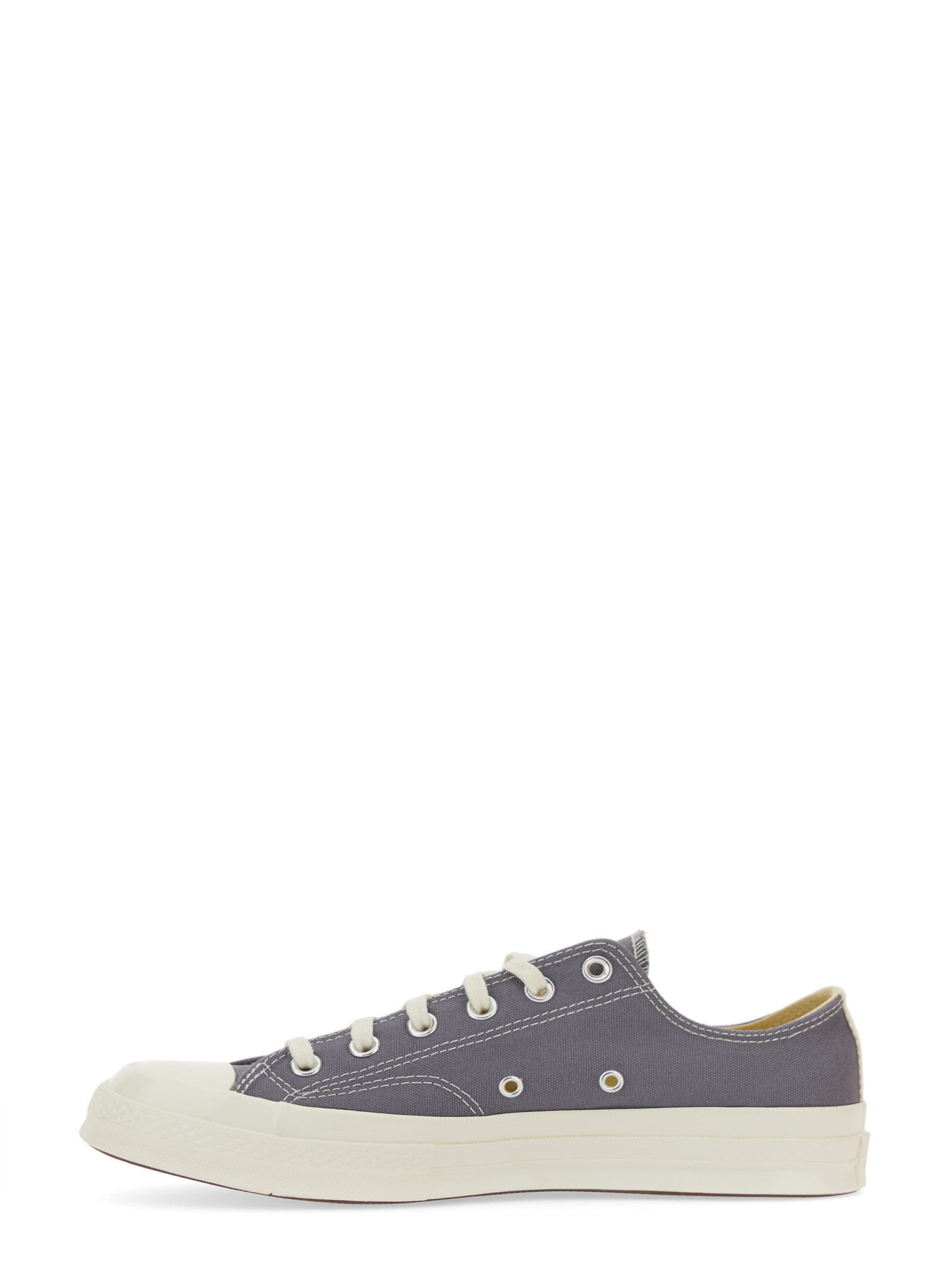Queste sneakers di Comme Des Garcons Play Converse sono progettate per aggiungere un tocco di stile e di comfort al vostro abbigliamento quotidiano. Realizzate in tela grigia di alta qualità, queste sneakers non sono solo resistenti ma anche eleganti. Caratterizzate da una stampa a cuore sulla chiusura, queste sneakers aggiungono un tocco giocoso e stravagante alla vostra collezione di calzature. La stampa a cuore aggiunge un tocco di colore e personalità a queste sneakers grigie altrimenti classiche.