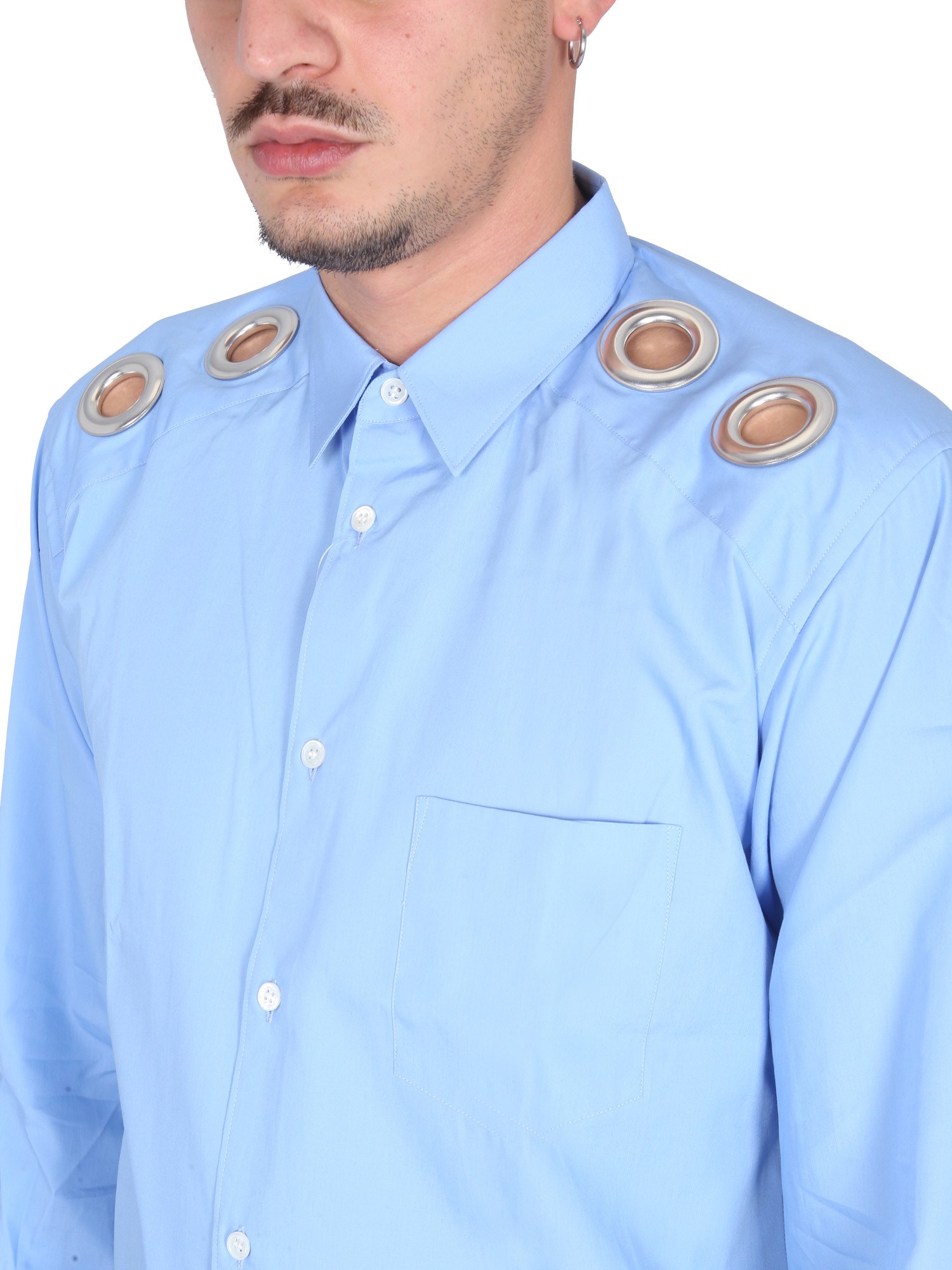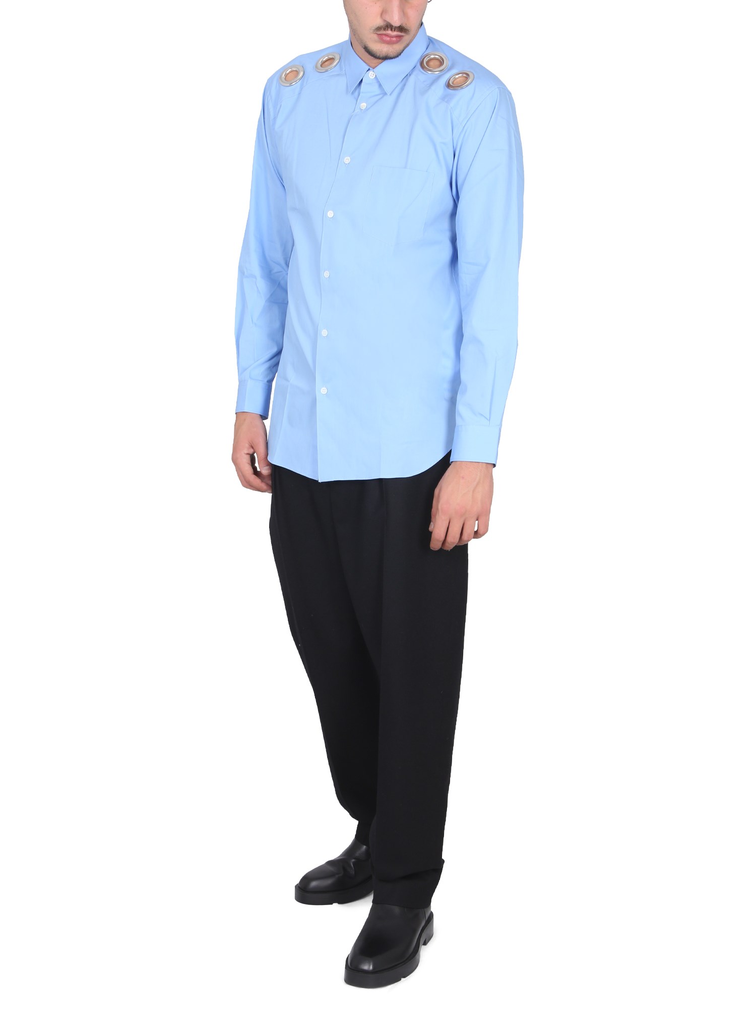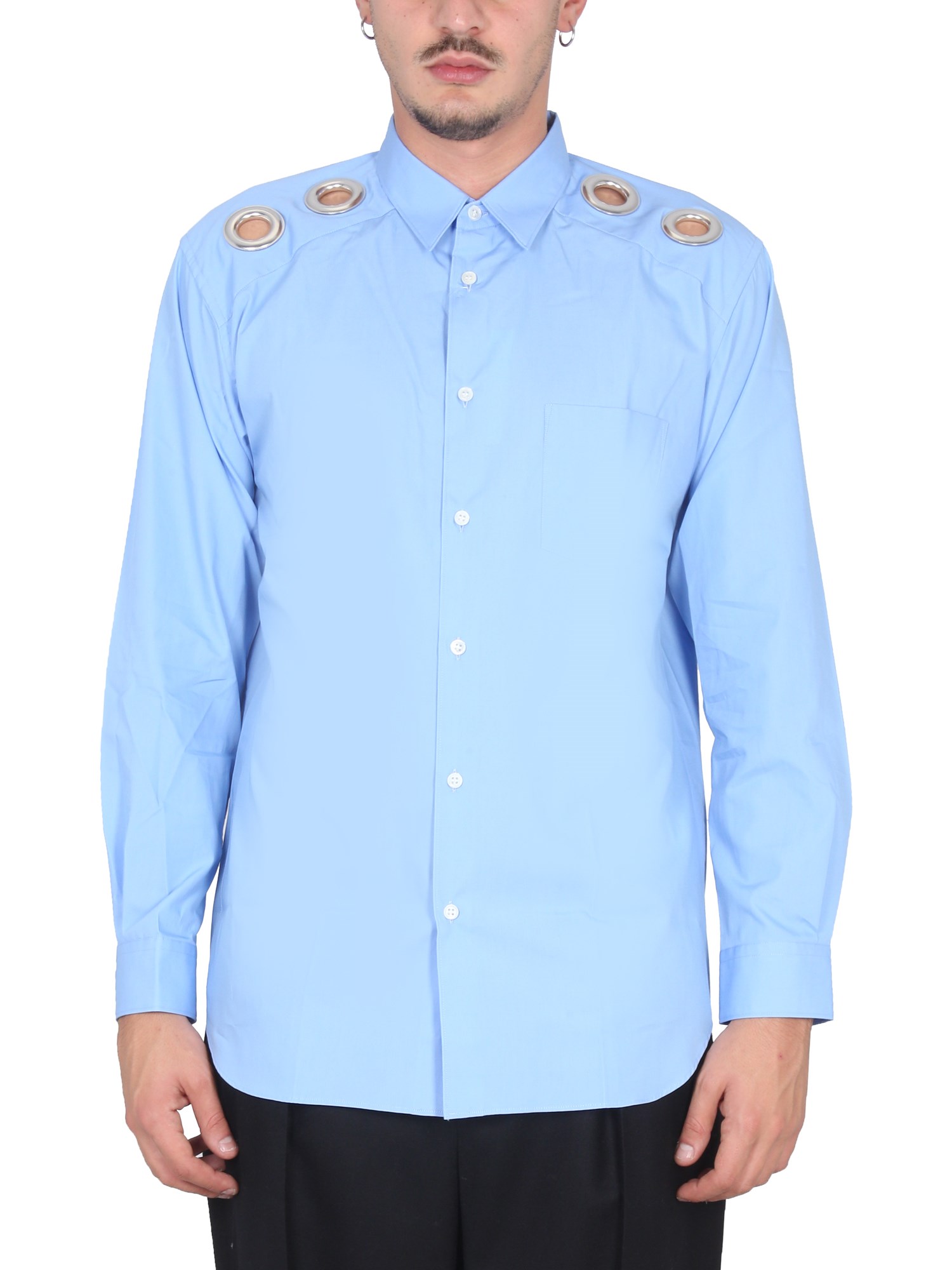 La T-shirt aderente di Comme Des Garcons Shirt presenta un colletto classico con chiusura frontale a bottoni, con una vestibilità più casual per un look informale. La camicia è realizzata in 100% cotone e presenta un colletto a coste per un maggiore comfort.