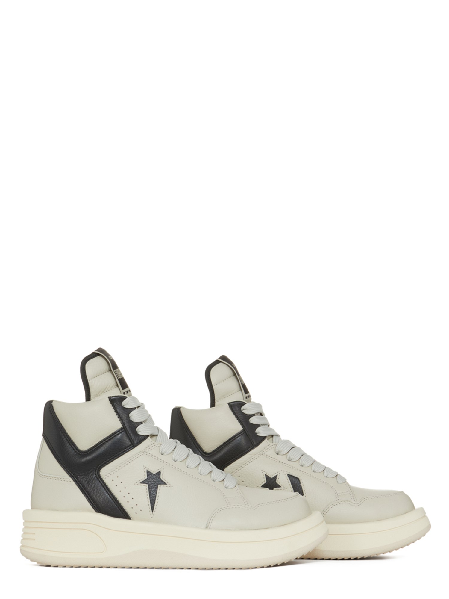 Questa scarpa high top allacciata con tomaia in pelle premium è basata sul classico modello Converse "weapon", originario della metà degli anni '80 e notoriamente indossato dal giocatore di basket Magic Johnson. È dotata di una linguetta allungata firmata DRKSHDW con etichetta tessuta personalizzata e avvolgente, recante il nome del modello.