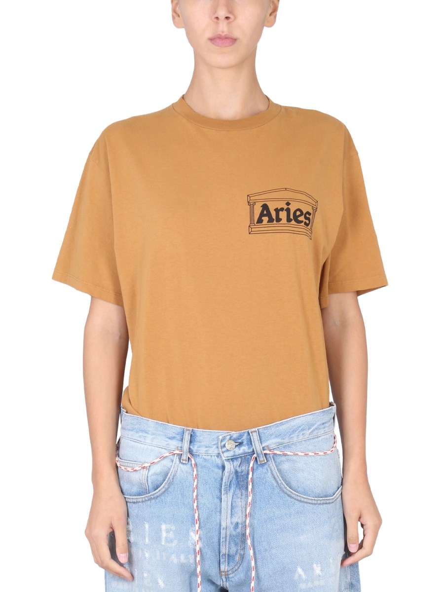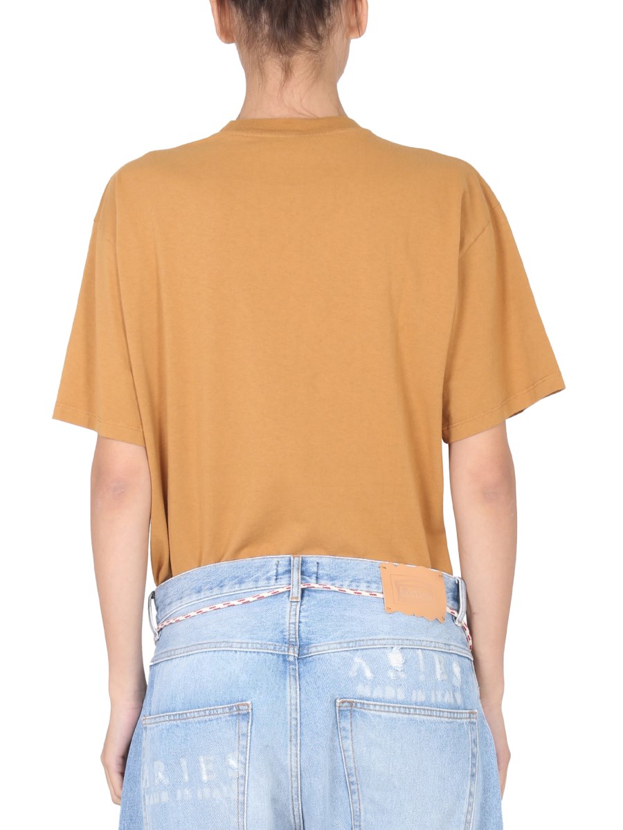 Questa T-shirt in cotone a girocollo di Aries ha un design classico e confortevole. Questa maglietta è perfetta per una giornata di relax casual e starà bene anche con il vostro abbigliamento preferito. Questa T-shirt in jersey di cotone è un capo essenziale dell'armadio.
